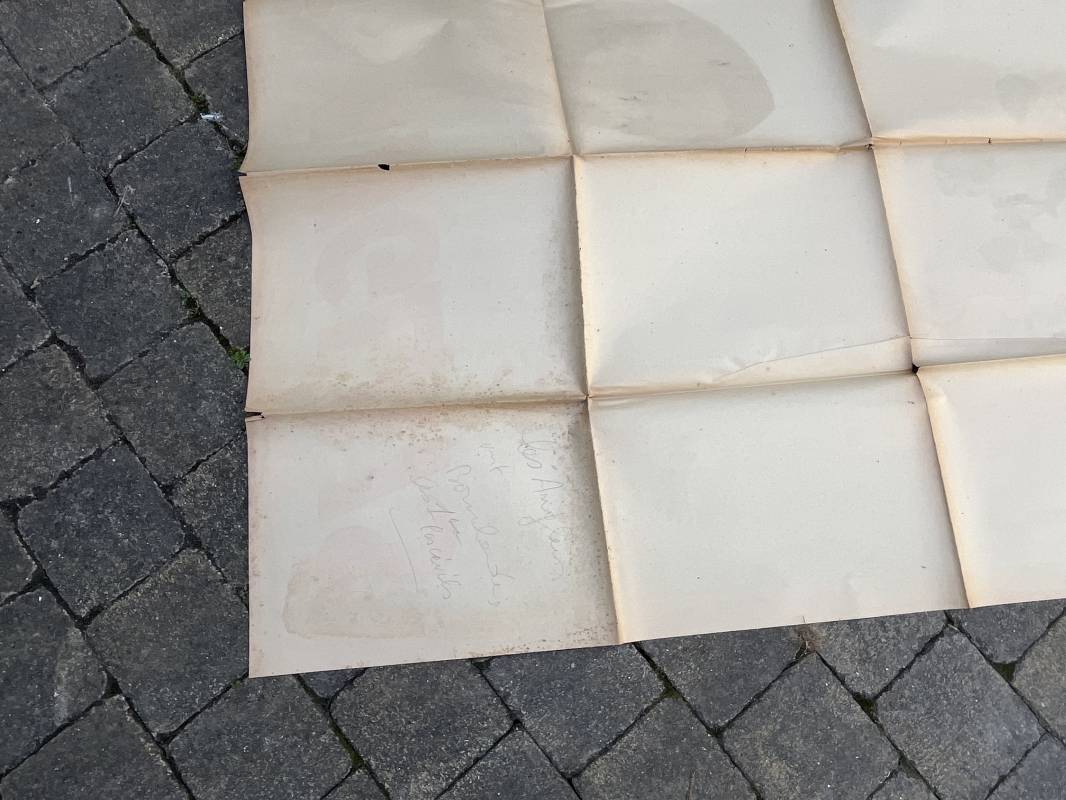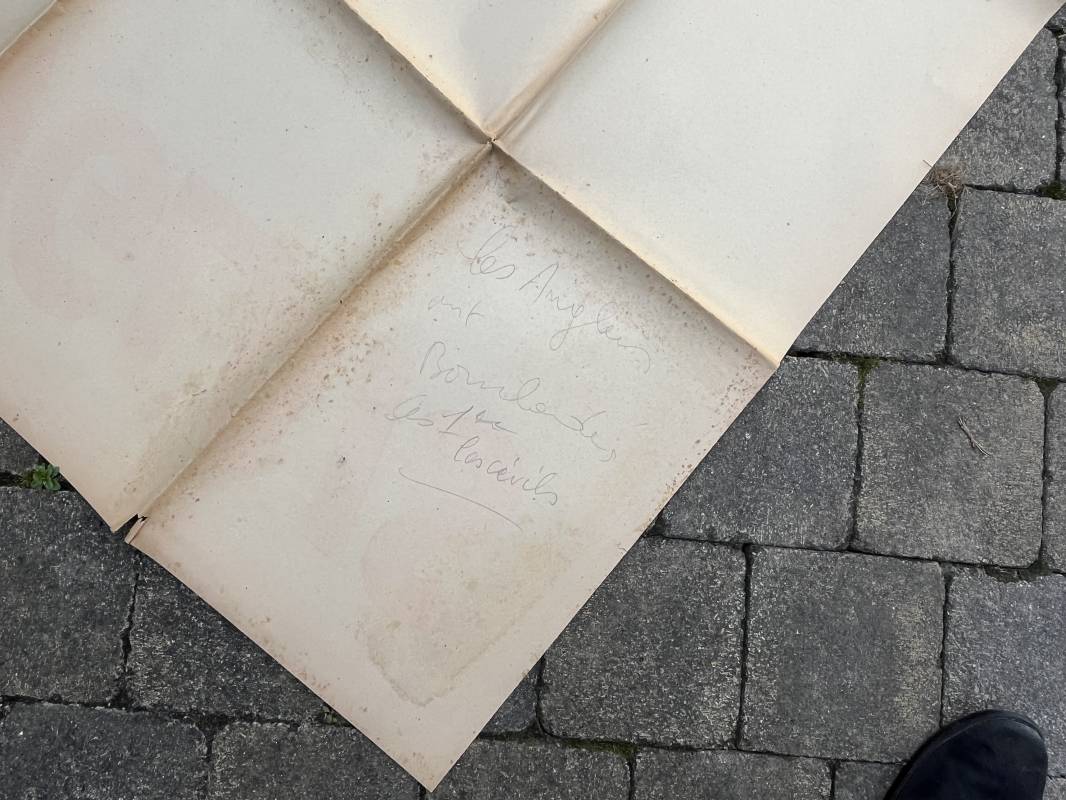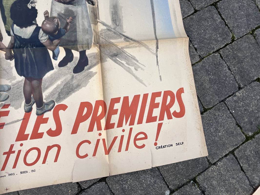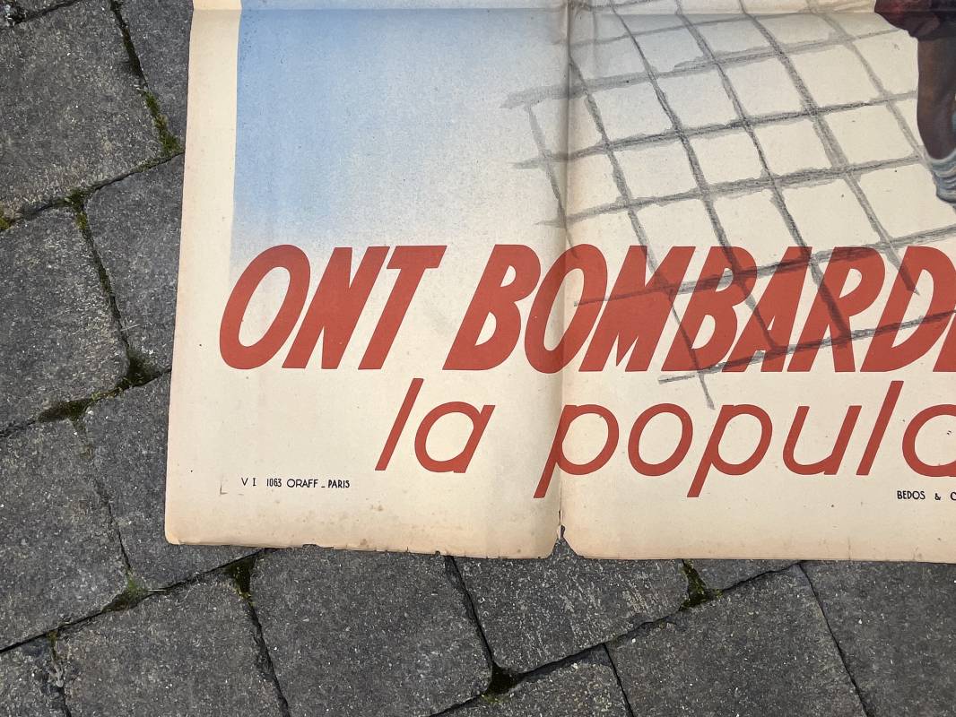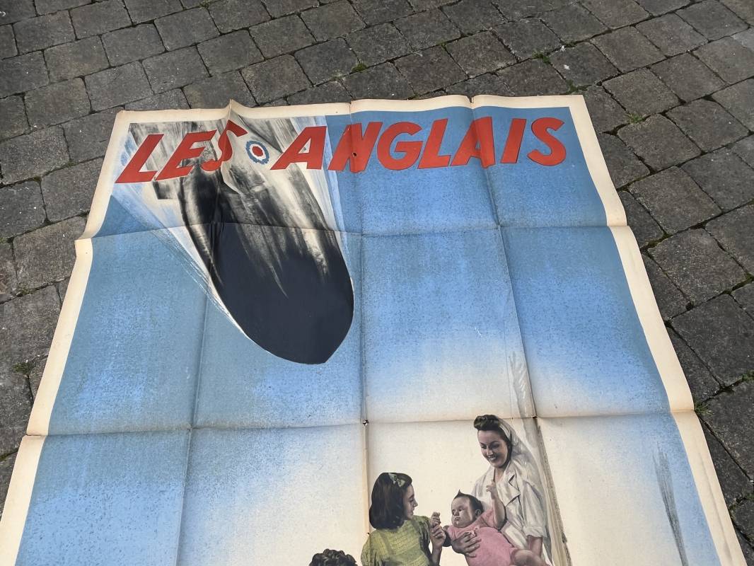 Rare affiche d epropagande Anglophobe ' Les anglais ont bombardé les premiers la population civile ' Affiche non entoilée , pliée , bel état Dimensions 153 X 118 cm . Oraff 1943 Affiche peu courante Ref 17869