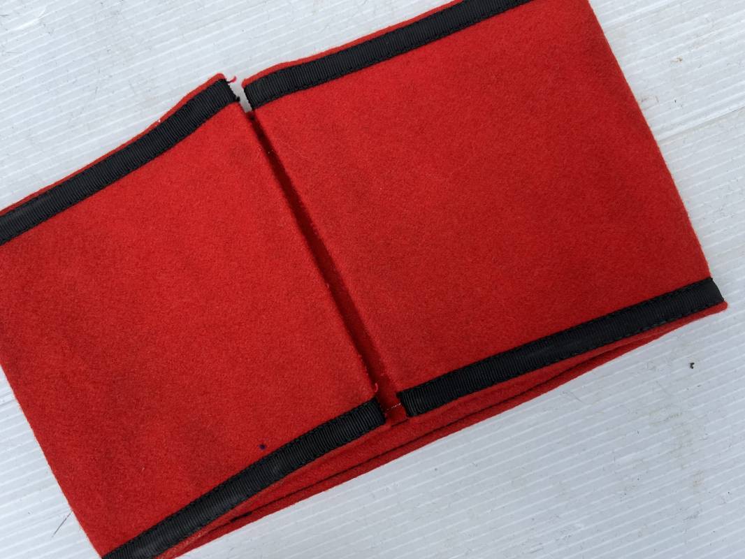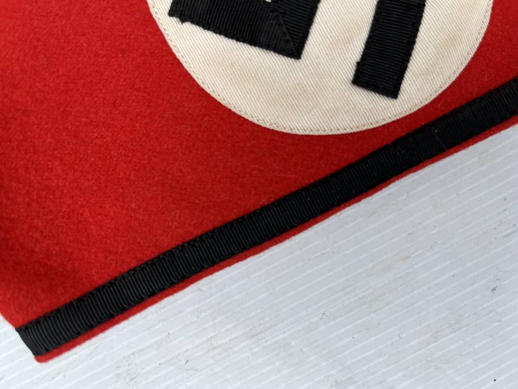 Rare brassard réglementaire de l'Allgemeine SS. Brassard en laine rouge. Pourtours en coton satiné noir. Croix en coton satinée noire cousue sur rond blanc en coton satiné. Brassard trés légèrement porté en superbe . Le brassard est 100% nature et intouché. Provenance succession familiale. Vétéran de la première armée Française. Nous garantissons l'authenticité absolue de ce brassard 1935/45. Vendu avec certificat d'authenticité. Piéce historique définitive en collection Ref 21153