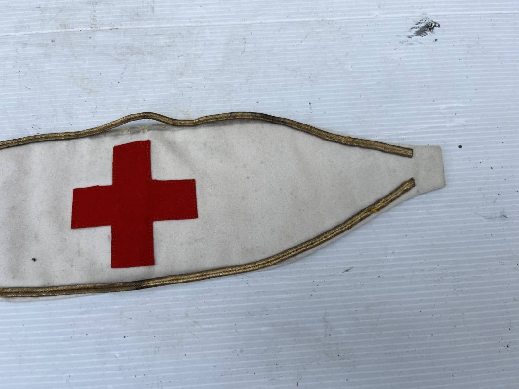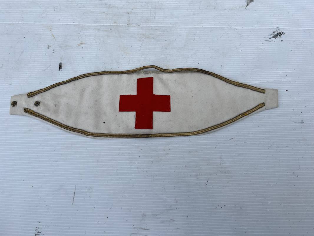 Rare brassard d'un officier du service de santé . Brassard de neutralité d'un officier médecin . Brassard en drap fin blanc , galon doré d'officier . Croix cousue en laine rouge . Intérieur doublé en coton blanc . fermeture par deux boutons pression . légerement porté en parfait état Ce modéle de brassard est egalement porté par les aumoniers militaires Ref 19997