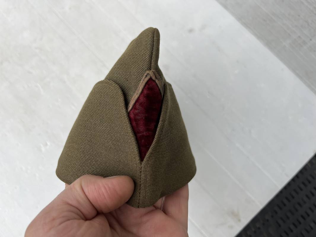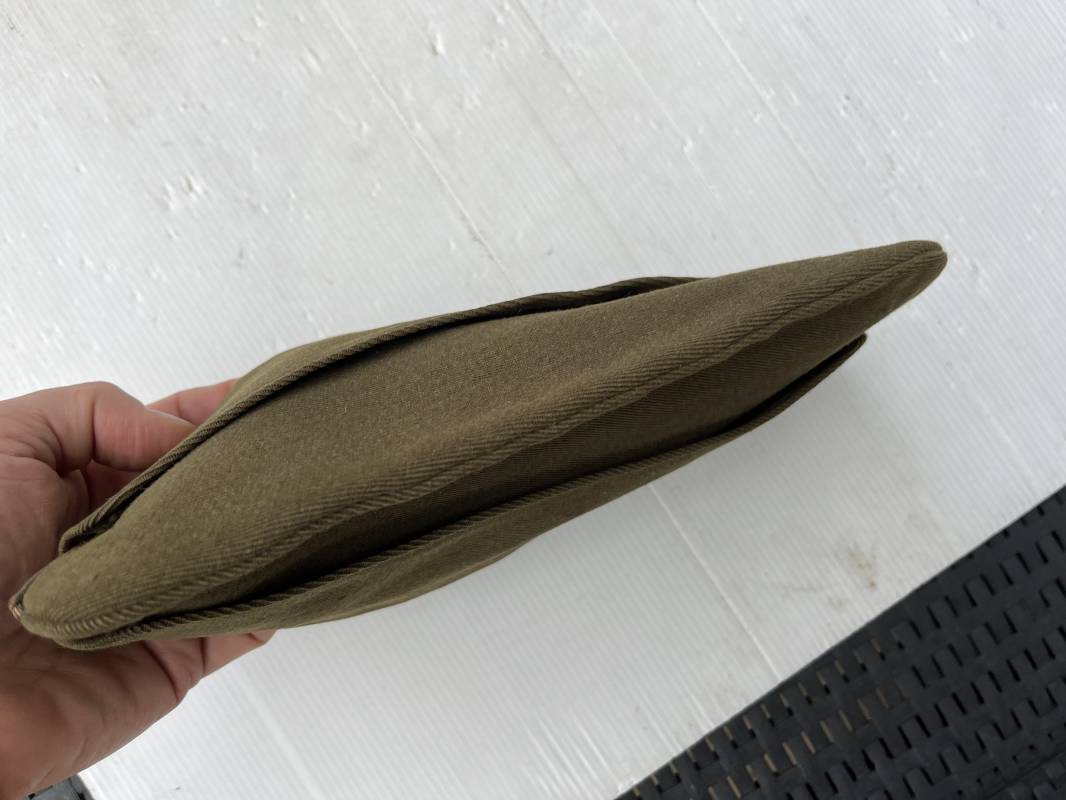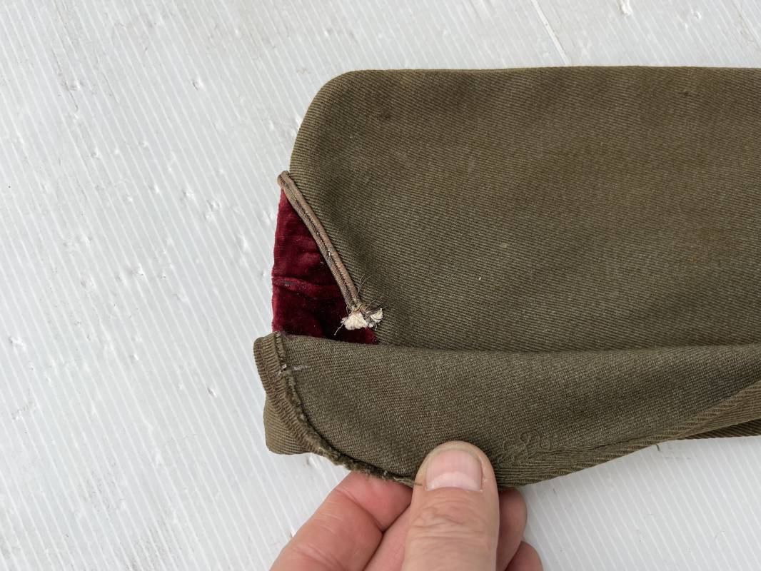 Beau calot modéle 1935 d un officier médecin . Calot en gabardine kaki , rabats , Galon de sous lieutenant sur le devant cousu sur fond de velours cramoisi du service de santé . Bandeau de cuir interieur doublute intérieure en coton kaki . Taille 58 Calot porté en bel état 1935/40 Ref 19604