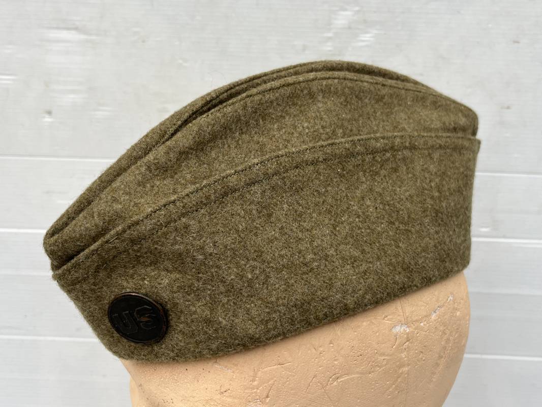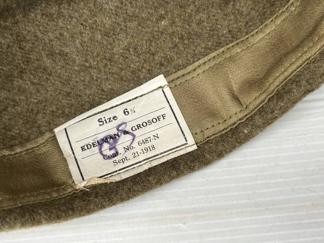 Trés beau calot troupe americain modéle 1912 en drap kaki . Calot de dotation toute arme . Disuque en metal noirci US fixé sur le devant . Rabats de drap . Bandeau de coiffe intérieur en coton kaki , etiquette fabricnt Edelman & Grosof 21 SEPT 1918 . Calot en superbe état sans aucun défaut Ref 21729
