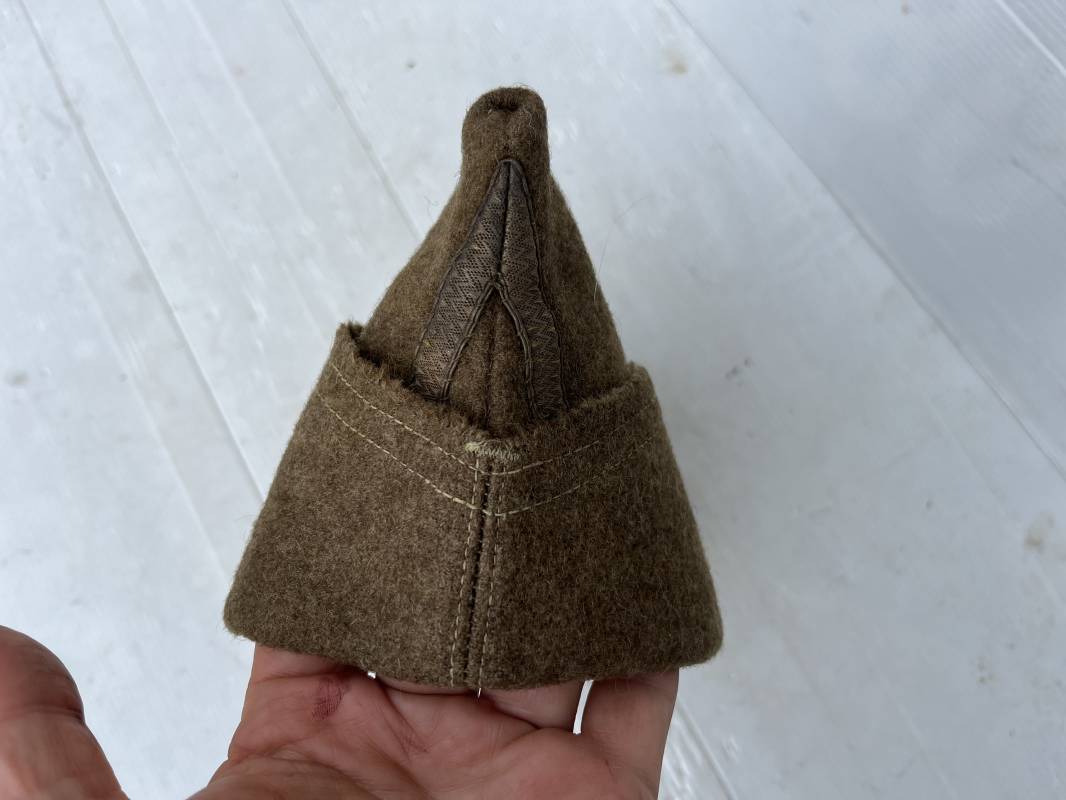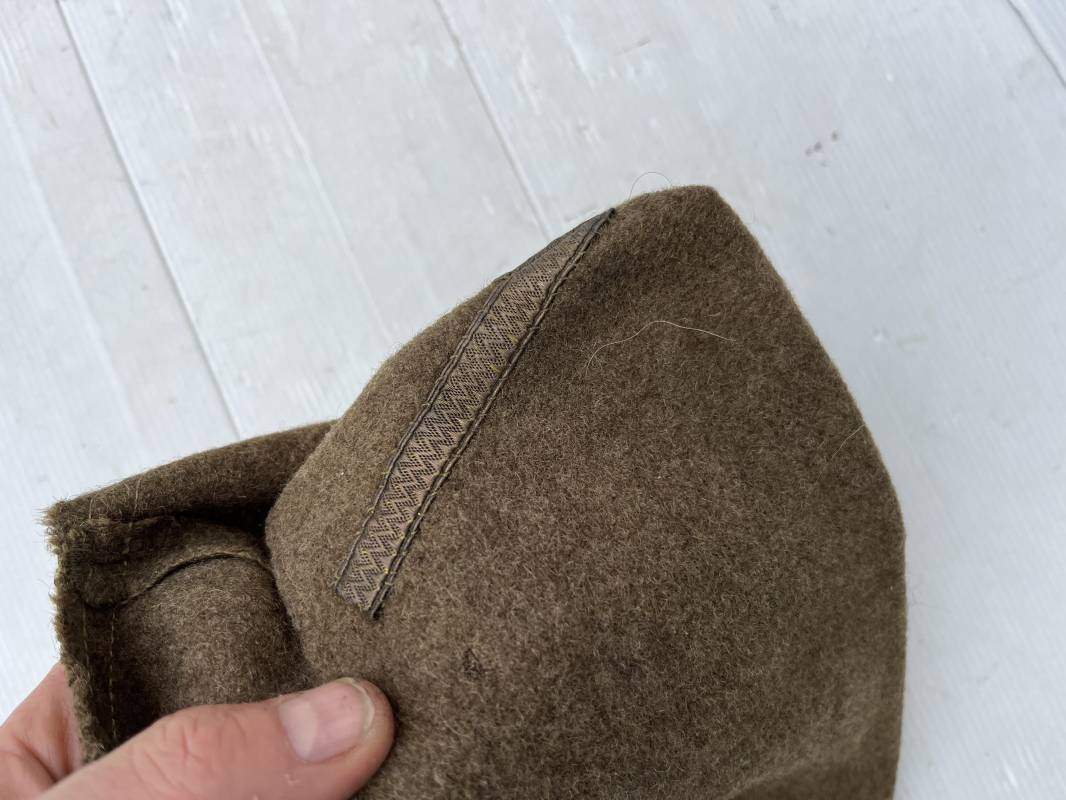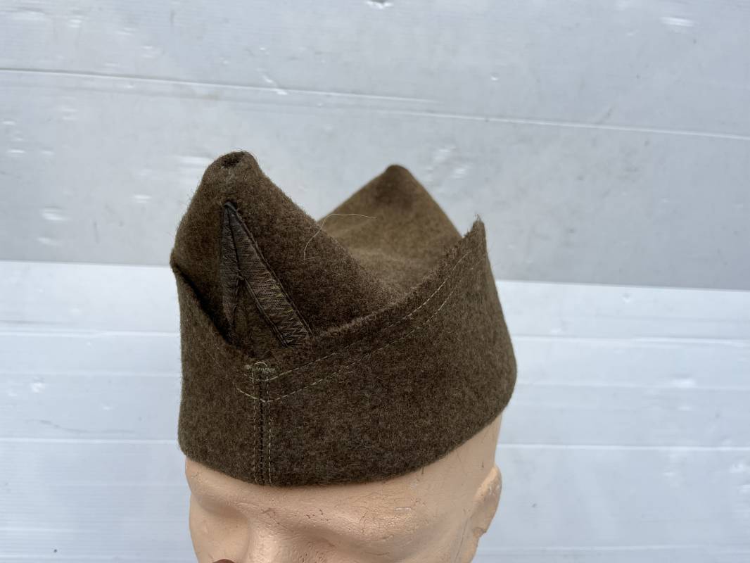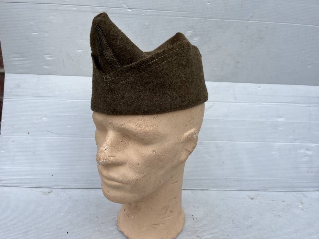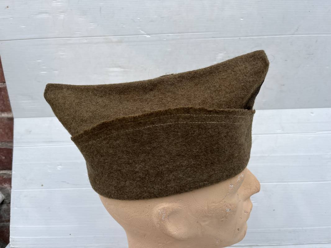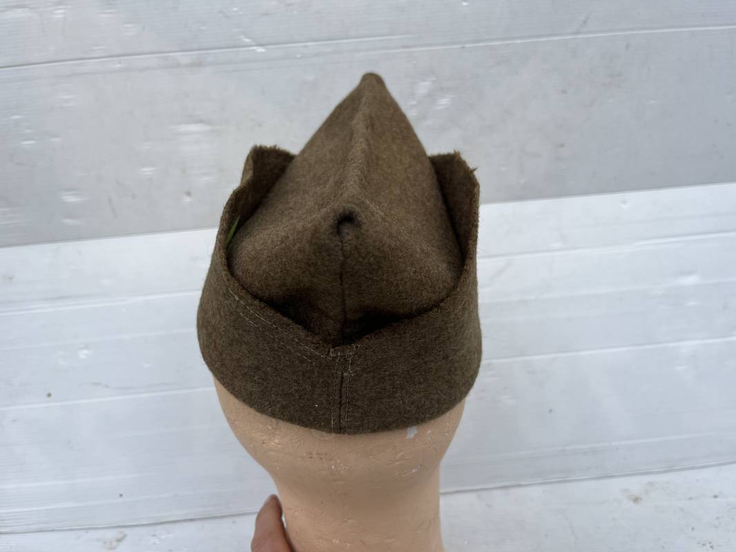 Trés beau calot troupe de dotation modèle 1918 en drap kaki. Modèle toute arme. Galon doré de sous officier cousu sur le devant ( lézarde) Grade de Sergent Pendant Durée Légale . Rabat en drap, bandeau intérieur de coiffe en coton blanc . Taille 58 Tampon rond fabricant Bérard Paris Tampon oval de réception daté 1927 . Calot légèrement porté en bel état . Coiffure typique du poilu en 1939/40. Ref 21735