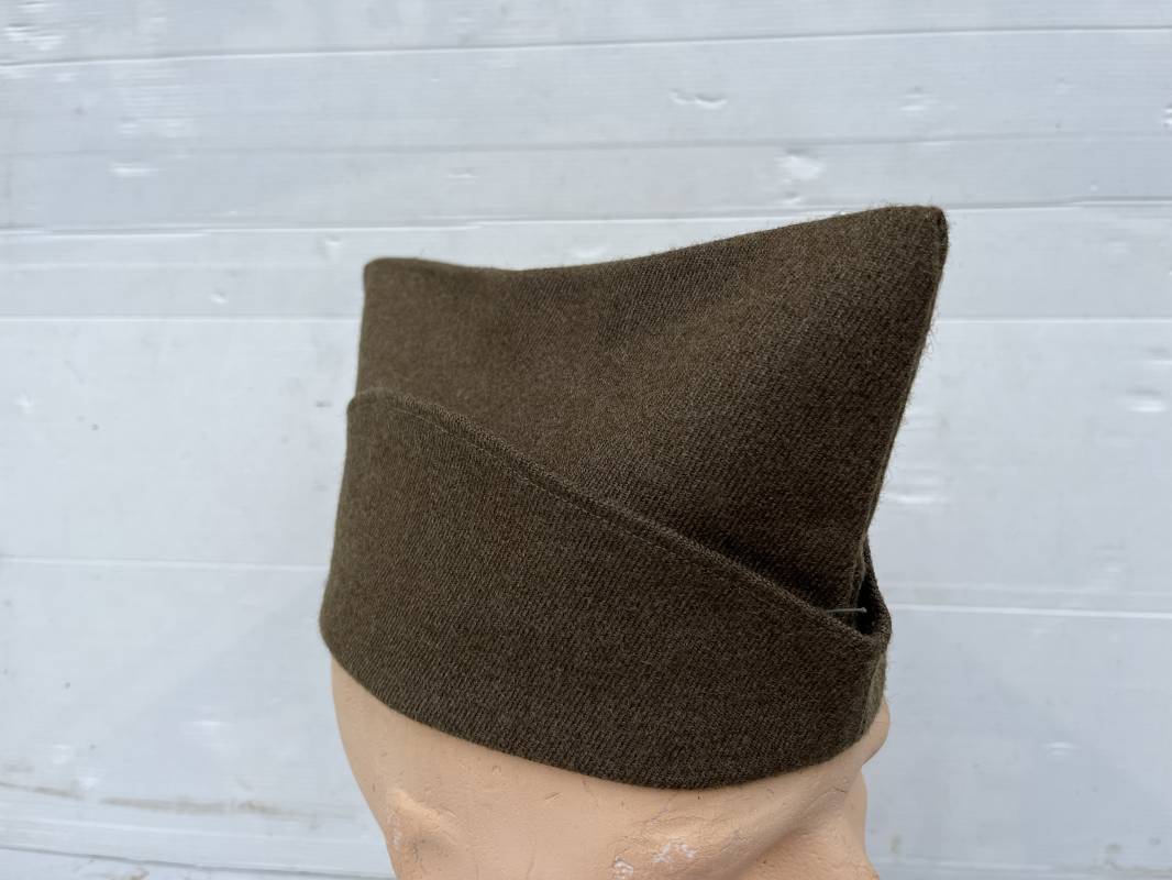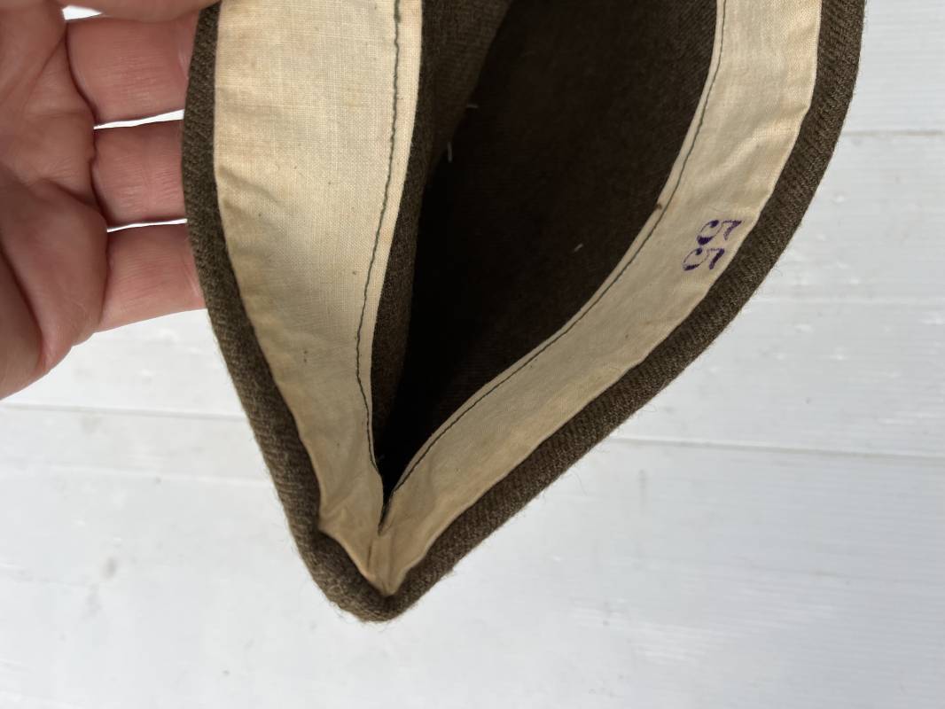 Trés beau calot troupe de dotation modèle 1918/35 en gabardine kaki. Modèle toute arme. Rabat en drap, bandeau intérieur de coiffe en coton blanc . Taille 55.Calo trés Légèrement porté en superbe état. Coiffure typique du poilu en 1939/40. Ref 17328