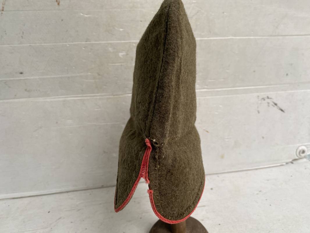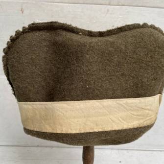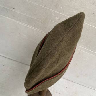 Beau calot troupe passepoilé modèle 1935 d'un soldat de l'Infanterie ou de l' Artillerie. Calot en drap kaki réglementaire pour tenue de sortie ou de défilé. Soutache garance. Bandeau de coiffe intérieur en coton blanc. Taille 57. Tampon rond de fabricant. Légèrement porté en bon état 1935/40. Ref 12124