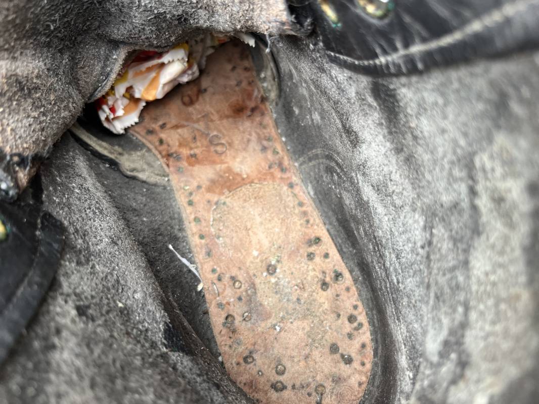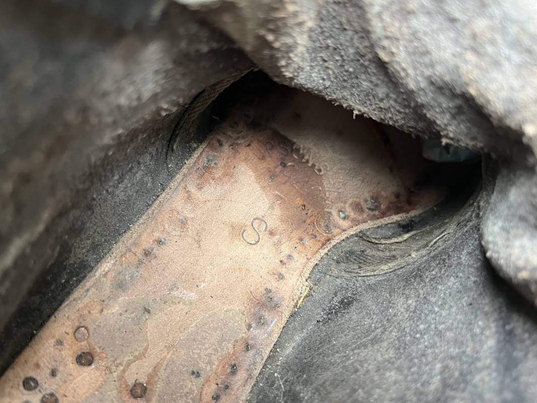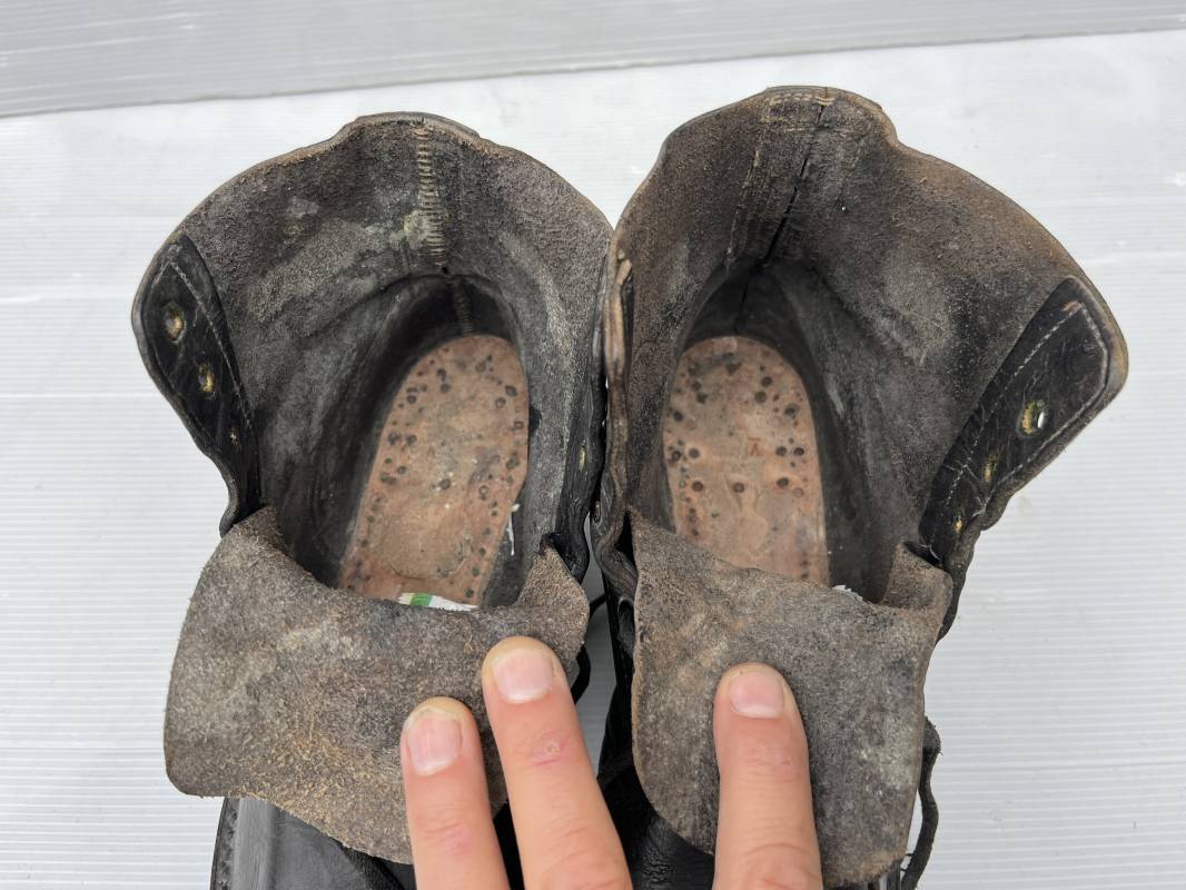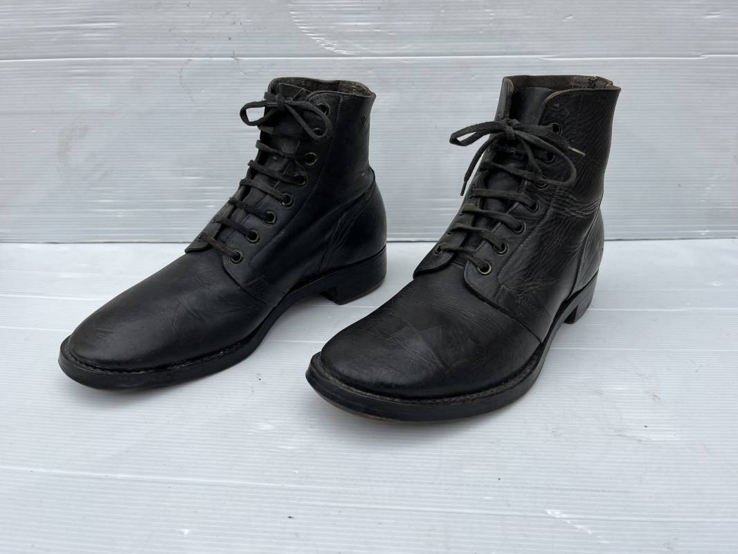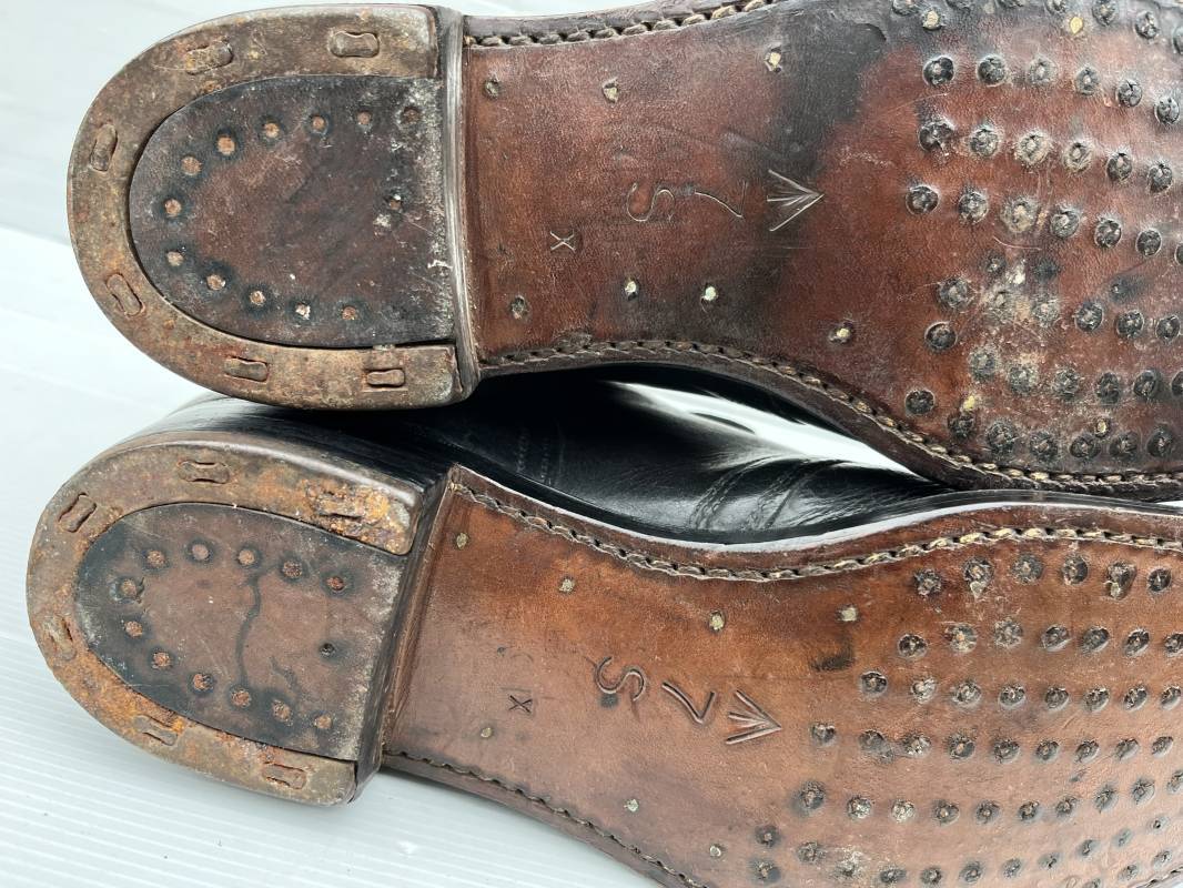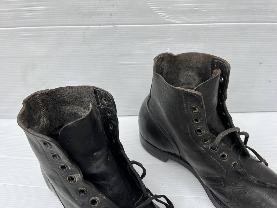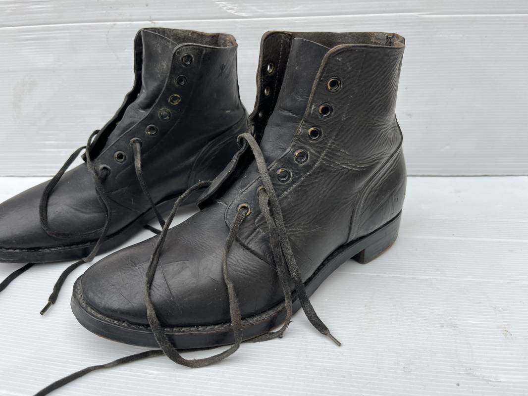 Rare paire de brodequins troupe de dotation de l armée canadienne . ' Boots Ankle Militia GS ', brodequins avec oeillets métalliques et lacet coton . Paire homogéne marquage fabricant en fond de semelle UPSONS 1942 Taille 7 S . Marquage sur hauts des tiges RCA Semelles et talon en cuir , embouts métalliques, talon avec fer en U Marquage sur semelles 7 S et fleche . Longueur semelle 28,5 cm , hauteur brodequins 15,5 cm . Cuir souple taille 42 . Paire homogéne et du meme fabricant dont le pied droit possede 8 oeilletes et le pied gauche 7 !! Cette rare paire d ebrodequins a ete trouvée en brocante au Havre ( 76 ) Ref 18989