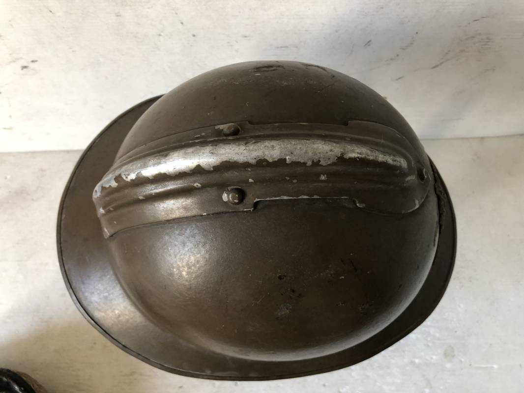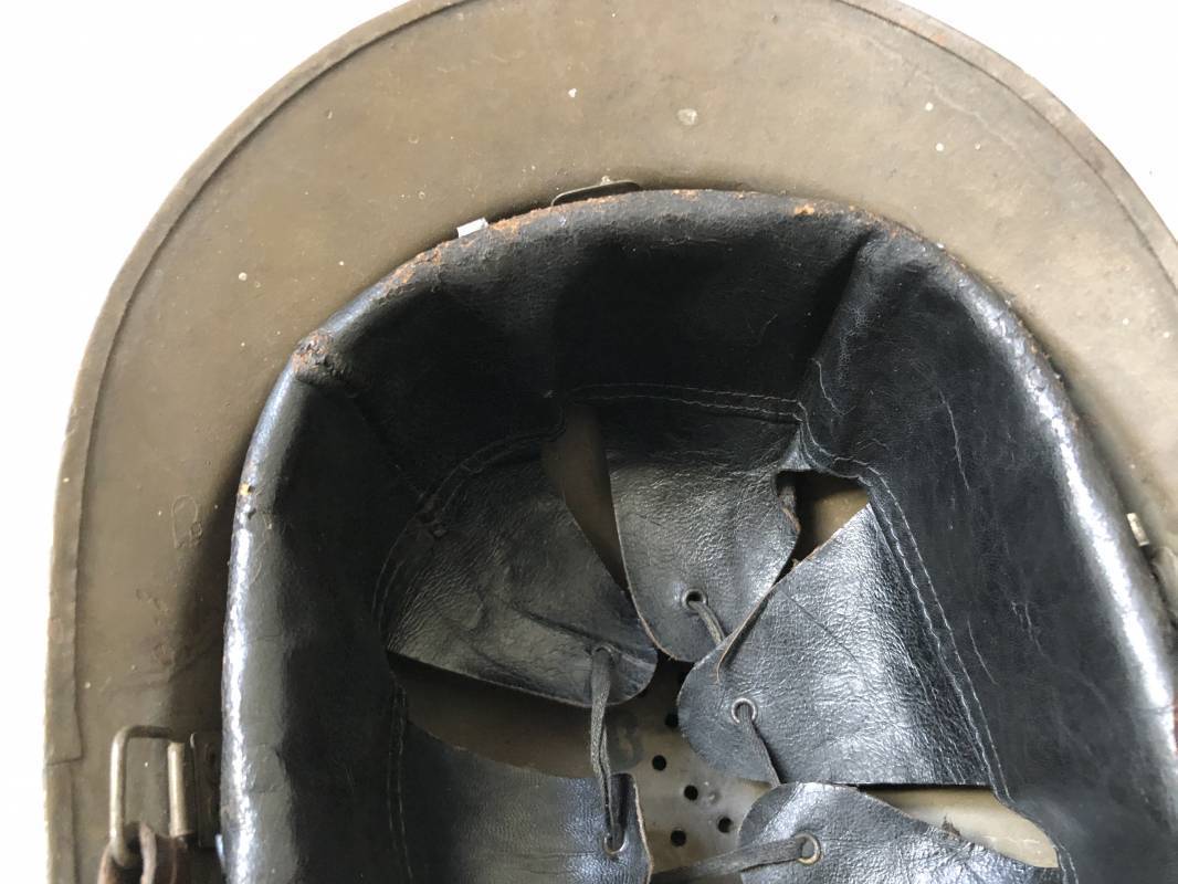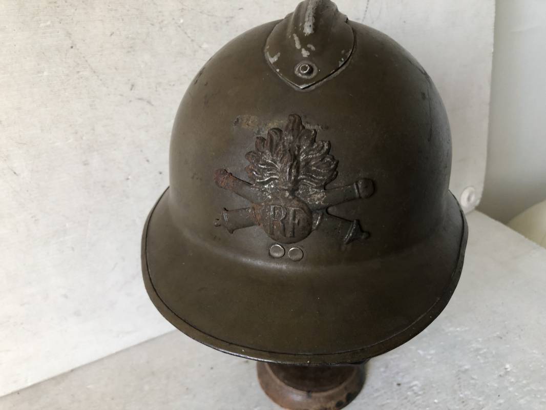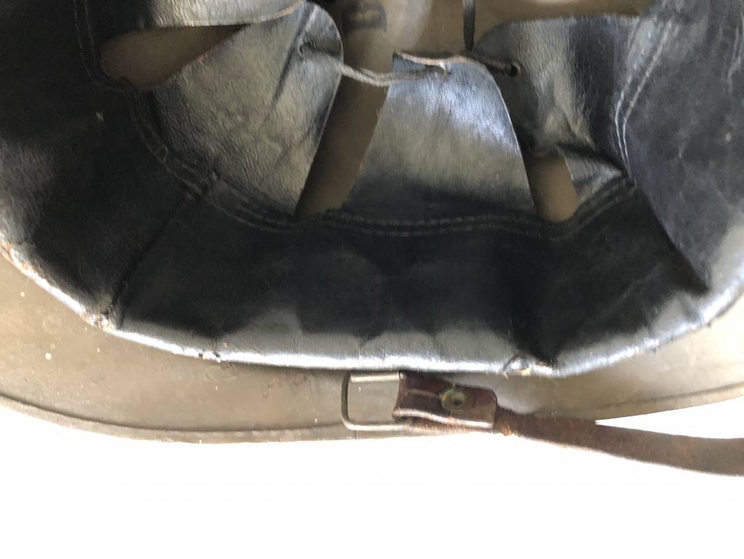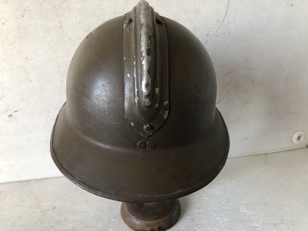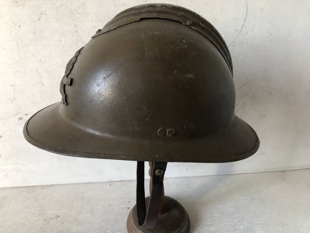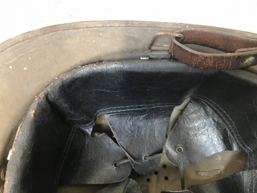 Beau casque Adrian modéle 1926 de l'artillerie . Coque avec peinture d'usinage de couleur kaki mate . Cimier alu . Insigne modéle 1915 de l'artillerie . Marquage fabricant en fond de bombe Japy D . Jugulaire cuir fauve souple , rivet laiton . . Marquage nom du soldat manuscrit sur nuquière 'Lionnet' . Intérieur en cuir noir glacé , feutrine grise , crochets métalliques plats . Lacet coton noir d'origine . Taille 57 Casque légérement porté en parfait état . Bon casque de la campagne de France 1939/40 Ref 11282