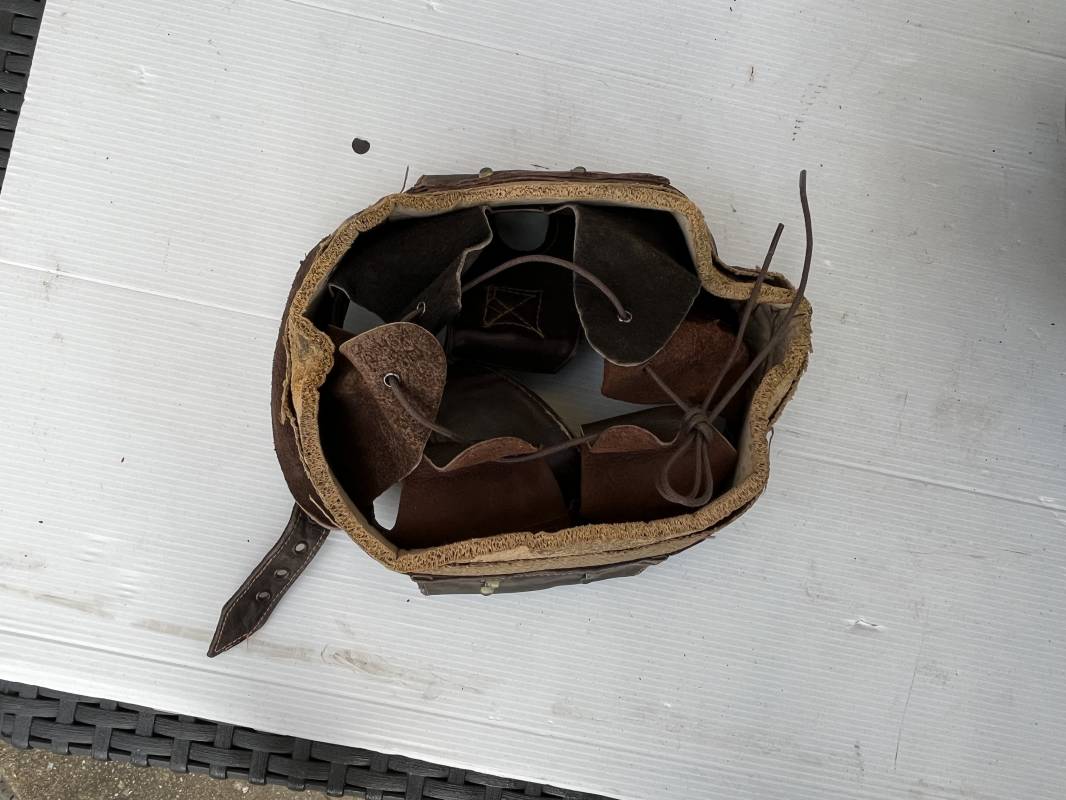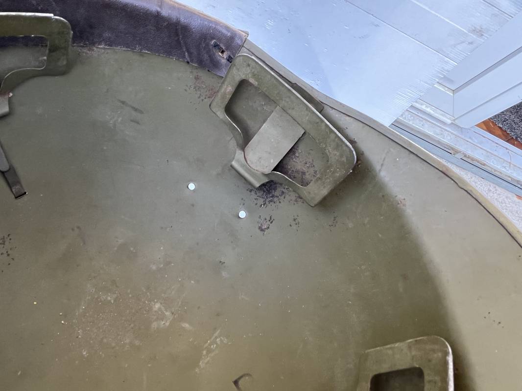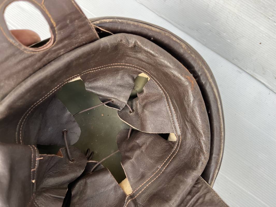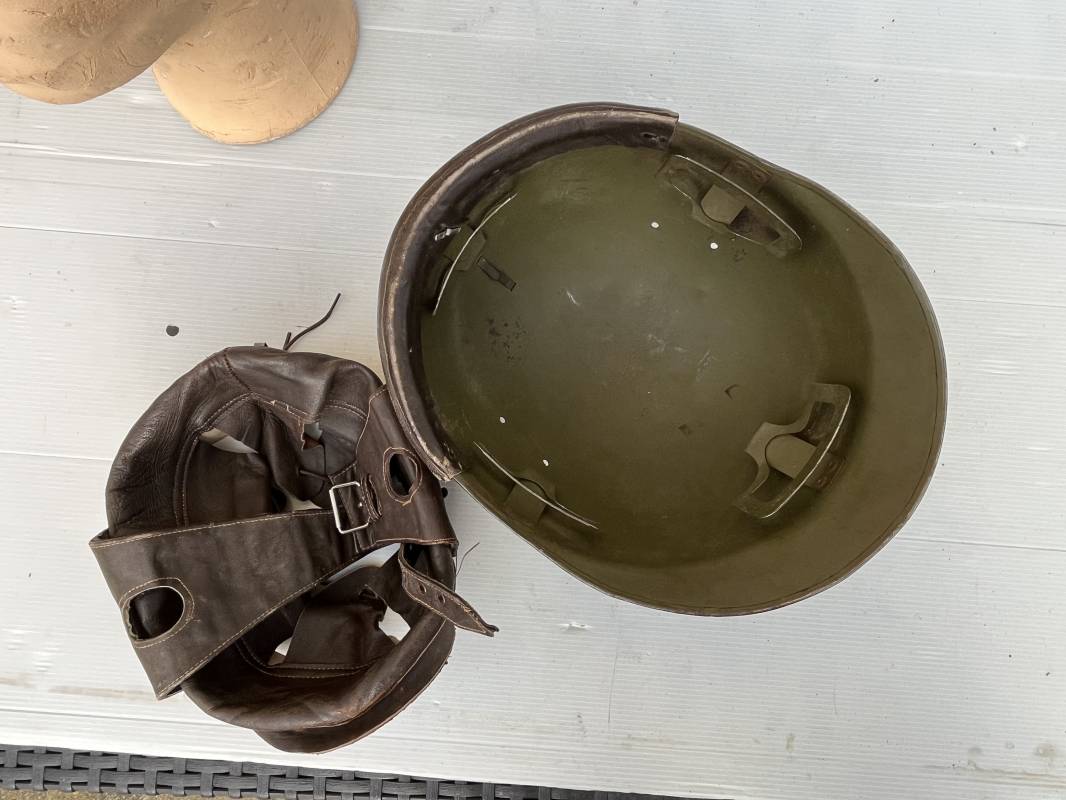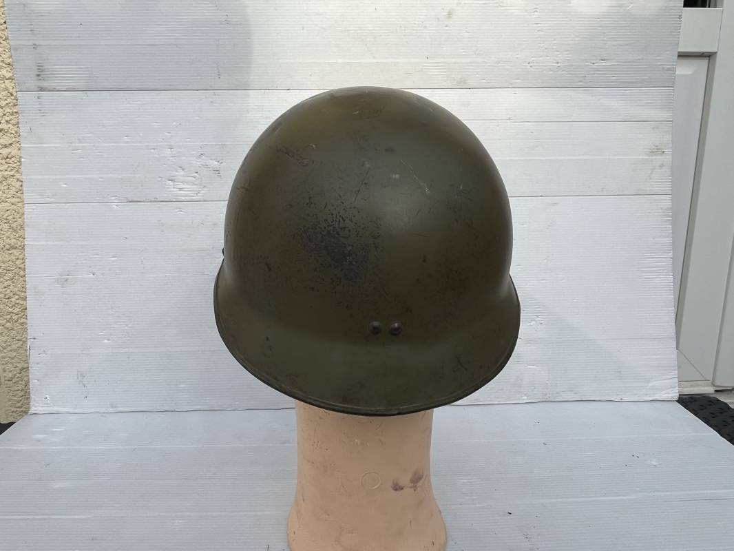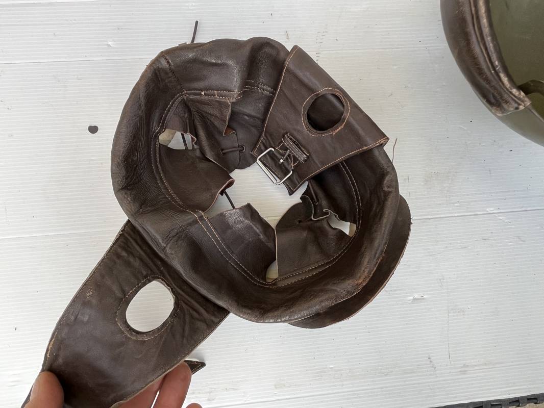 Rare casque modèle 1935 du 2me type reconnaissance blindée . Casque modèle 1935 du deuxième type avec bourrelet cuir marron foncé . Trés belle peinture d usinage kaki claire . Peinture non frottée . Insigne frontal Pastille modèle 1937 ' Téte de méduse ' des unités de reconnaissance legères blindées . A noté sur l insigne a tete de méduse , le point de soudure rond électrique typique des insignes authentiques . Quatre lamelles ressort metallique de fixation de la coiffe intérieur . Tampon noir marquage fabricant FRANCK Coiffe interieure en cuir marron foncé du deuxième type ( avec le petit rabat en cuir sur le devant ) , bavolets , boucle métallique de fermeture Cuir souple. taille 57 . Tampon rond de fabricant daté 1940 . Lacet d'origine en coton marron . Rare casque trés légérement porté et en superbe état . Rare coiffure dont dont nous garantissons l'authenticité absolue .Coiffure définitive en collection . Ce rare casque a été trouvé en succession familiale a Paris . Casque typique du tankiste francais en 1939/40 Ref 19638