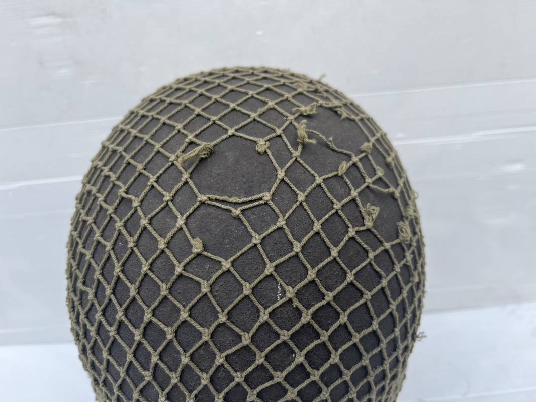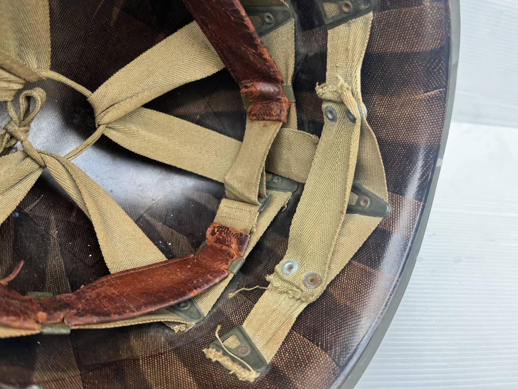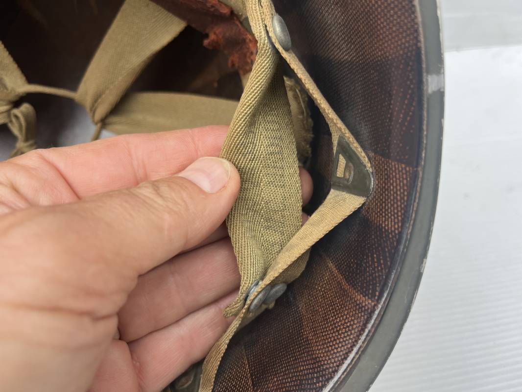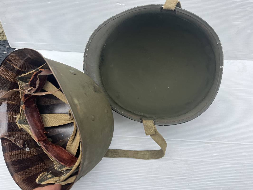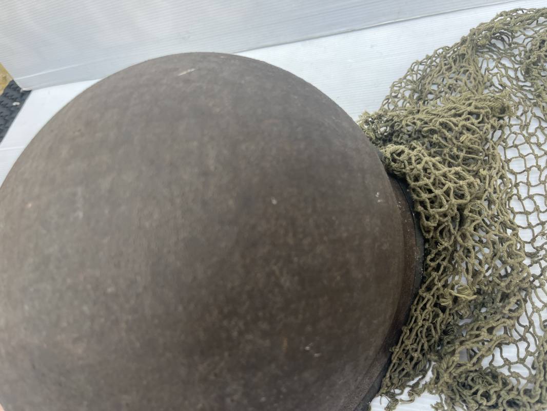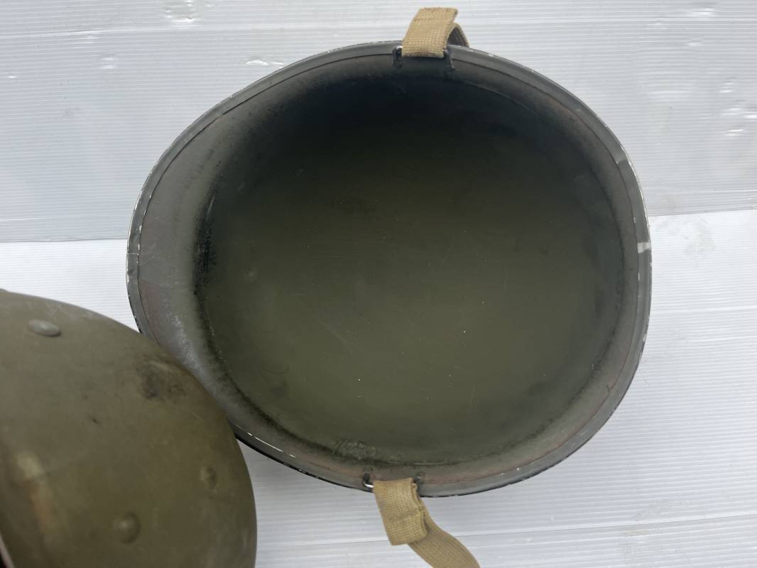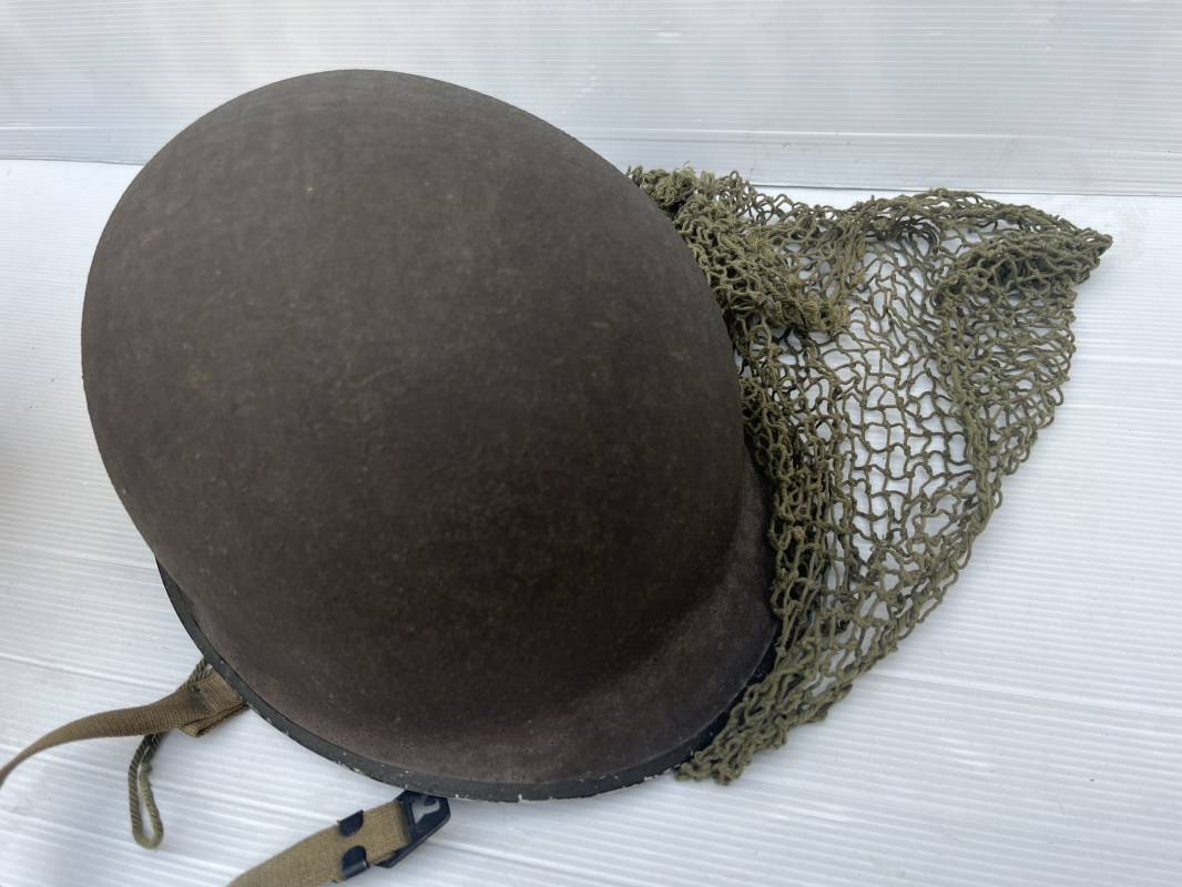 Très beau casque Américain USM1 avec son filet trouvé en Normandie à Cherbourg (50) il y a 40 ans. 100 % nature et totalement intouché . . Casque léger (Liner) en fibre compressée. Peinture OD d'usinage. Marquage fabricant en fond de bombe Westinghouse . Intèrieur en toile OD, lacet en coton, nuquière. Bandeau de coiffe en cuir marron . Jugulaire d'origine en cuir marron foncé. Boucle plate en fer Rivets en fer , cuir souple. Casque lourd avec jonc avant fabricant Mc Cord. Chiffres sur le devant intèrieur illisibles. Peinture semi granuleuse OD d'usinage. Pontets fixes "Fix Bale". Jugulaire en toile OD cousues d'origines. Boucle et crochet en métal noirci. Filet americain en coton vert avec cordon de serrage . Ce filet a été trouvé avec ce casque , la peinture exterieur du casque porte les traces du port de ce filet laissant apparaitre les traces des mailles . ( voir photos ) . Bon casque légèrement porté en parfait état. Bon casque de la Bataille de Normandie 1942/44.Coiffure définitive en collection Ref 21509