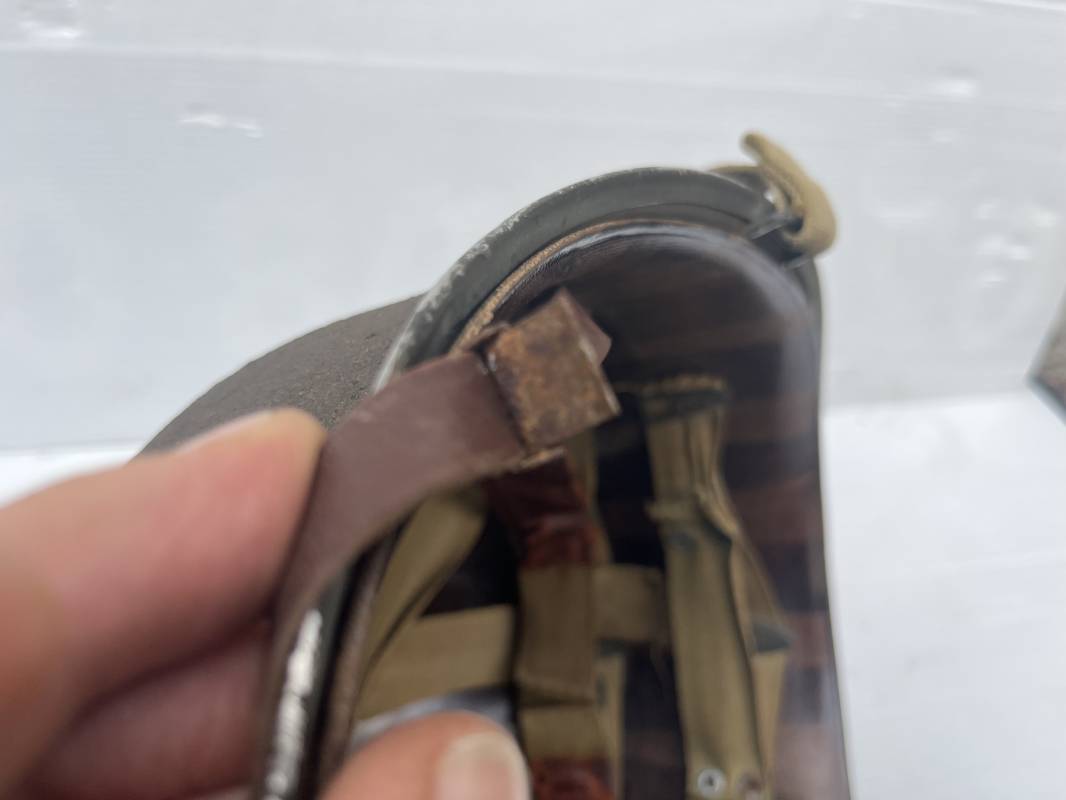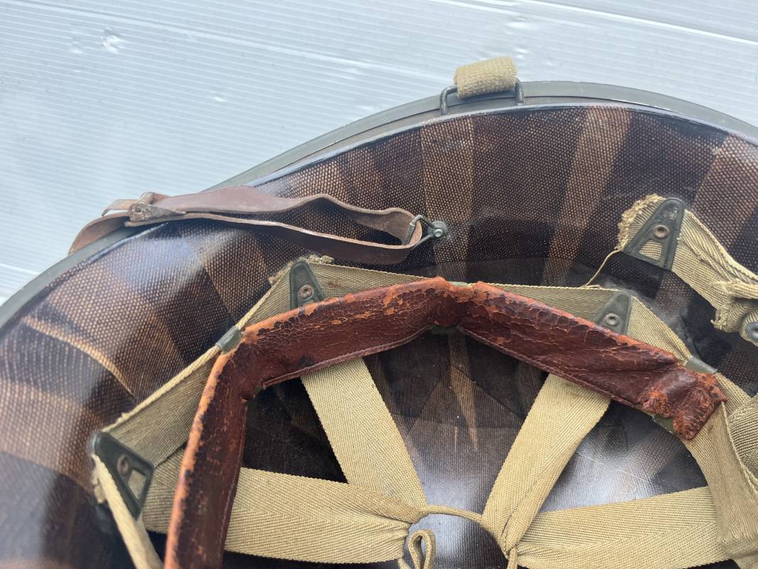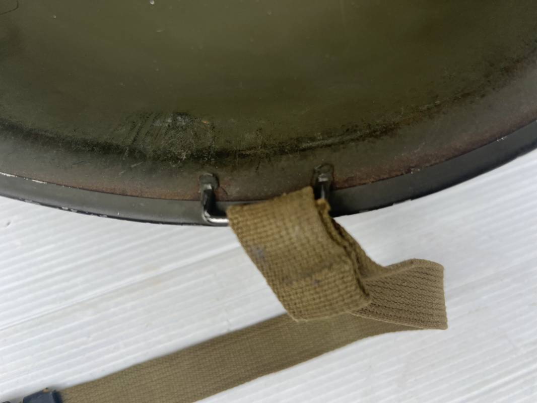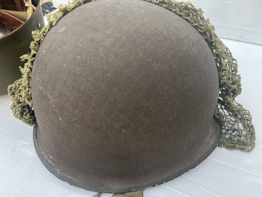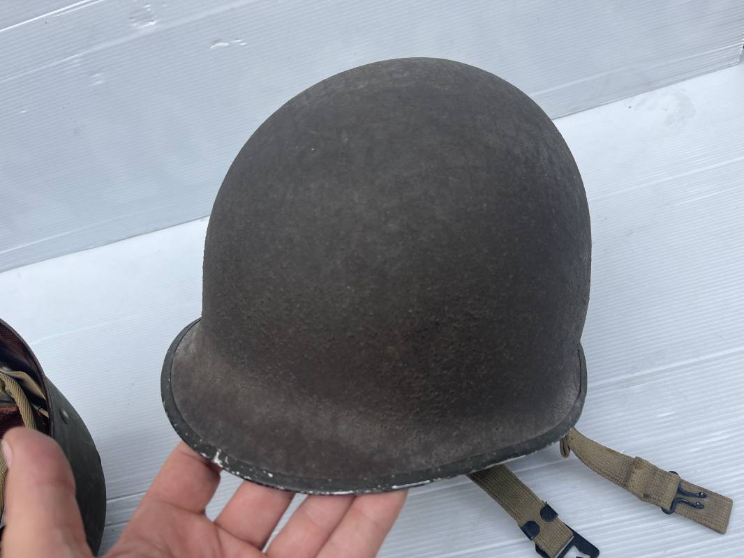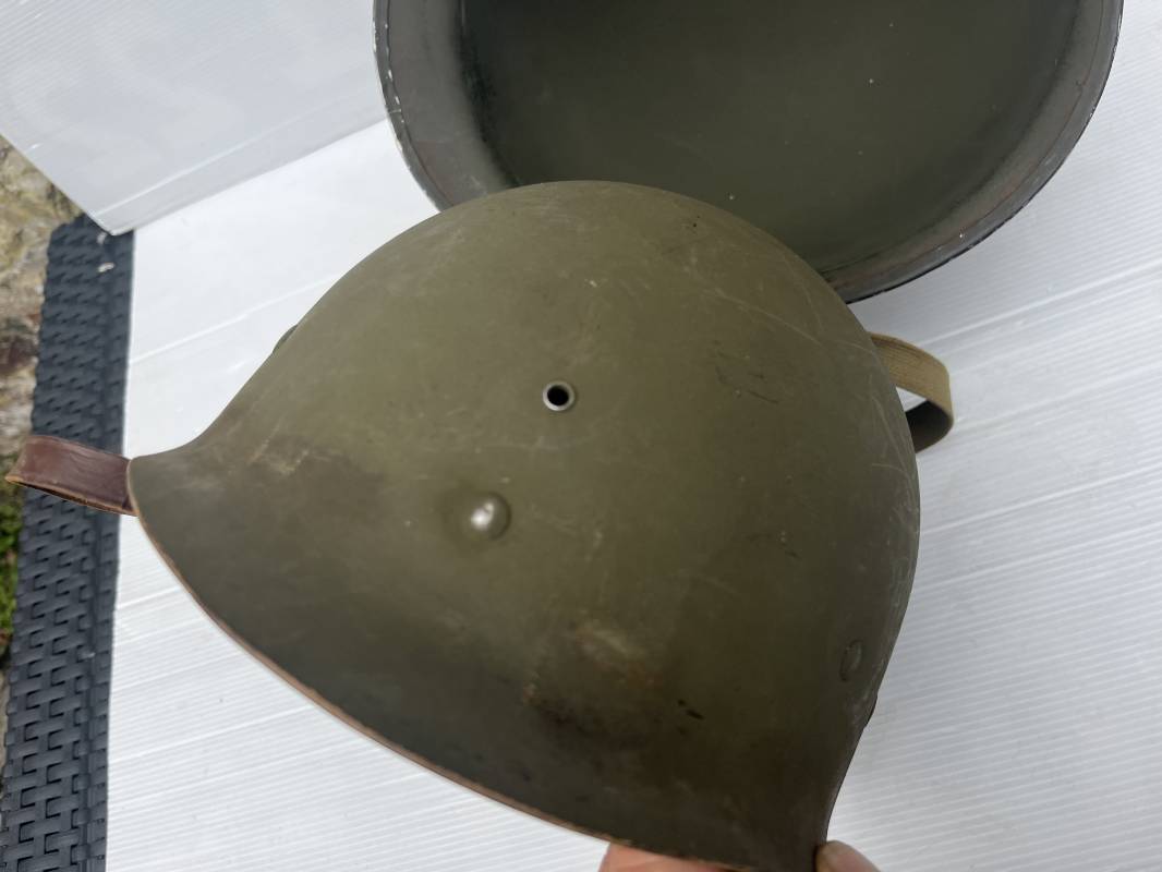 Très beau casque Américain USM1 avec son filet trouvé en Normandie à Cherbourg (50) il y a 40 ans. 100 % nature et totalement intouché . . Casque léger (Liner) en fibre compressée. Peinture OD d'usinage. Marquage fabricant en fond de bombe Westinghouse . Intèrieur en toile OD, lacet en coton, nuquière. Bandeau de coiffe en cuir marron . Jugulaire d'origine en cuir marron foncé. Boucle plate en fer Rivets en fer , cuir souple. Casque lourd avec jonc avant fabricant Mc Cord. Chiffres sur le devant intèrieur illisibles. Peinture semi granuleuse OD d'usinage. Pontets fixes "Fix Bale". Jugulaire en toile OD cousues d'origines. Boucle et crochet en métal noirci. Filet americain en coton vert avec cordon de serrage . Ce filet a été trouvé avec ce casque , la peinture exterieur du casque porte les traces du port de ce filet laissant apparaitre les traces des mailles . ( voir photos ) . Bon casque légèrement porté en parfait état. Bon casque de la Bataille de Normandie 1942/44.Coiffure définitive en collection Ref 21509