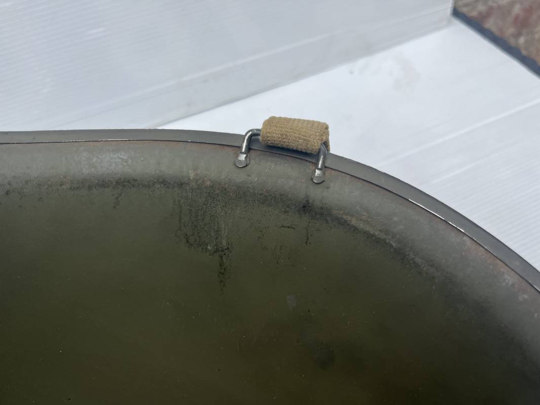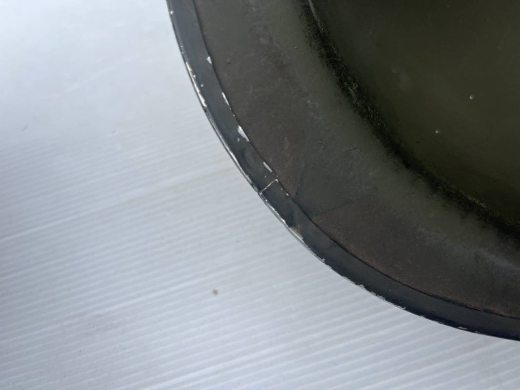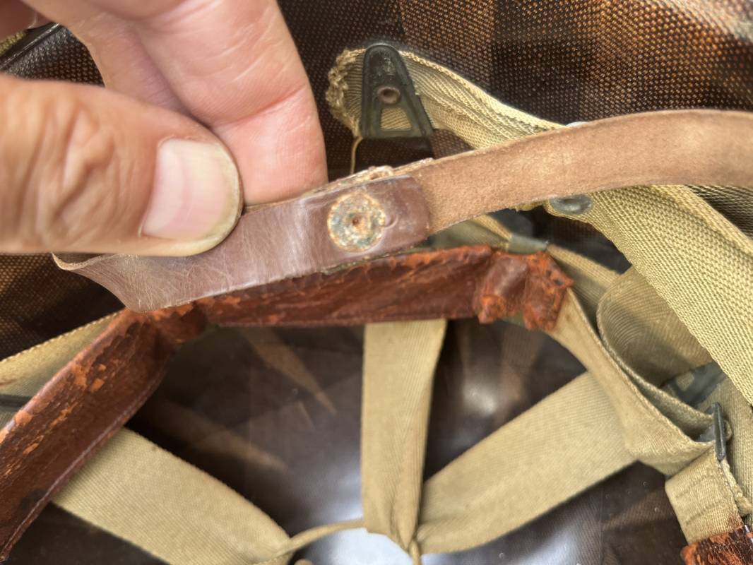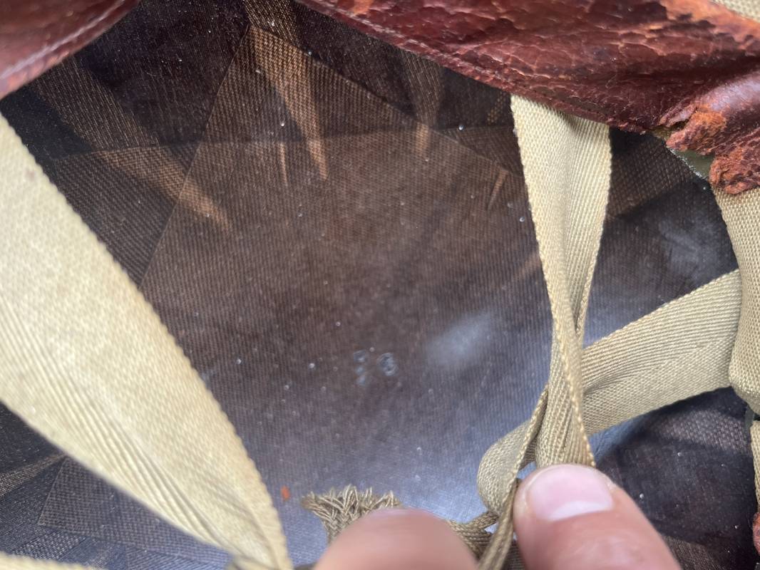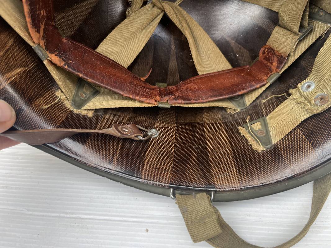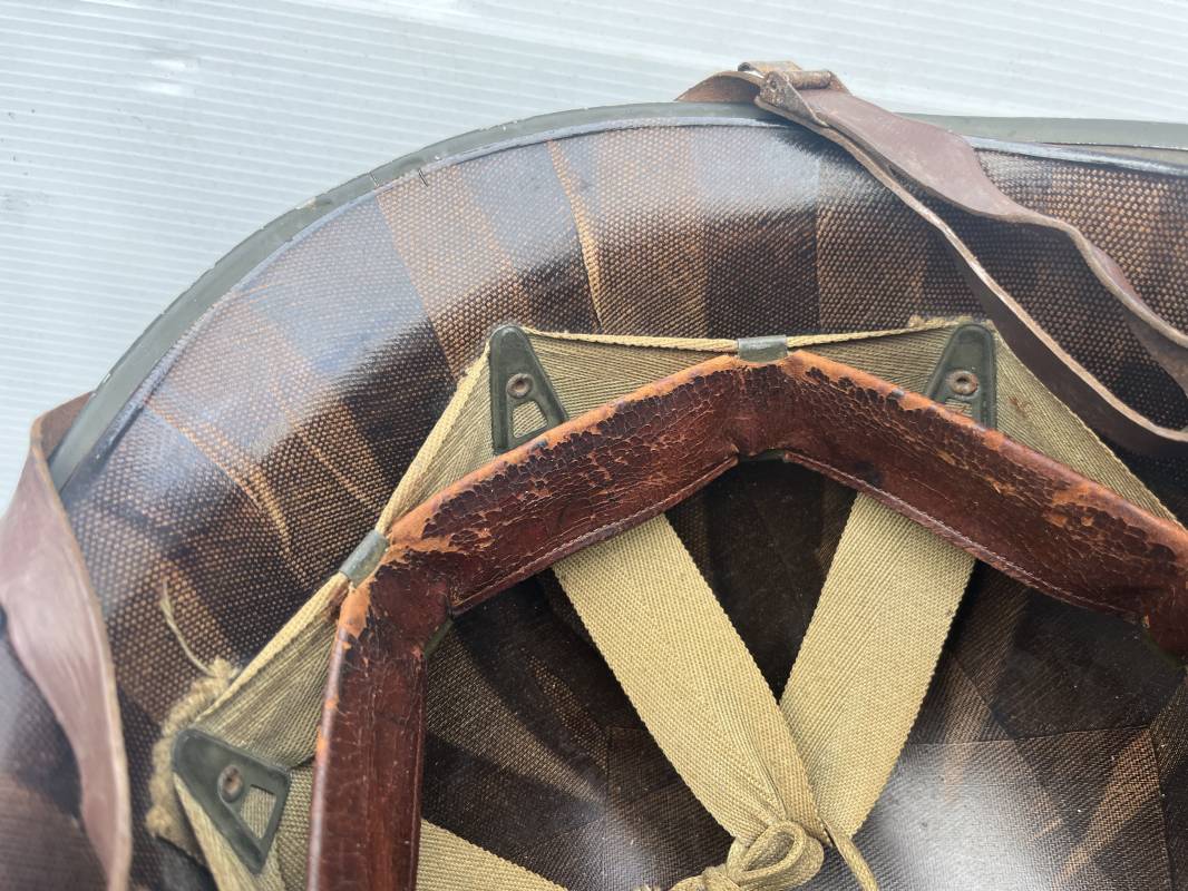 Très beau casque Américain USM1 avec son filet trouvé en Normandie à Cherbourg (50) il y a 40 ans. 100 % nature et totalement intouché . . Casque léger (Liner) en fibre compressée. Peinture OD d'usinage. Marquage fabricant en fond de bombe Westinghouse . Intèrieur en toile OD, lacet en coton, nuquière. Bandeau de coiffe en cuir marron . Jugulaire d'origine en cuir marron foncé. Boucle plate en fer Rivets en fer , cuir souple. Casque lourd avec jonc avant fabricant Mc Cord. Chiffres sur le devant intèrieur illisibles. Peinture semi granuleuse OD d'usinage. Pontets fixes "Fix Bale". Jugulaire en toile OD cousues d'origines. Boucle et crochet en métal noirci. Filet americain en coton vert avec cordon de serrage . Ce filet a été trouvé avec ce casque , la peinture exterieur du casque porte les traces du port de ce filet laissant apparaitre les traces des mailles . ( voir photos ) . Bon casque légèrement porté en parfait état. Bon casque de la Bataille de Normandie 1942/44.Coiffure définitive en collection Ref 21509