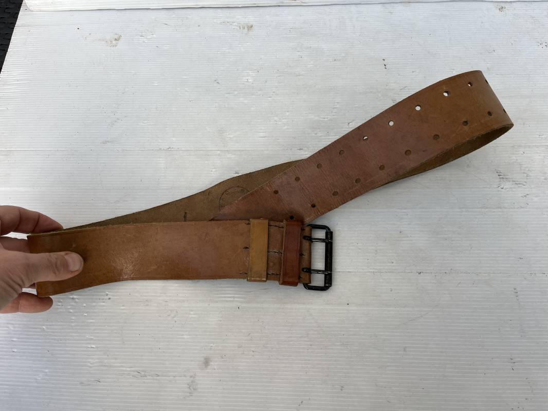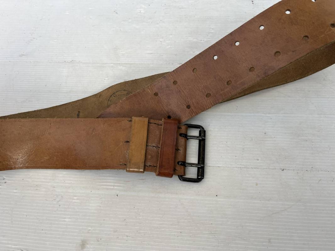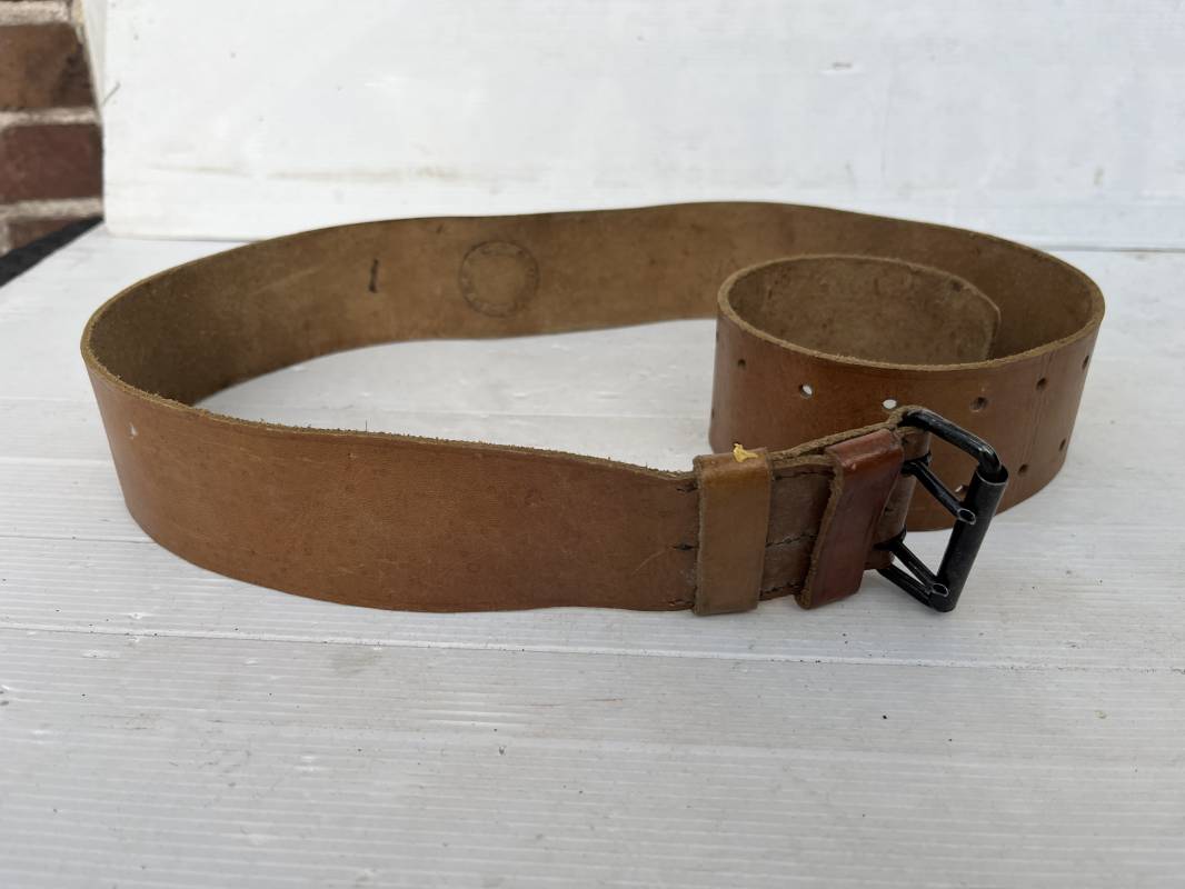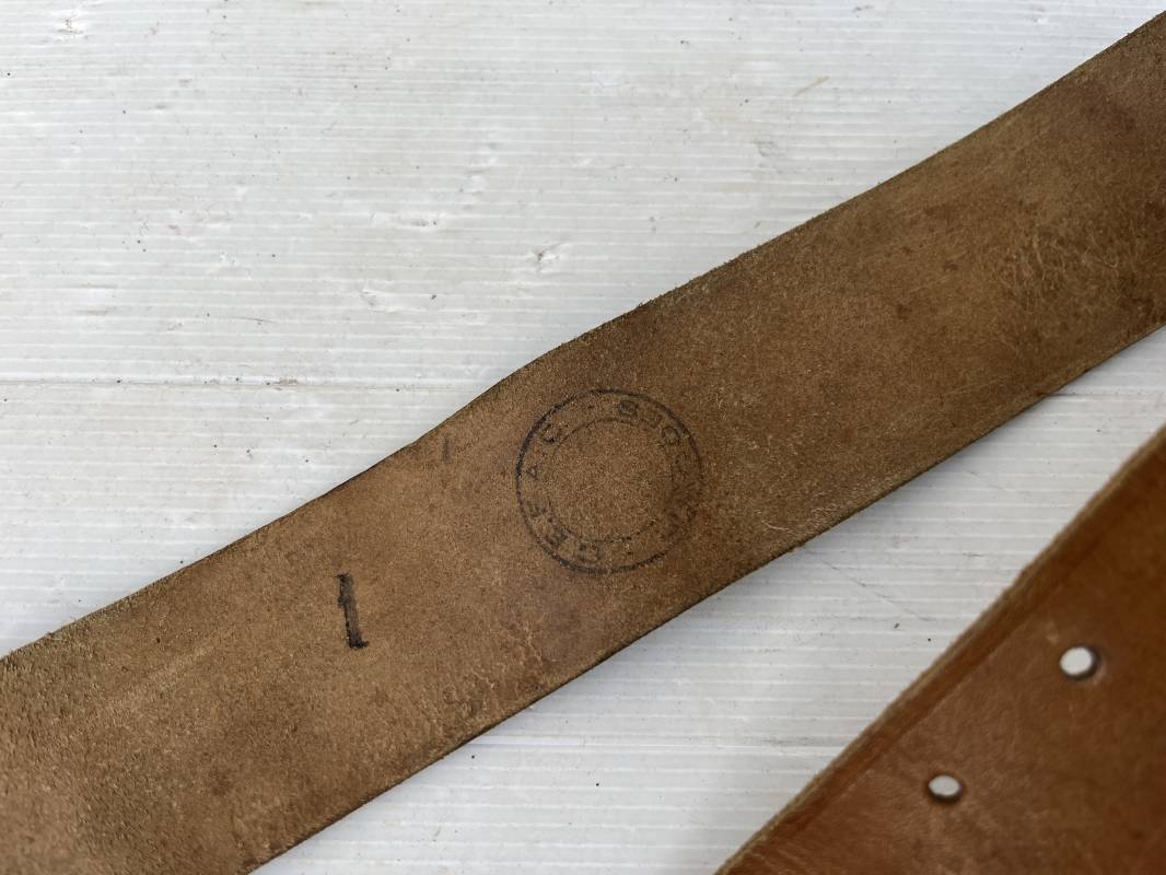 Trés beau ceinturon troupe modèle 1903/14 en cuir marron . Ceinturon troupe réglementaire avec boucle en fer noir à deux ardillons. Deux passants cuir de ceinturon fixe et mobile, cuir souple. Longueur 110 cm.Tampon encre noir rond de fabricant ; Trés légèrement porté en parfait état 1939/40. Ref 5696