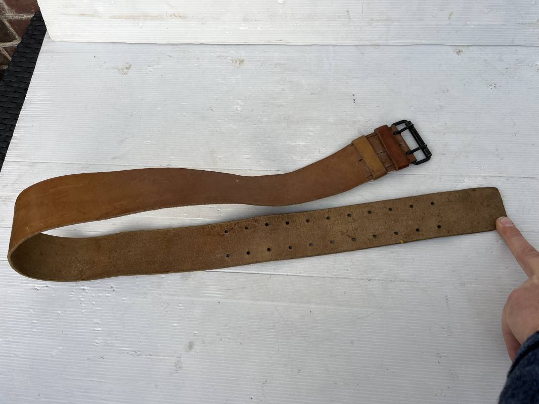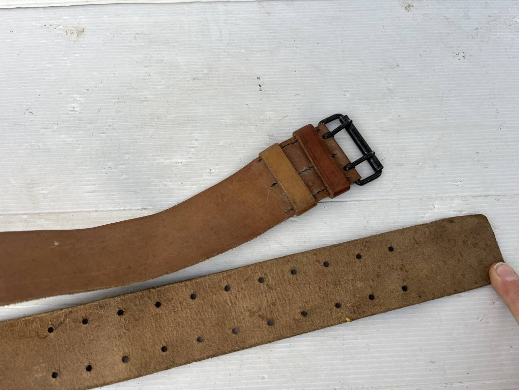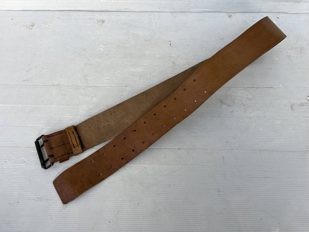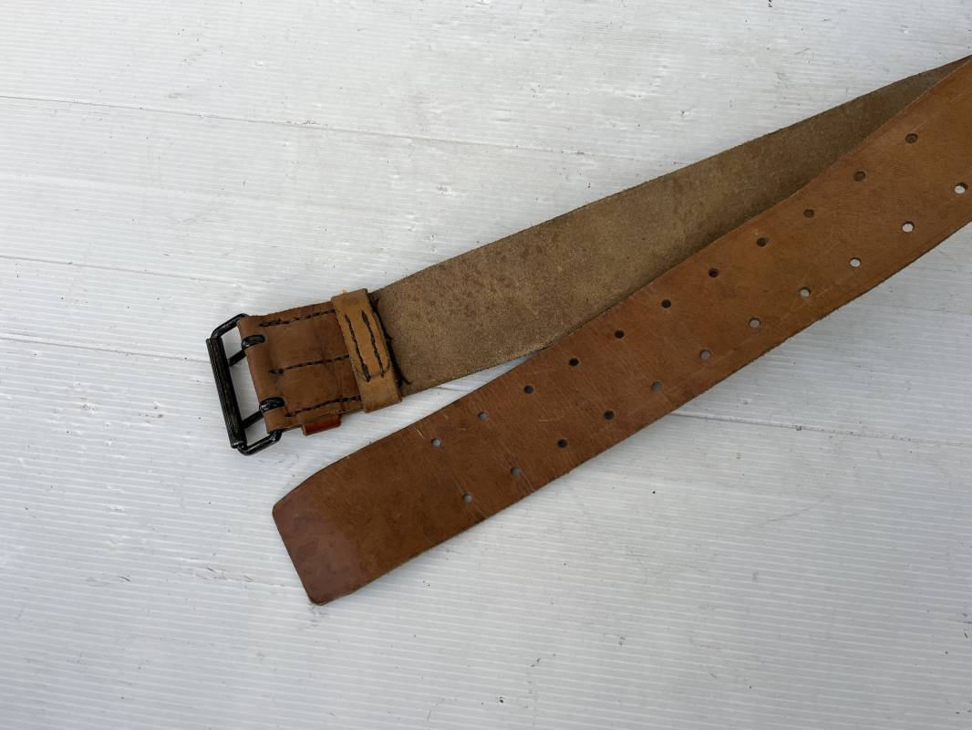 Trés beau ceinturon troupe modèle 1903/14 en cuir marron . Ceinturon troupe réglementaire avec boucle en fer noir à deux ardillons. Deux passants cuir de ceinturon fixe et mobile, cuir souple. Longueur 110 cm.Tampon encre noir rond de fabricant ; Trés légèrement porté en parfait état 1939/40. Ref 5696