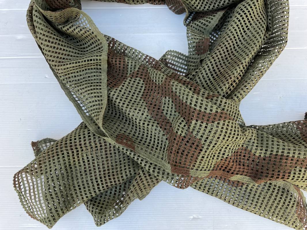 Bon chéche camouflé type TAP 50 . Chéche en mailles de filet coton camouflé vert et marron . Pleins dimensions . Trés légérement porté , parfait état 1950/60 Ref 18128