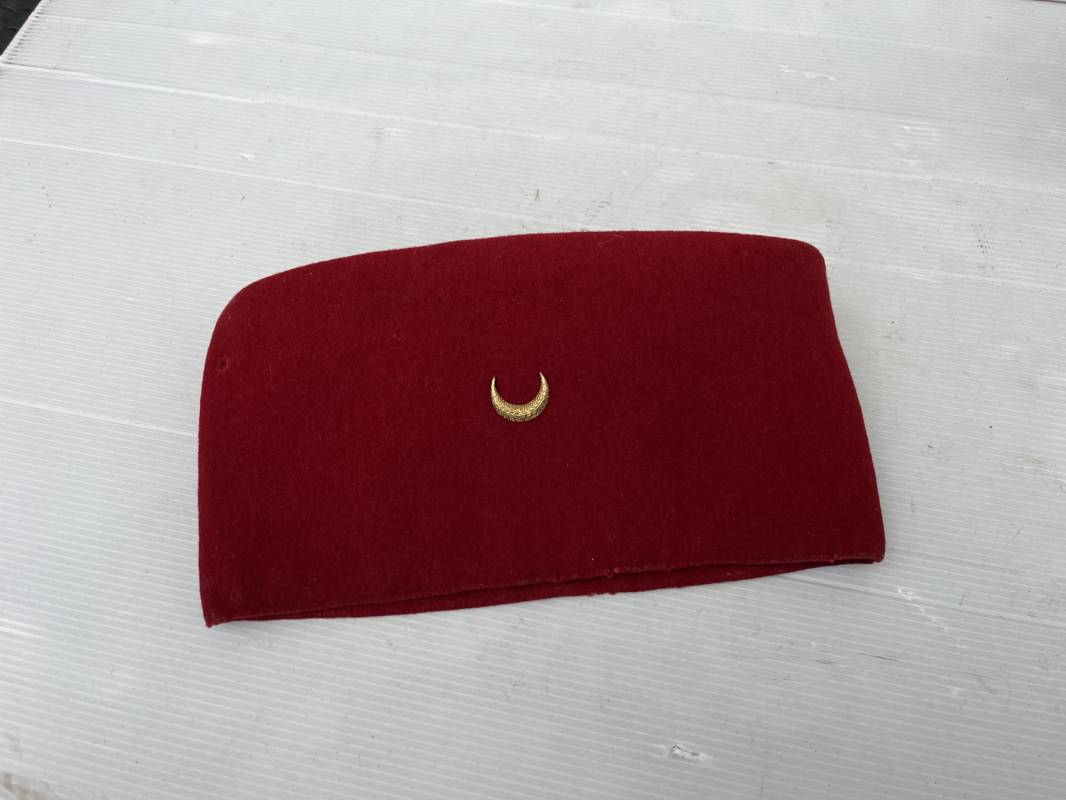 Trés belle chéchia troupe troupe d'Afrique ( tirailleur ou zouave) . Chéchia réglementaire en drap de laine garance Croissant en métal doré epinglé sur le devant . Taille 56 . légèrement portée en bel état Ref 17041