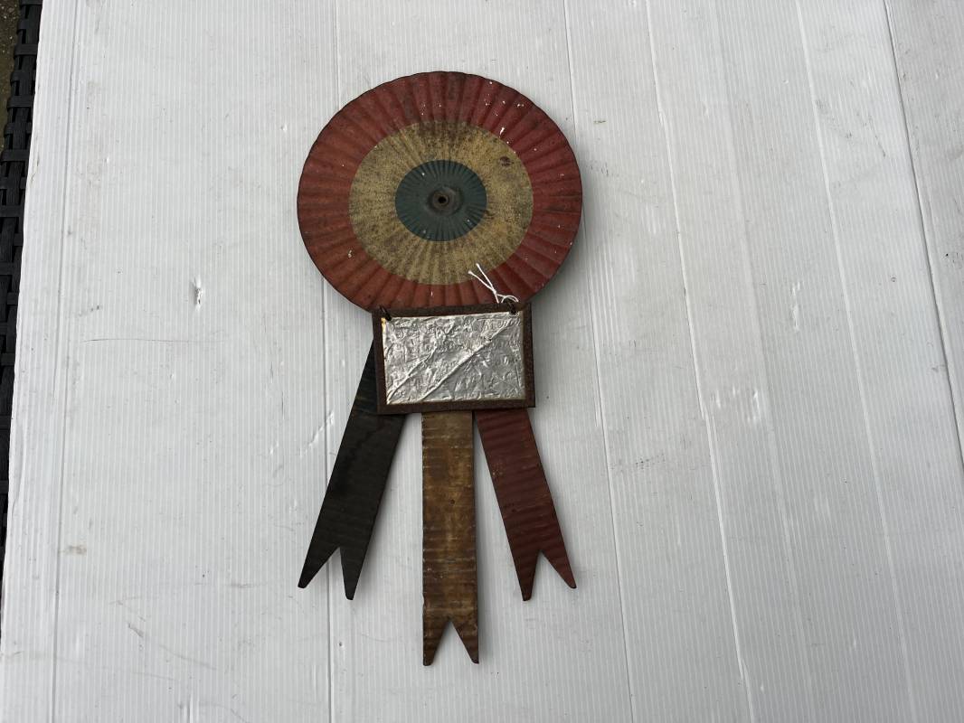 Rare cocarde ' mort pour la France ' . Cocarde métallique Hauteur totale 35 cm . Cocarde diametre 17 cm . Complete avec ses trois franges tricolores et le rectangle metallique articulé nominatif . Inscriptions manuscrites difficilement lisible ' Ici repose Setrierut .. Infanterie .. Marseille ... 10/09/1914 ' . Rare plaque en parfait état 1914/18 Ref 21377