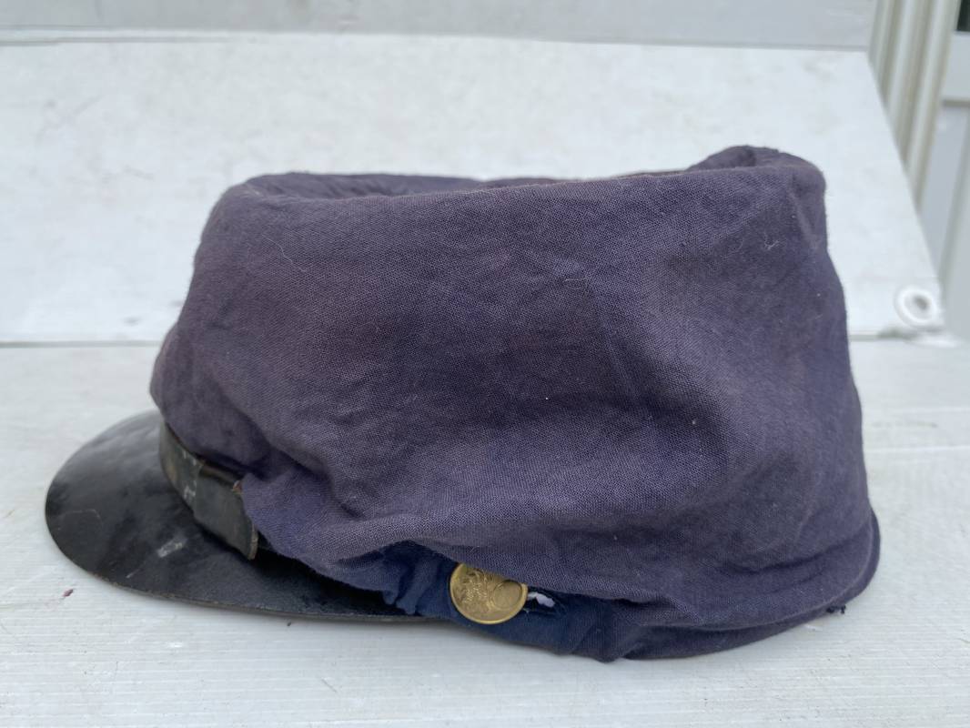 Trés rare et authentique couvre képi 84 troupe modéle 1912 en calicot gris de fer bleuté . Couvre képi réglementaire et de dotation pour le képi troupe modéle 1884 . Rare couvre képi dont nous garantissons l'authenticité absolue par certificat d'authenticité . Lacet en coton GDFB d'origine . Passants boutonnières . Petits passants pour fixation de la nuquière . Couvre képi légérement porté en parfait état . Légére trace de décoloration typique couleur 'bleu violacé '. Couvre képi pour un képi de taille 57/60 Trés bel exemplaire en parfait état . 100 % dans son jus et totalement intouché . Cette rare piéce d'équipement est sans nul doute l'objet le plus difficile à trouver pour complèter un fantassin d'Aout 1914 . Le prix de vente ne comprend que le couvre képi , le kepi sur les photos ne fait pas parti du prix de vente . Rare pièce typique Aout Septembre 1914 Ref 14334