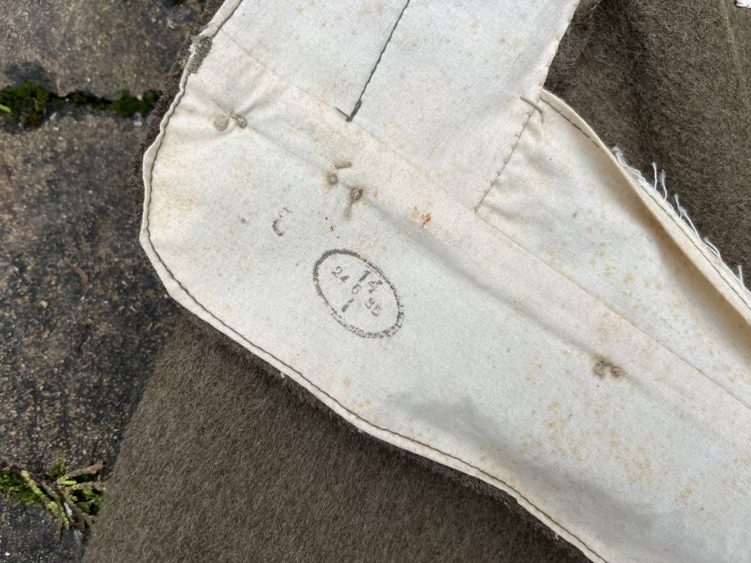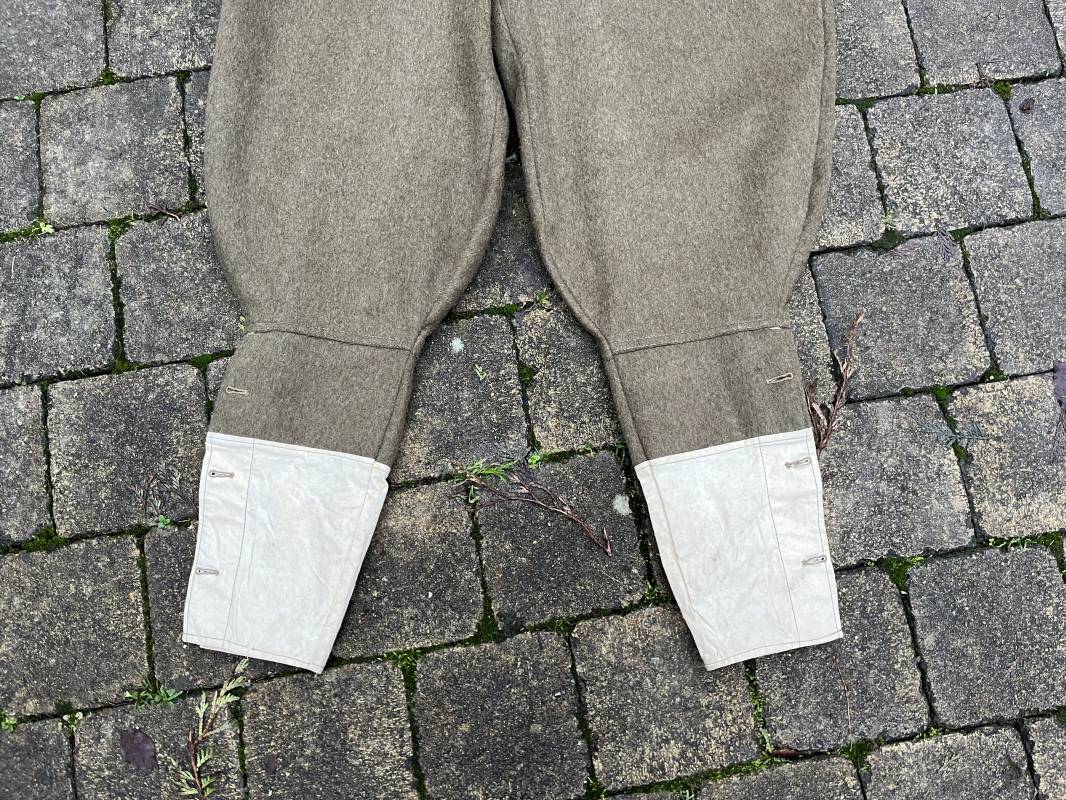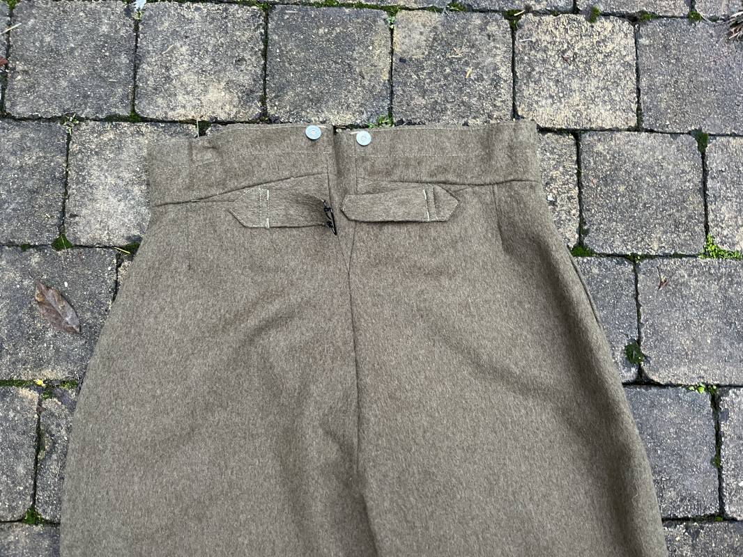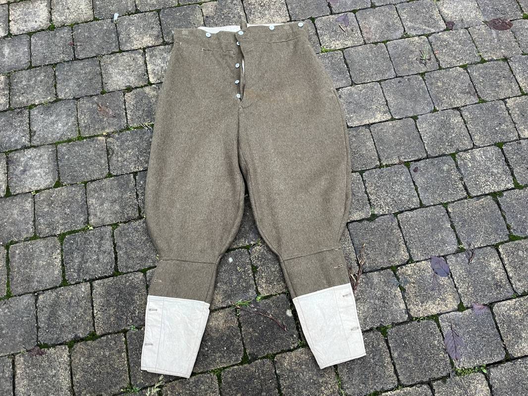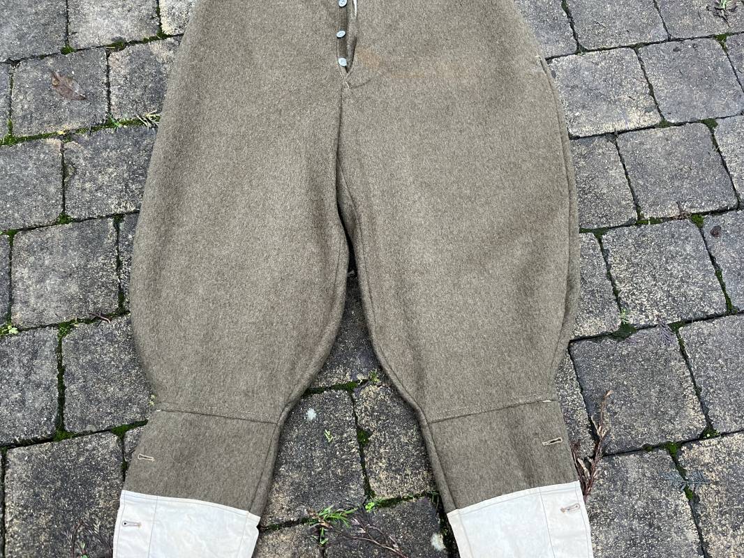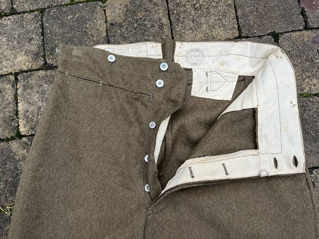 Rare pantalon culotte modéle 1915/27 des troupes à pied d Afrique . Culotte de dotation en drap kaki . Deux poches latérales et poche a gousset . De forme droite sur les cotés et les coutures d entre jambe et arrondie au niveau des manchettes . Manchettes en toile de coton blanc avec fermeture a 3 boutons . Deux boutons de ceinture et trois de bragettes , crochet metallique d ebraguette . Boutons alu equipements militaires cousus d 'origine . Martingale dans le dos . Boutons de bretelles . Aucun passant de ceinturon ( particulier a la culotte d afrique ) Intérieur doublé en coton blanc . Tampon rond fabricant a lyon . Taile 96 L Tampon oval de réception daté 24 06 1935 . Taille 46 Longueur 110 cm . Drap trés frais cette culotte est en superbe état . Uniforme définitif en colection . Rare culotte de tirailleur en 1935/40 Peu courant Ref 21230