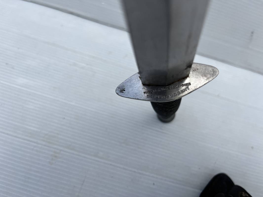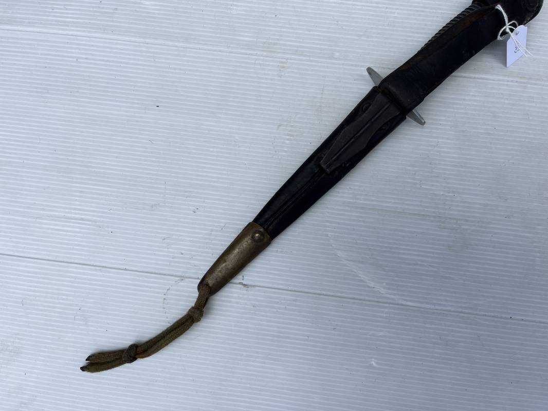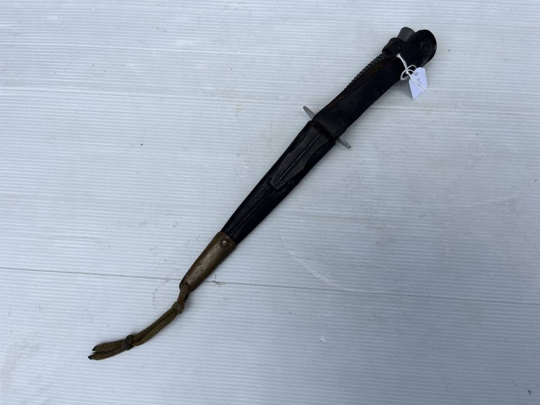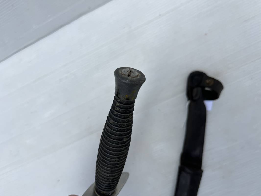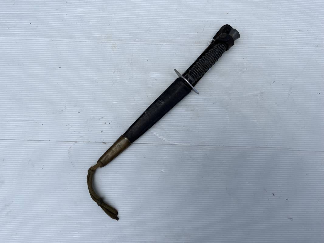 Rare dague 'commando' parachutiste copié sur le modéle Britannique Fairbairn SyKe . Dague de production francaise ' Le commando' Inox Marque et modéle deposé Super NOGENT . Marquage sur la garde acier . Poignée en metal cannelé . Lame en acier Fourreau en cuir marron avec passant de ceinturon , lanière en cuir et pression . Passant metallique a ressort pour le port au ceinturon . Lacet en sunspente de parachute . Beau poignard commando parachutiste en pafait état . 100 % dans son jus et intouché . Ref 21363
