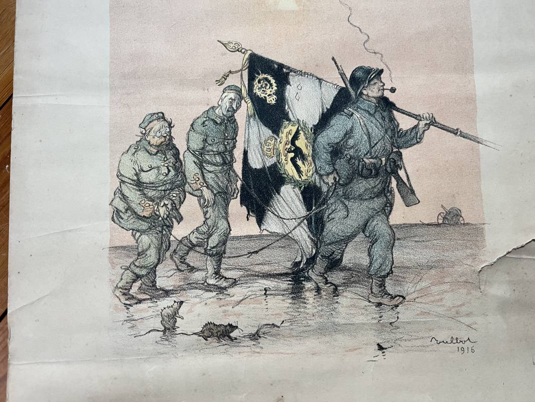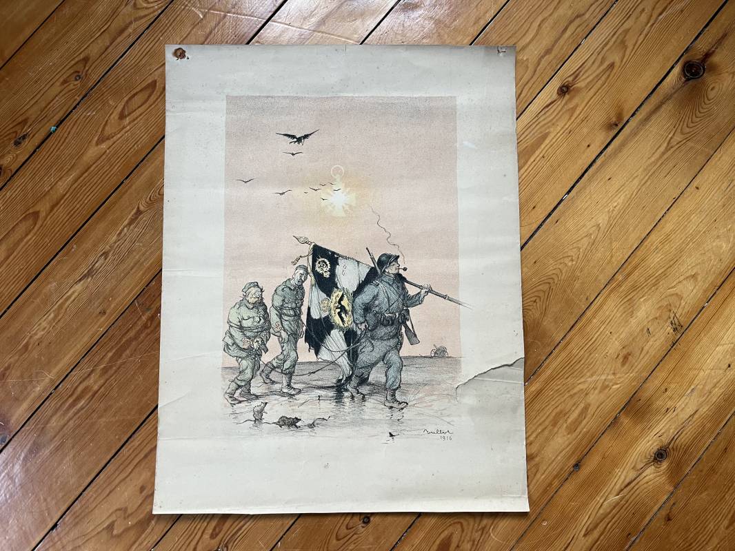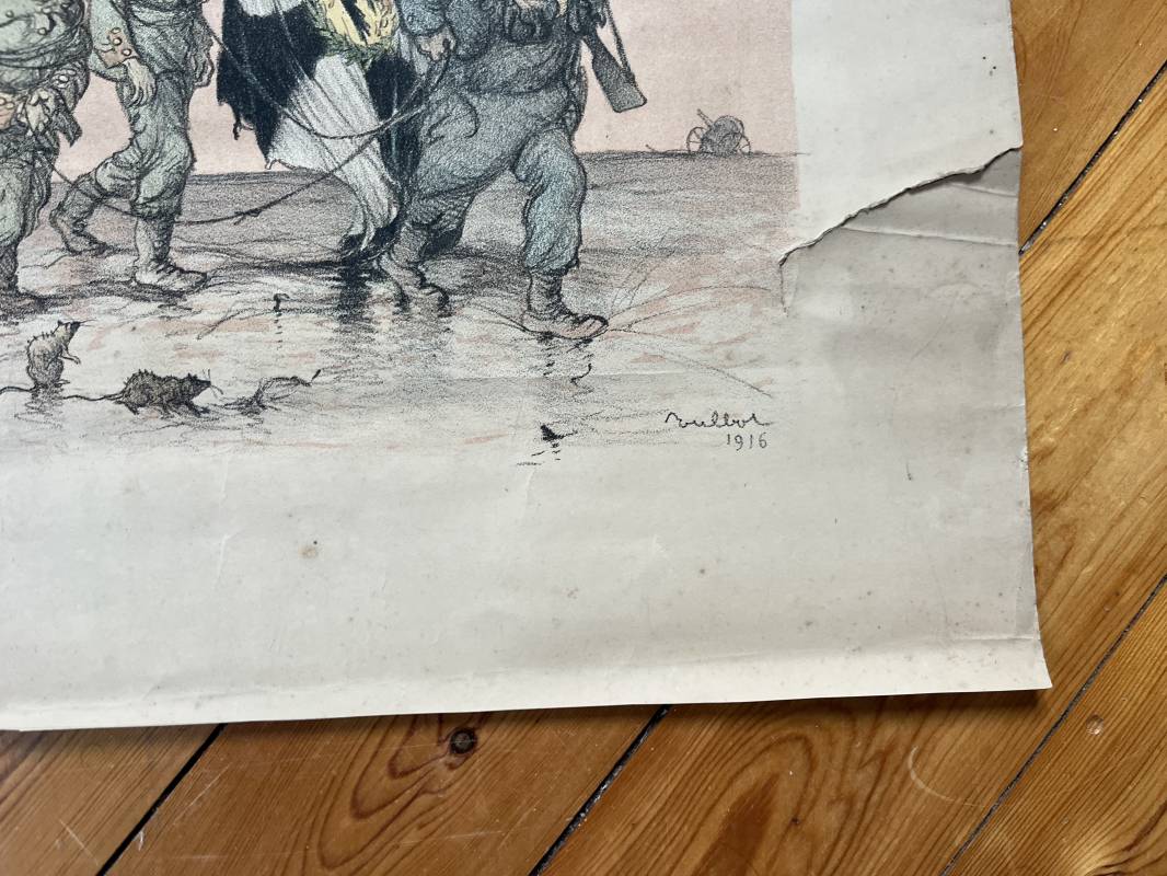 Dessin patriotique de Poulbot 1916 Papier cartonné . A noté une dechirure Dimensions 38X49 cm Ref 11878