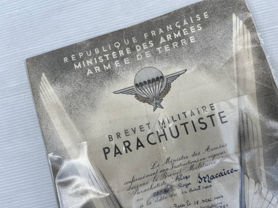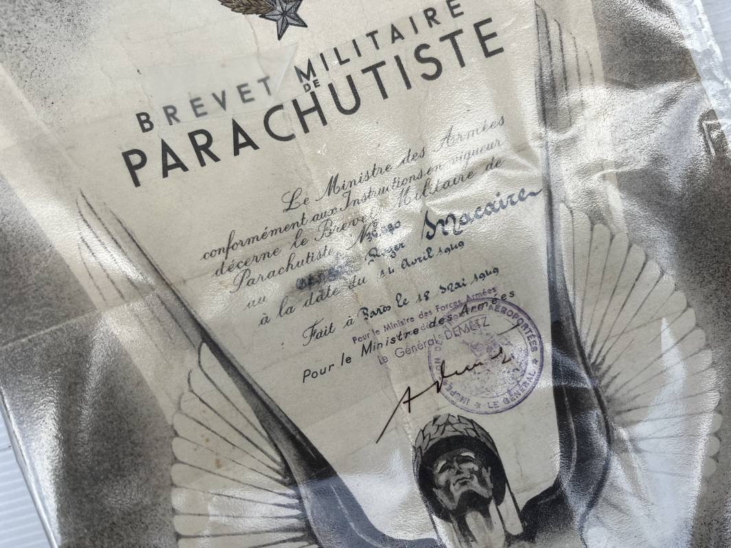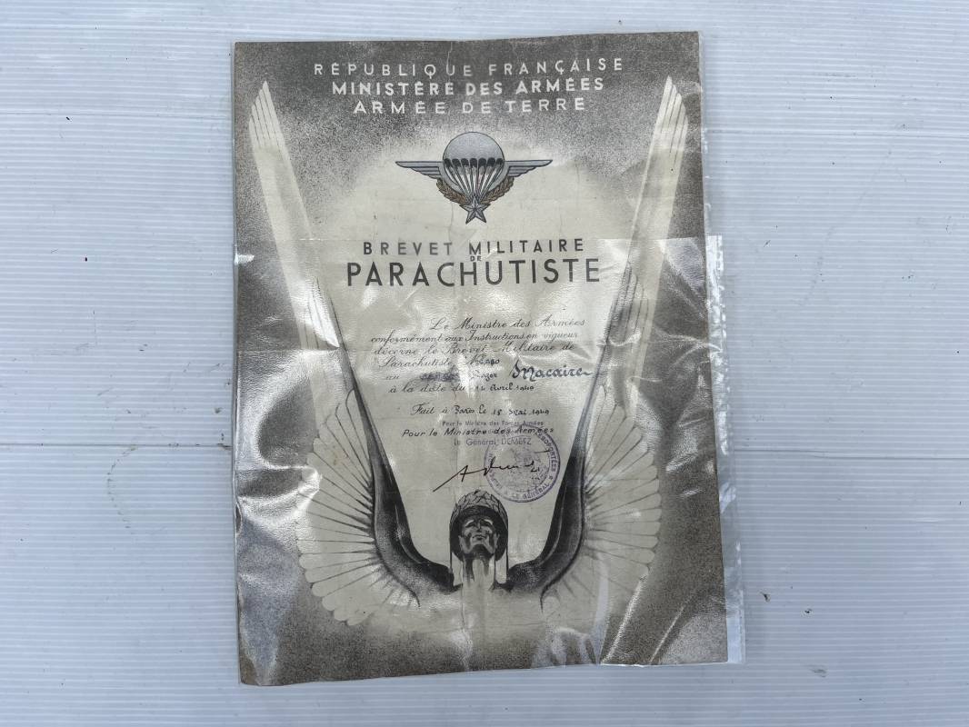 Diplome du brevet militaire parachustiste du caporal Roger Macaire daté du 14 Avril 1949 . Dilpome en papier cartonné dimensions 315 X 238 mm Signé du général Demetz . A noté le grade du diplome a été lègèrement effacé ( voir photo ) Bon diplome précoce d'un parachutiste francais Bon état . Ref 21415
