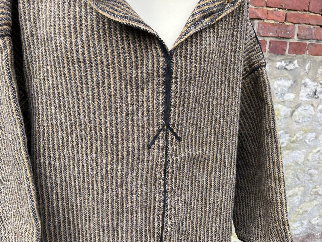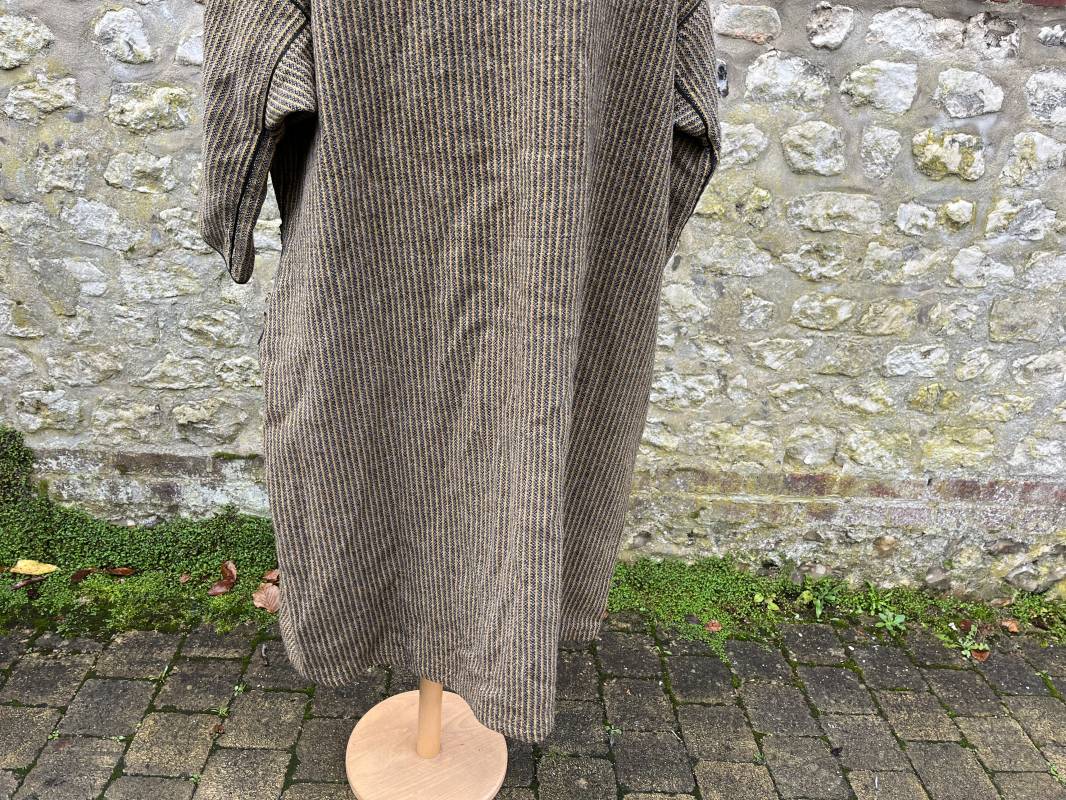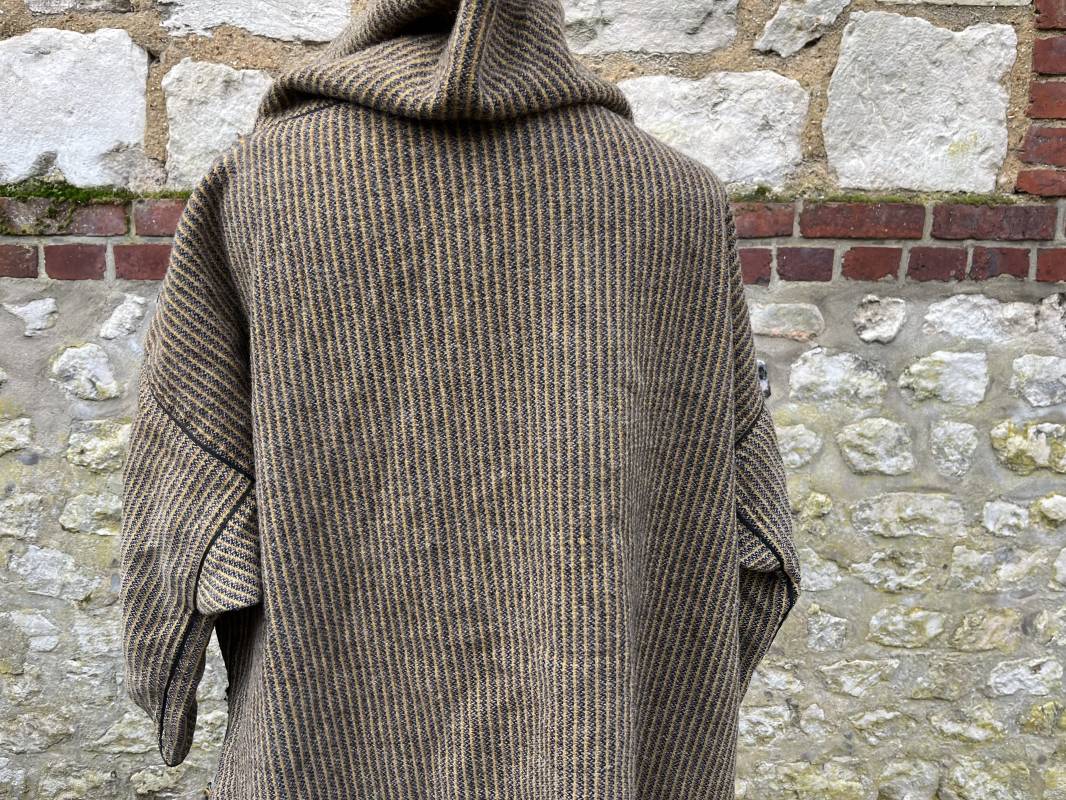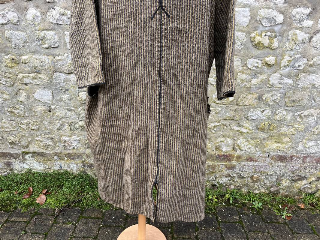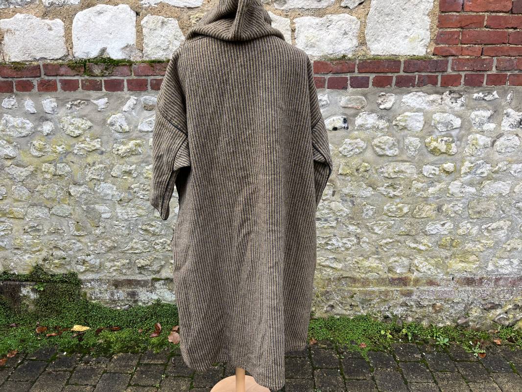 Rare Djellaba modéle 1943 en laine épaisse marron chiné . Djellaba de dotation des troupes d Afrique . Modéle dit 'muraille' . Large capuche , Djellaba typique de l annee 1944 et des combats de la libération . Porté en tres bel état . A noté les deux poches latérales agrandies d origine par le soldat pour acces de poches du pantalon . Rare uniforme typique des goumiers et tirailleurs en 1944/45 Ref 21635