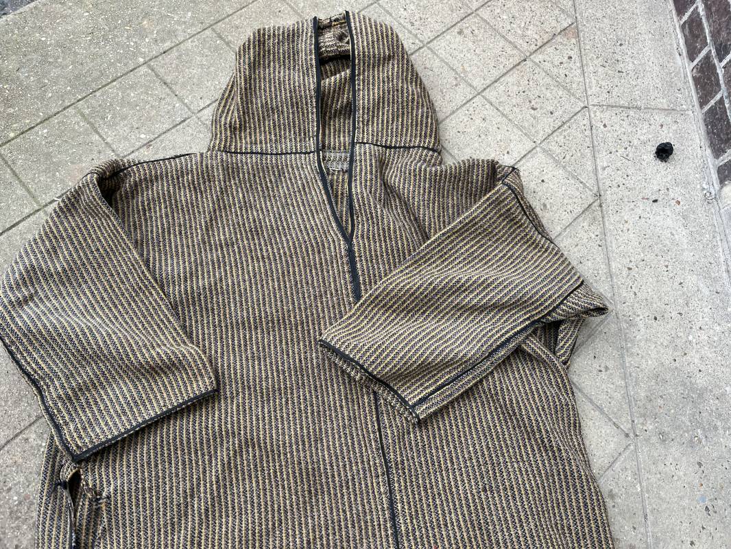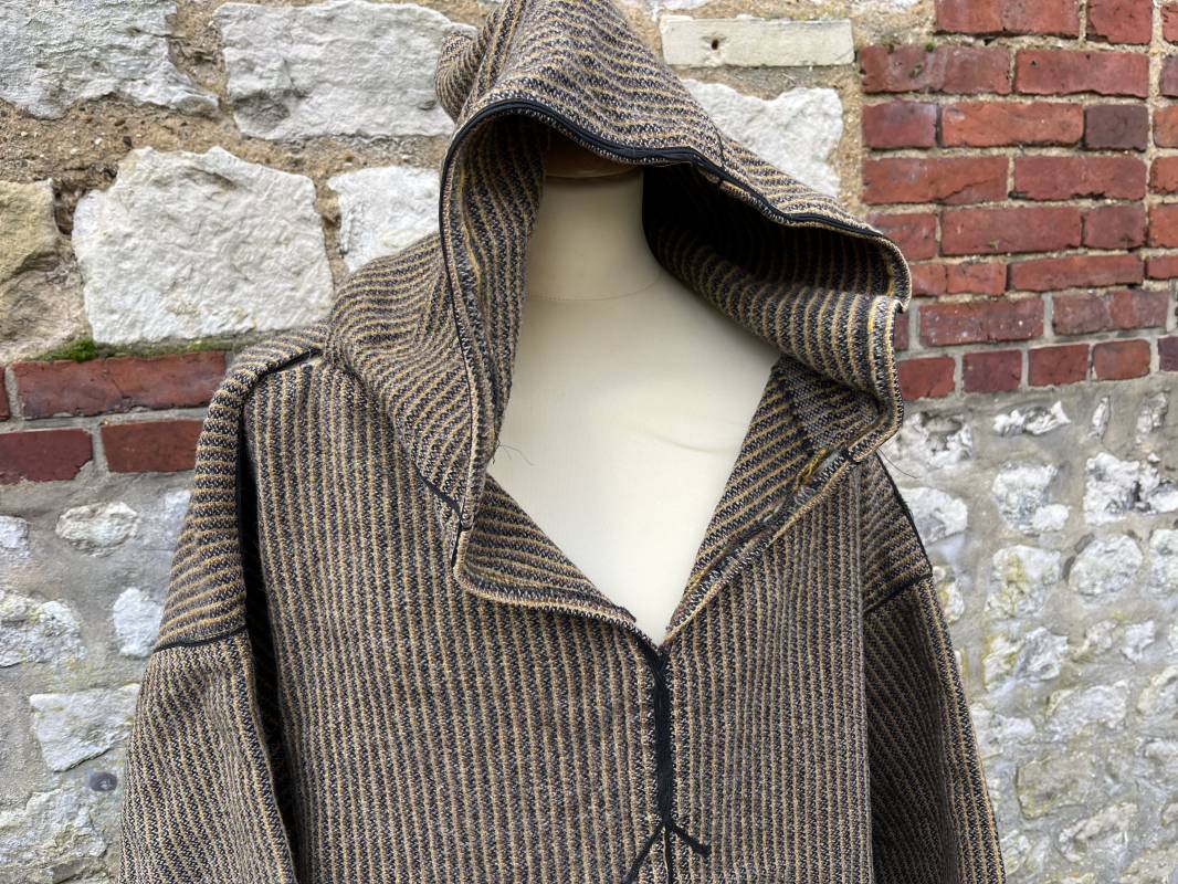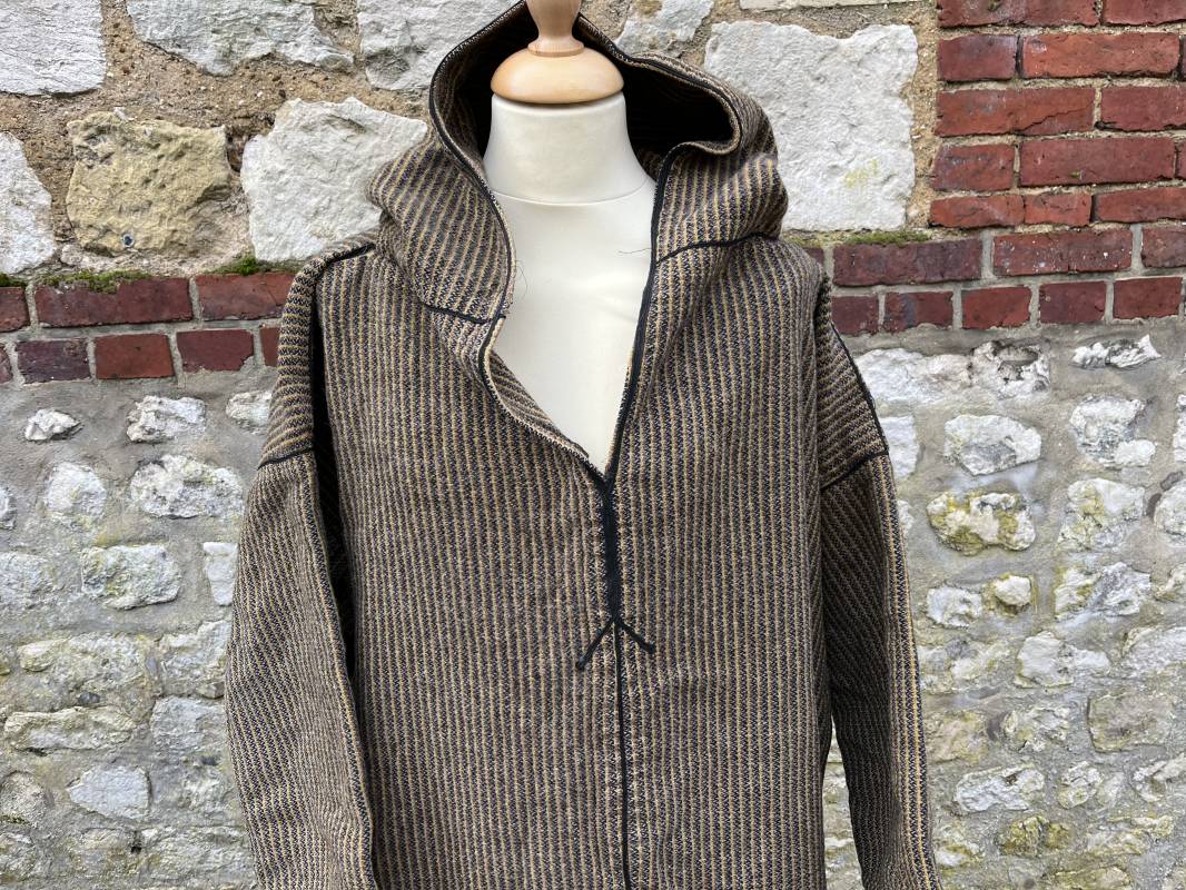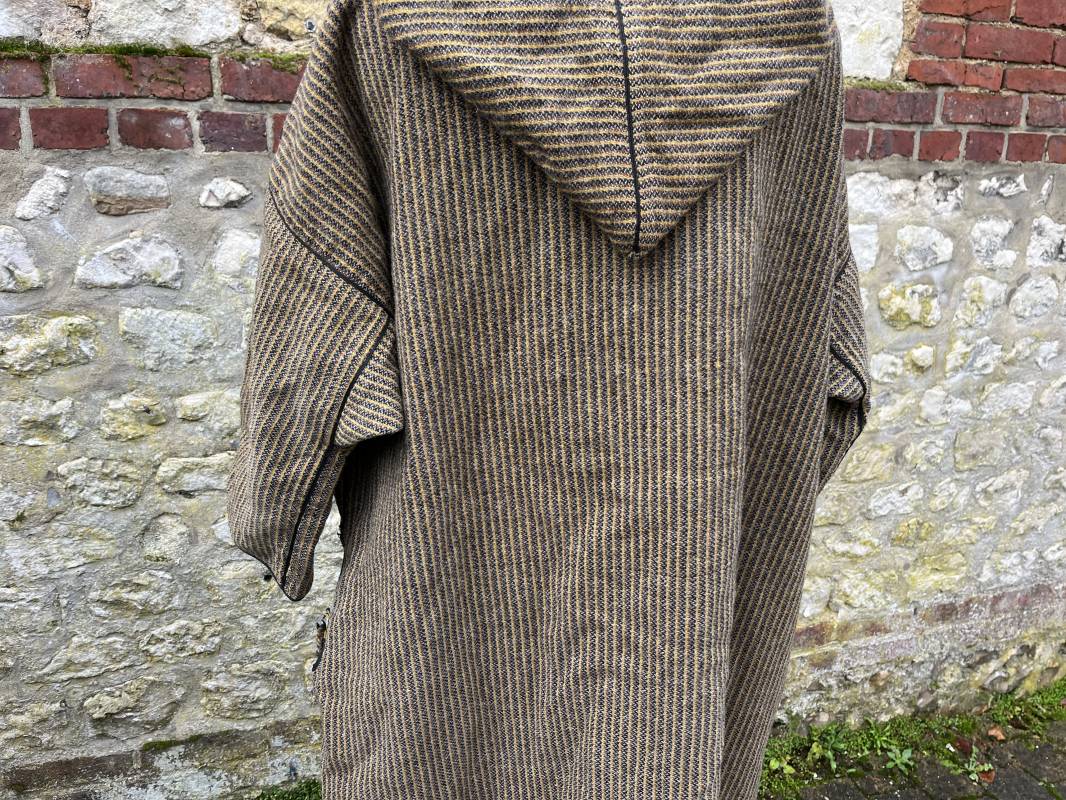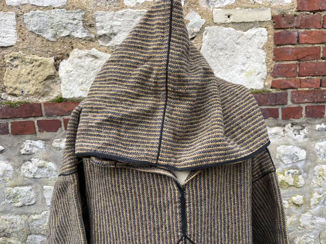 Rare Djellaba modéle 1943 en laine épaisse marron chiné . Djellaba de dotation des troupes d Afrique . Modéle dit 'muraille' . Large capuche , Djellaba typique de l annee 1944 et des combats de la libération . Porté en tres bel état . A noté les deux poches latérales agrandies d origine par le soldat pour acces de poches du pantalon . Rare uniforme typique des goumiers et tirailleurs en 1944/45 Ref 21635