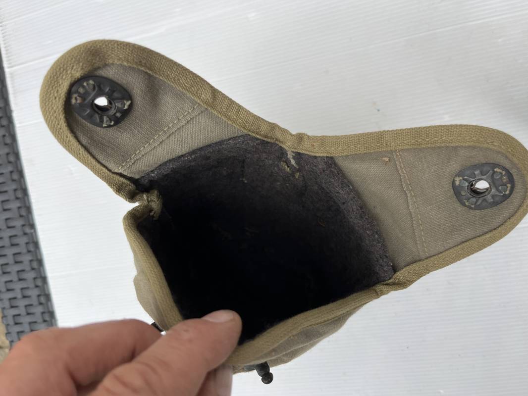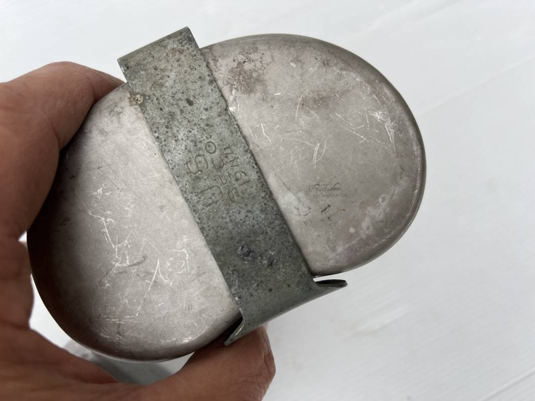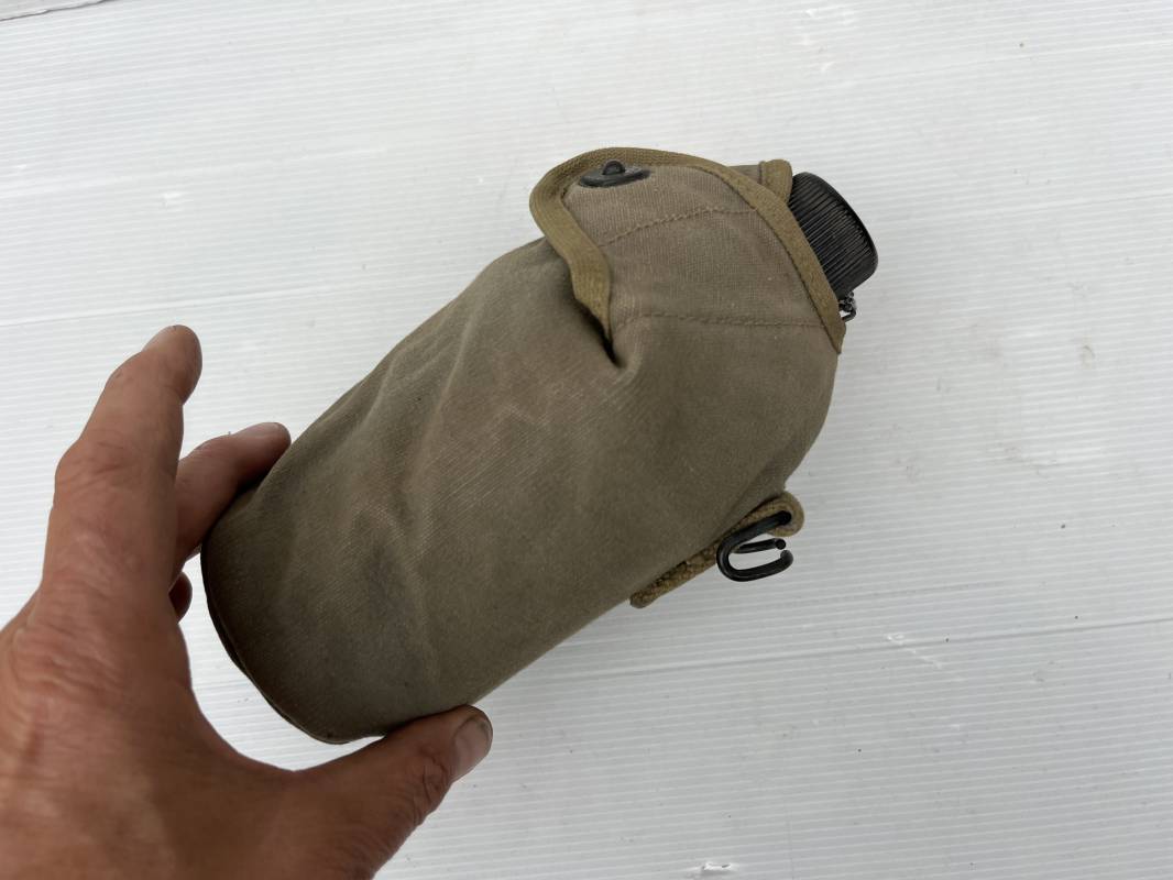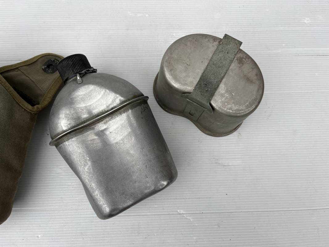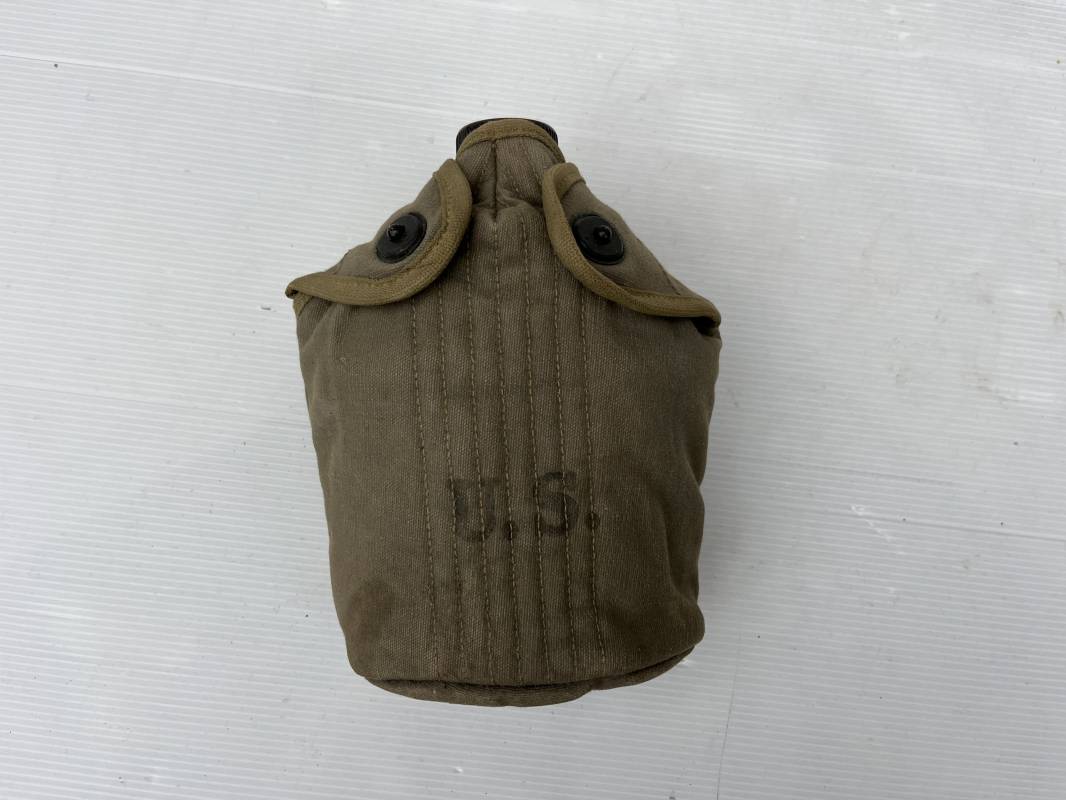 Gourde individuelle modèle 1910 avec bidon et quart. Housse en toile olive drab. Housse doublée en déchets de laine.Marquage us ET FABRICANT Jeff QMD 1942 Boutons pressions. Bidon modèle 1910 en alu. Bouchon plastique et chainette marquage fabricant US Swanson 1944 . Quart individuel et bidon marquage fabricant us beco daté 1944. Légèrement utilisé en parfait état 1942/44. Ref 20008