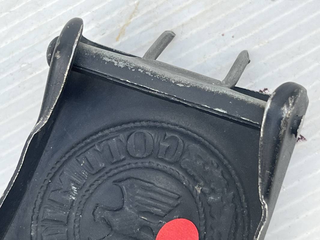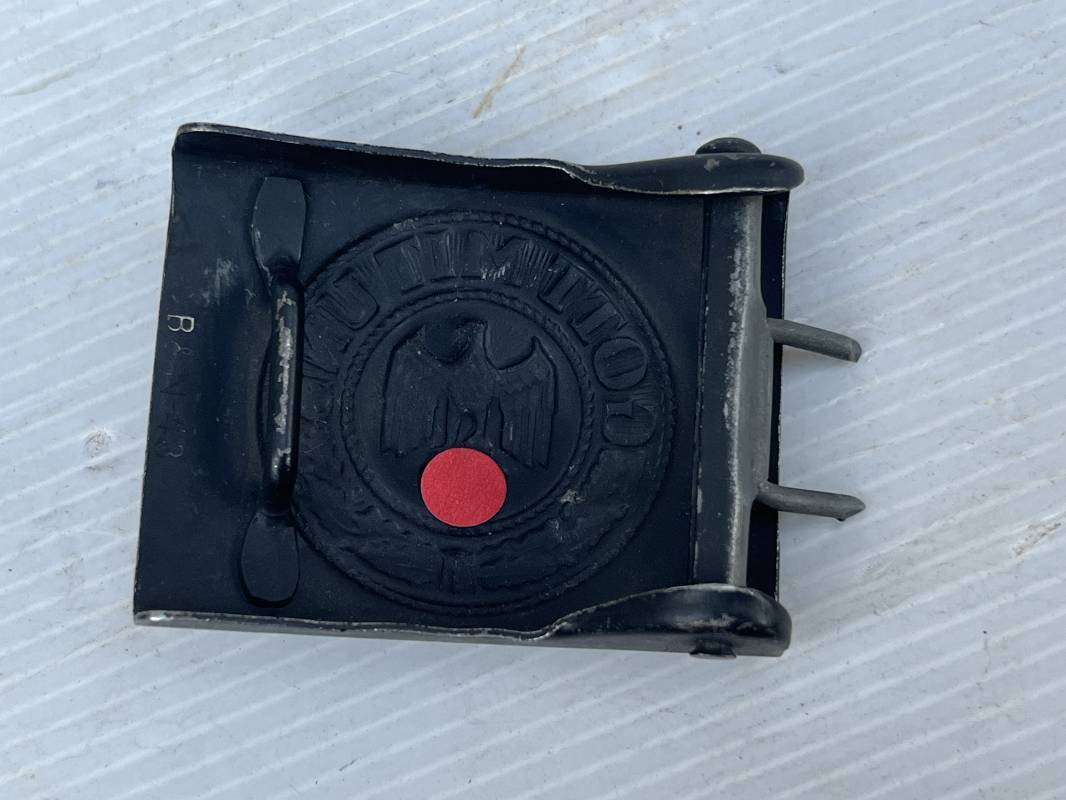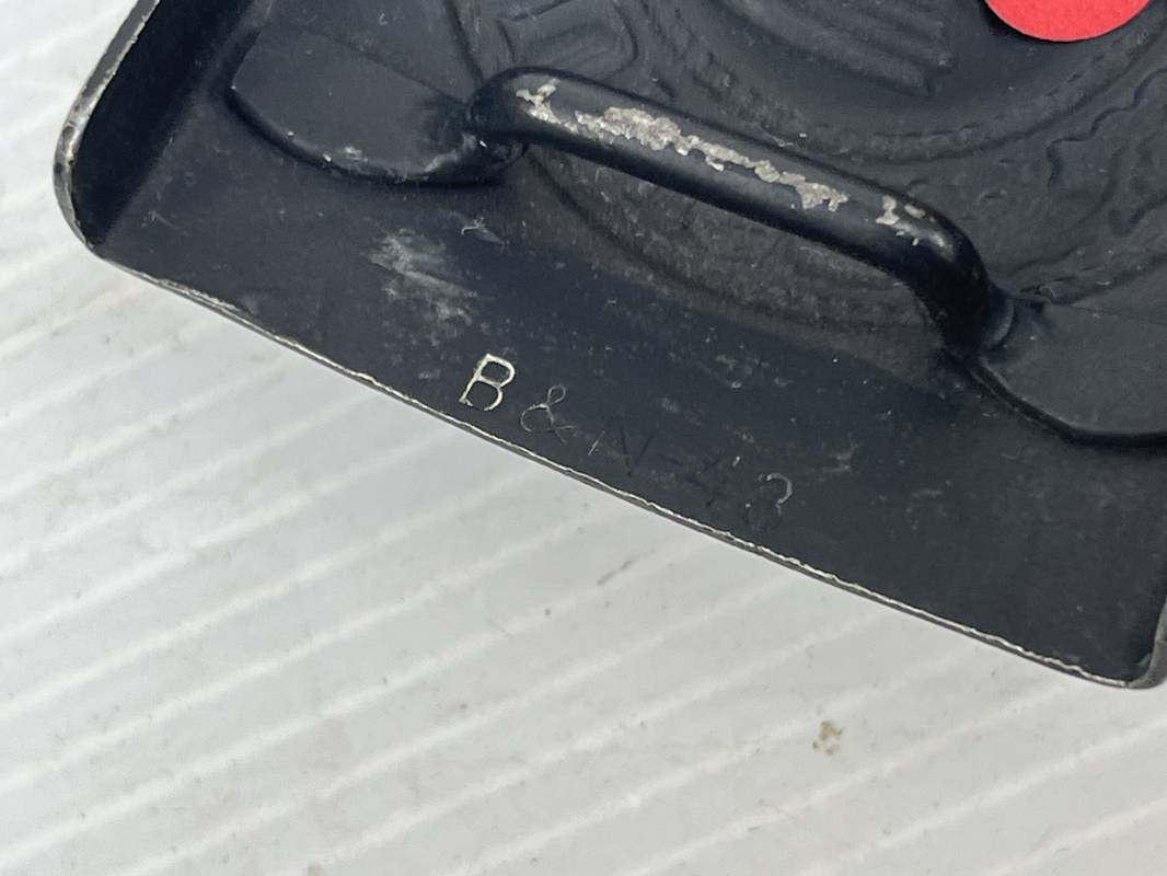 Tres belle boucle troupe fer modele 1943 . Peinture grise modele 1943 d usinage . Modele Sans patelette cuir ( fabrication apres 1943) . Marquage fabricant au dos Berg und Nolte 1943 . Passant et crochet étallique . Portée en parfait état 1943/45 Ref 21743