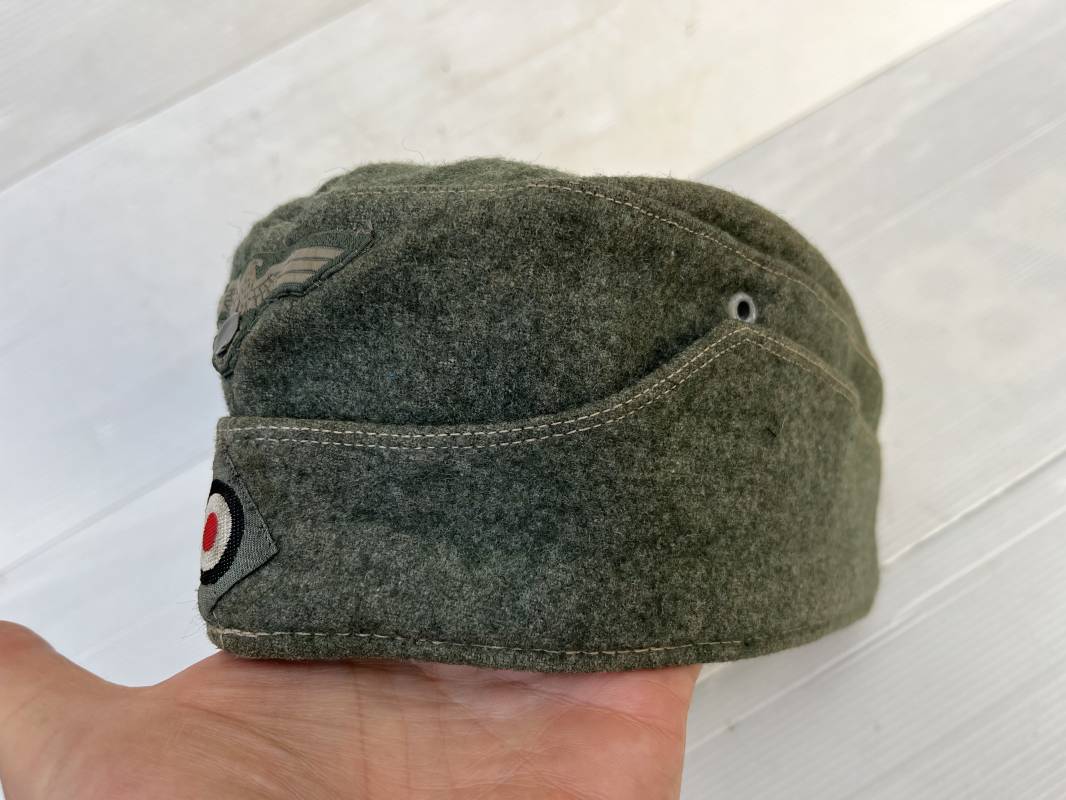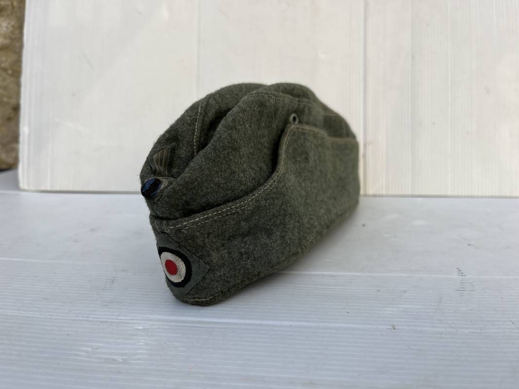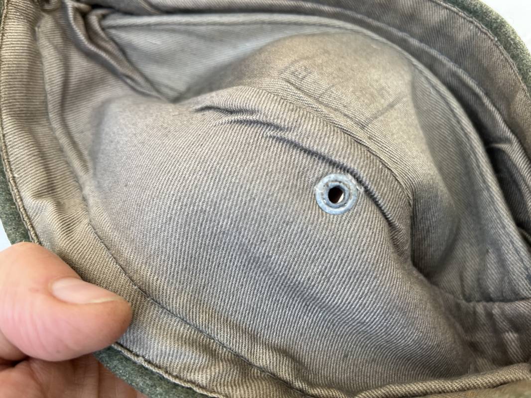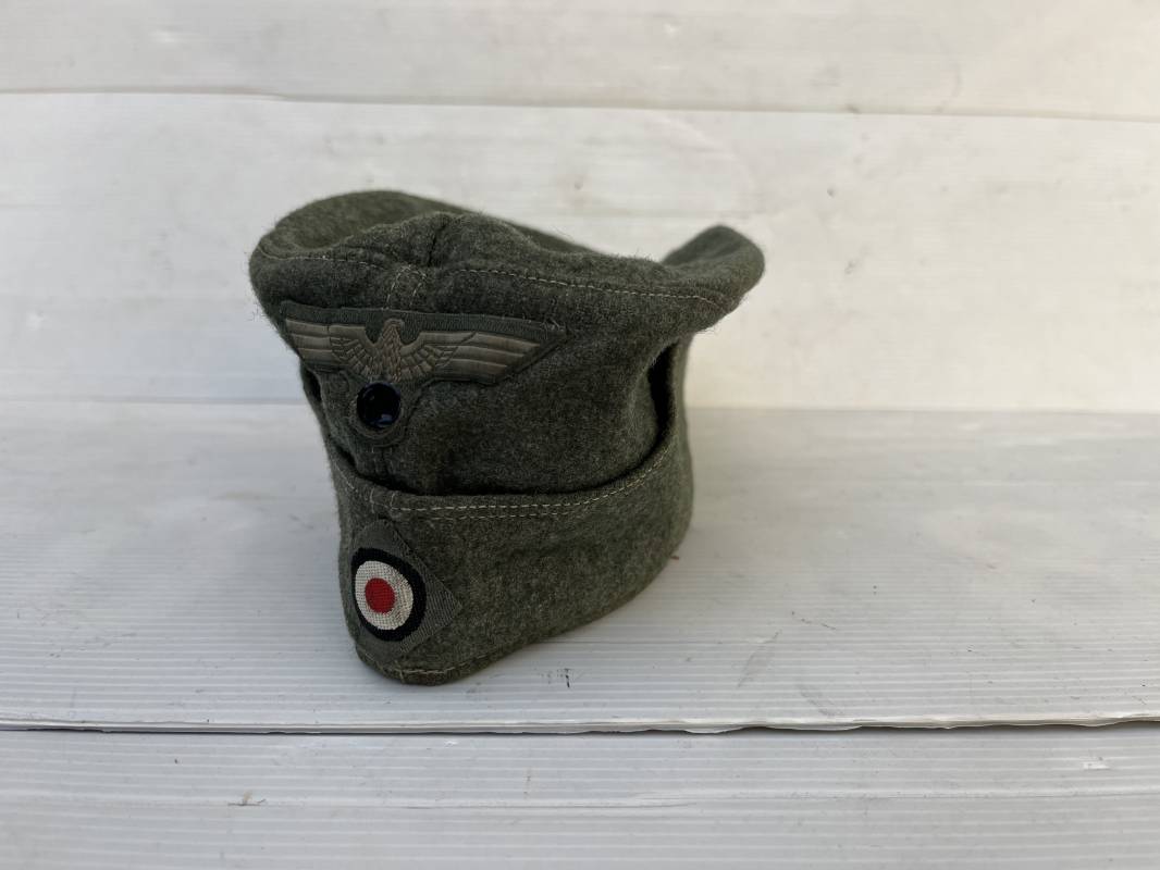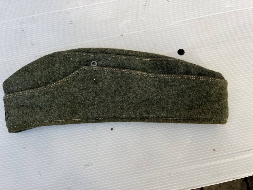 Trés beau calot troupe modéle 1934 de la Heer . Calot toute arme sans soutache de dotation en drap feldgrau . Ce calot est en superbe état et monté d'origine . Rabat en drap . Oeillets de ventilation en zinc . Insignes tissés bevo cousus sur le devant ; aigle et cocarde modéle 1940 .Intérieur entièrement doublé en coton gris . Marquage fabricant daté 1941 . Taille 56 . Calot trés légérement porté en superbe état . 1940/42 REF 21606