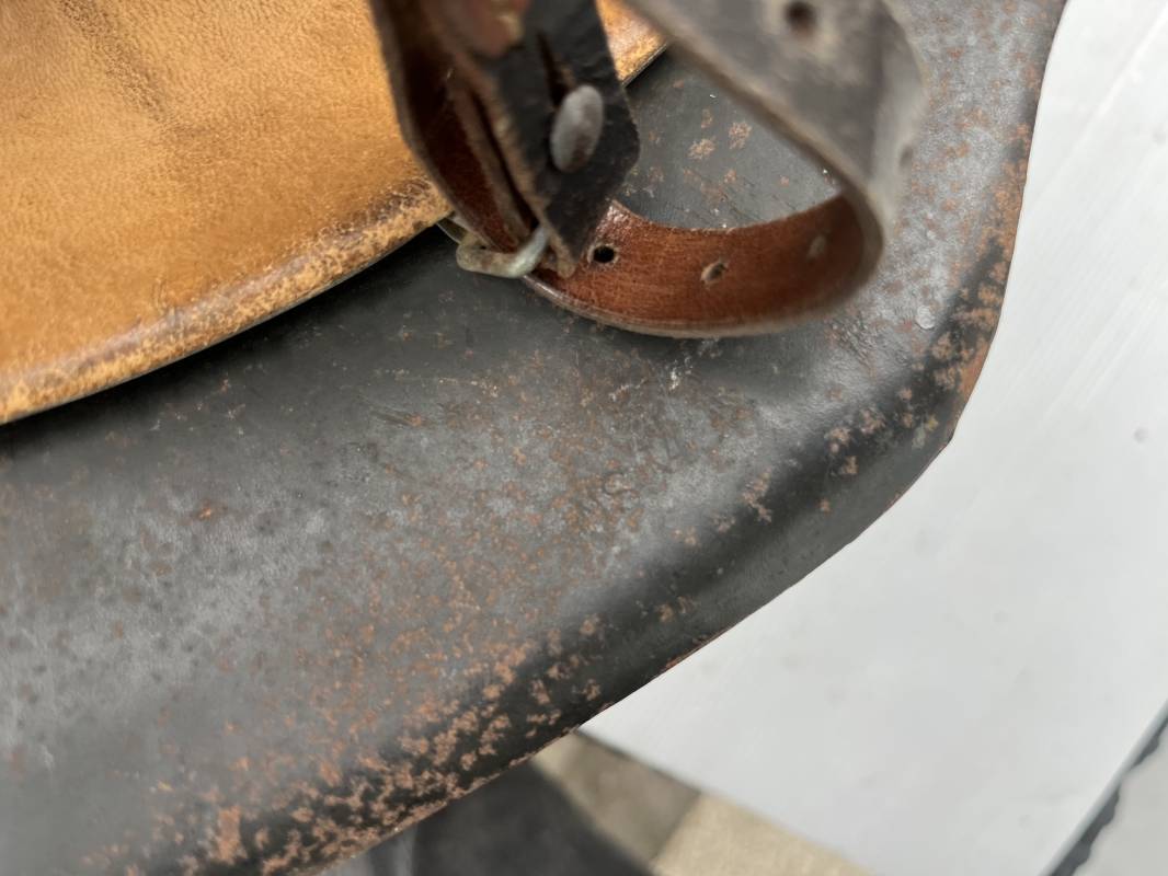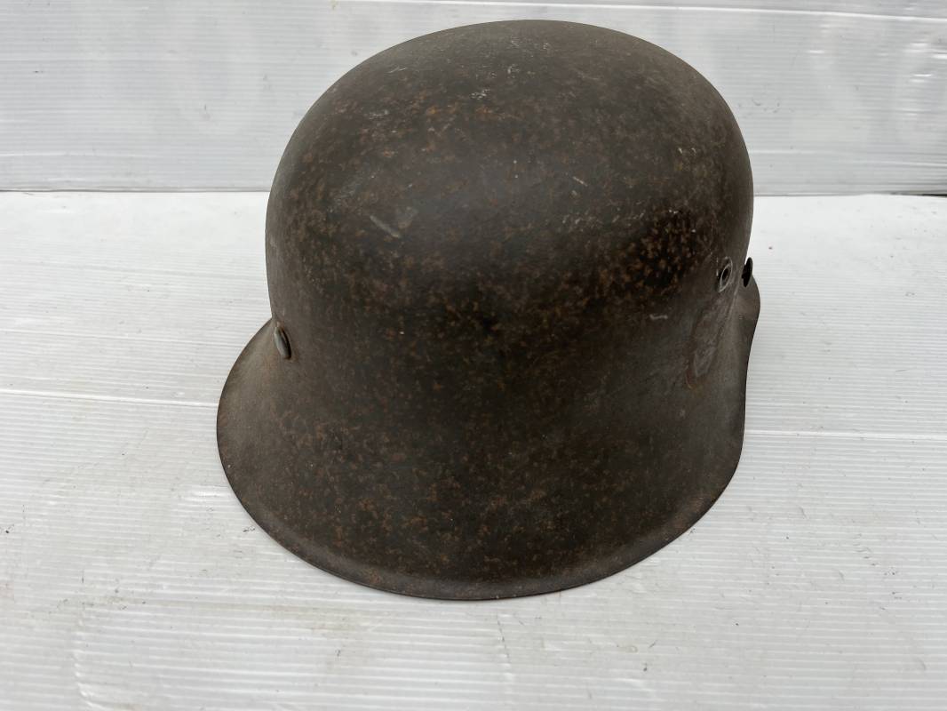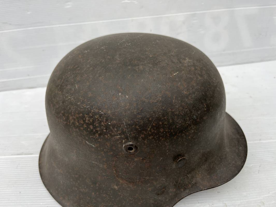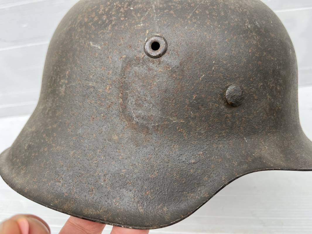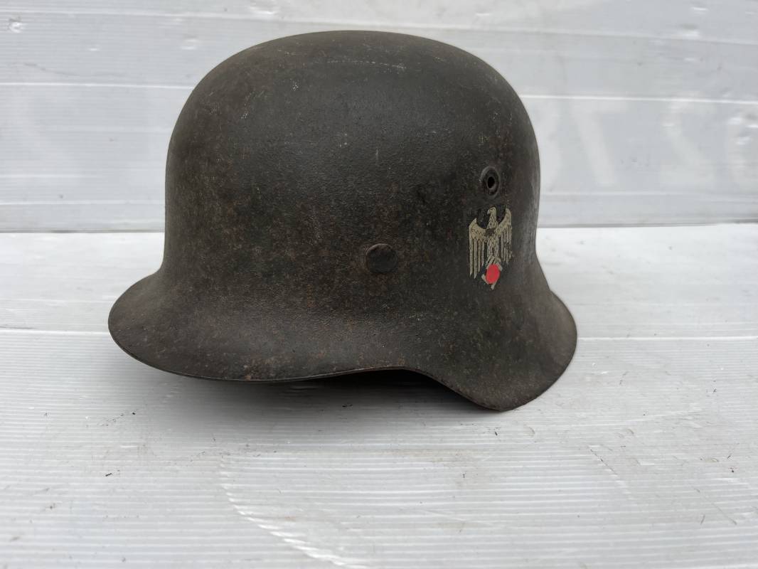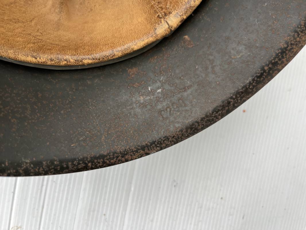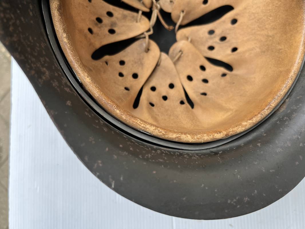 Trés beau casque modéle 1942 de la Heer . Casque avec insigne a 95 % . Belle peinture grise d'usinage . Marquage fabricant NS64 Nuquière L 290 . Trés belle peinture non frottée . Casque non nettoyé ni démonté . Coiffe intérieure en cuir fauve non ciré . Cuir souple . Lacet en coton d'origine . Taille 57 . Cerclage en zinc . Rivets fixés d'origine . Jugulaire en cuir noir retourné , boucle fer . Marquage code fabricant Rbnr Treize trous . Trés beau casque trouvé a Pont l évèque ( 14 ) il y a 40 ans . Piéce définitive dans une collection . 1943/44 Ref 21593