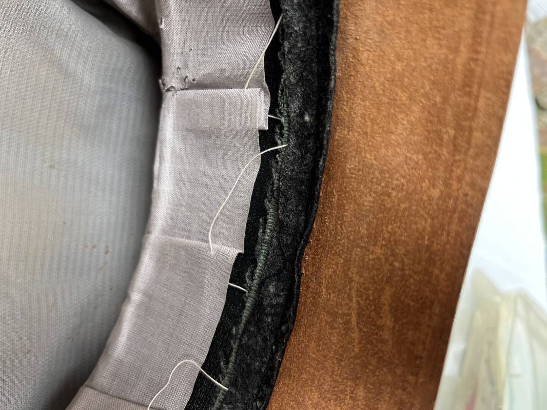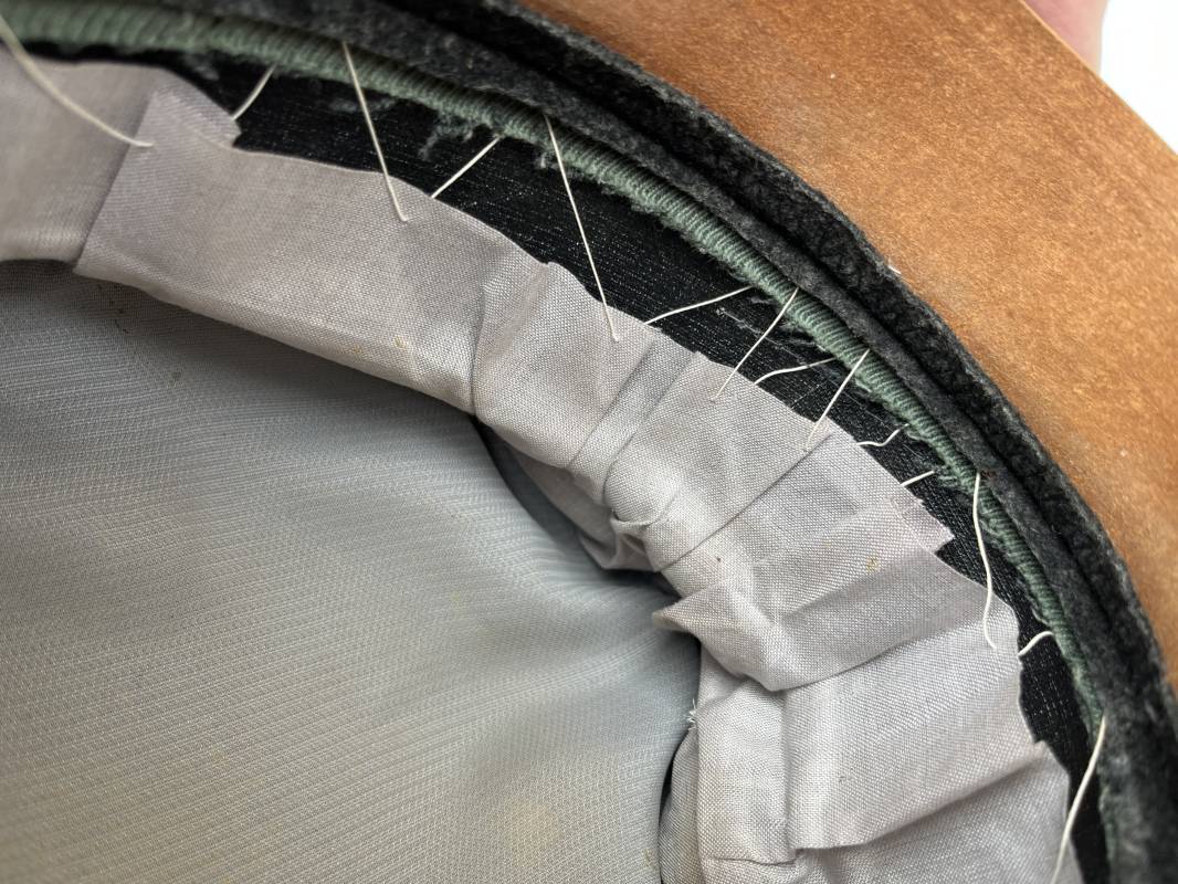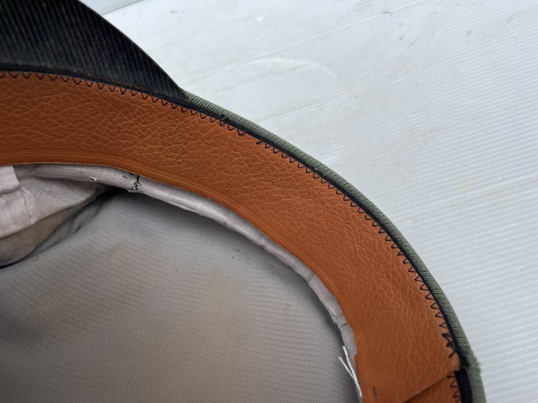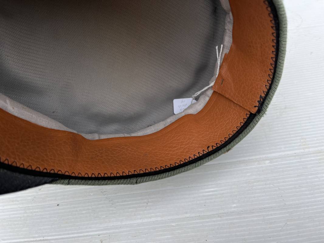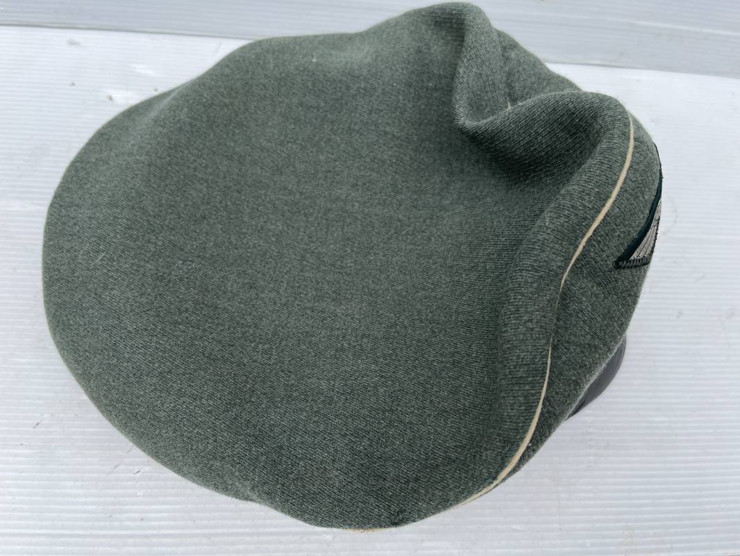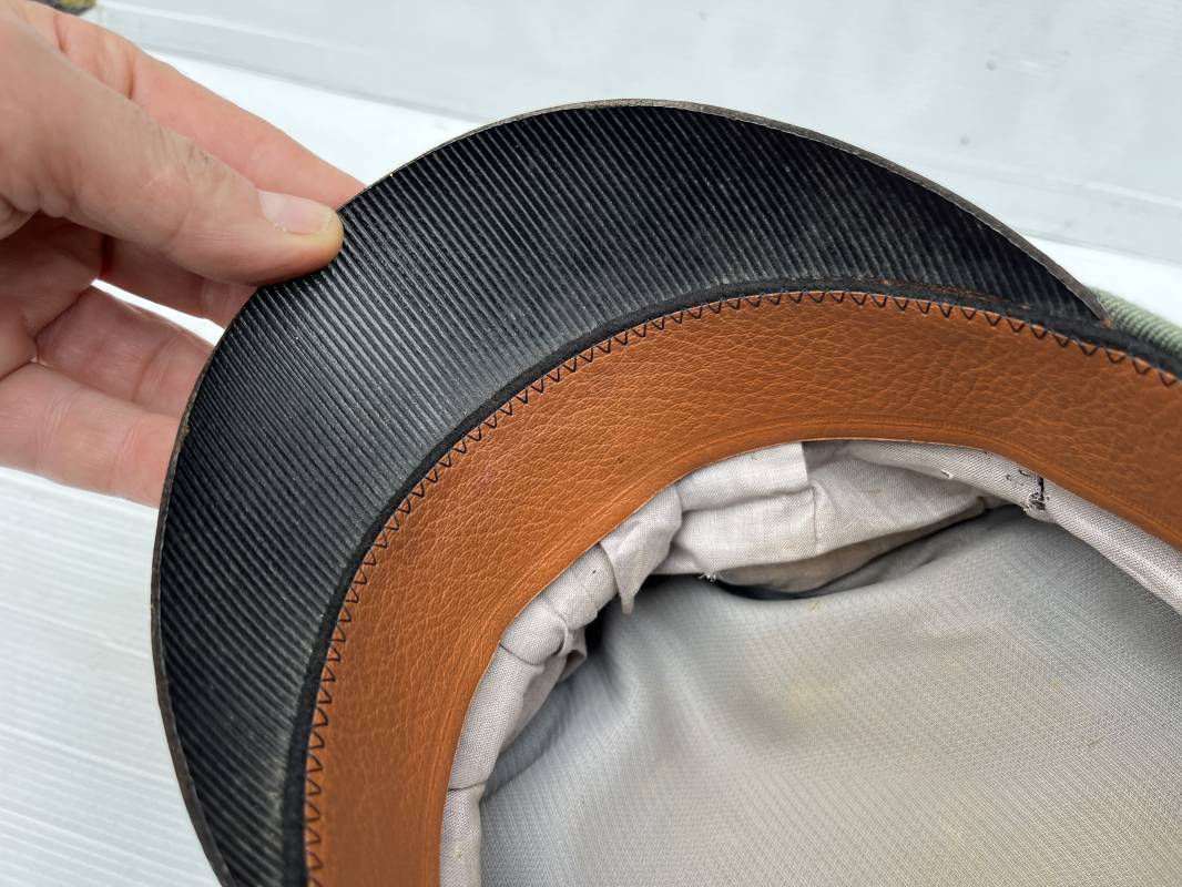 Rare casquette d'un officier de l'infanterie en tenue de campagne . Casquette du modèle 'Alter Art' . Casquette en tricotine fine feldgrau , liseré blanc de l'infanterie . Bandeau de coiffe extérieur souple en drap vert foncé . Belle forme cassée . Insignes montés d'origine a la machine du modéle tissés bevo pour officier . Aigle et cocarde tissés en fil d'aluminium . Cocarde montée machine , aigle monté machine zig zag . Visière souple en cuir noir . Casquette doublée en satinette grise , Bandeau de coiffe intérieur en cuir marron clair et petit velours noir sur le pourtour typique de chez 'Pekuro s ' Taille 57 . Casquette légèrement portée en parfait état . Trés belle coiffure de combat d'un officier de l'infanterie . Trés belle coiffure , définitive en collection . 1939/45 Ref 18076