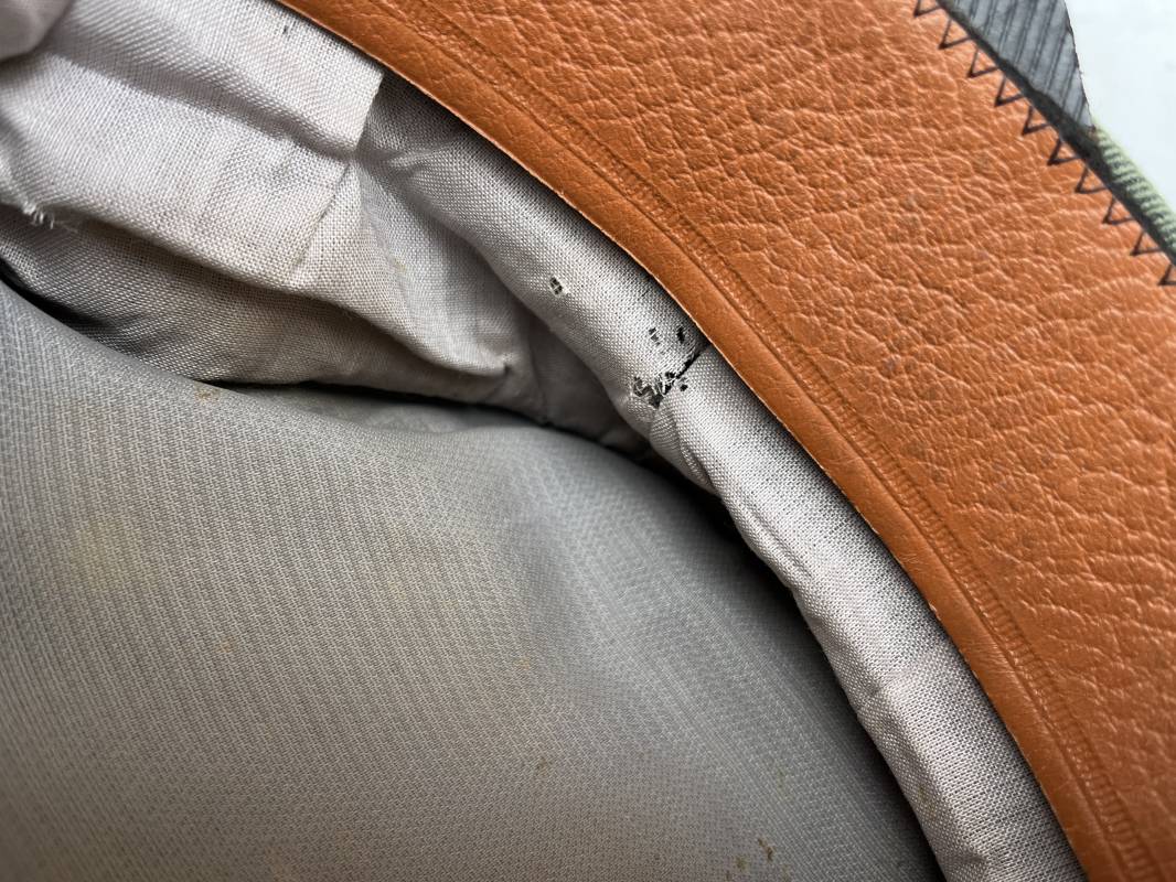 Rare casquette d'un officier de l'infanterie en tenue de campagne . Casquette du modèle 'Alter Art' . Casquette en tricotine fine feldgrau , liseré blanc de l'infanterie . Bandeau de coiffe extérieur souple en drap vert foncé . Belle forme cassée . Insignes montés d'origine a la machine du modéle tissés bevo pour officier . Aigle et cocarde tissés en fil d'aluminium . Cocarde montée machine , aigle monté machine zig zag . Visière souple en cuir noir . Casquette doublée en satinette grise , Bandeau de coiffe intérieur en cuir marron clair et petit velours noir sur le pourtour typique de chez 'Pekuro s ' Taille 57 . Casquette légèrement portée en parfait état . Trés belle coiffure de combat d'un officier de l'infanterie . Trés belle coiffure , définitive en collection . 1939/45 Ref 18076