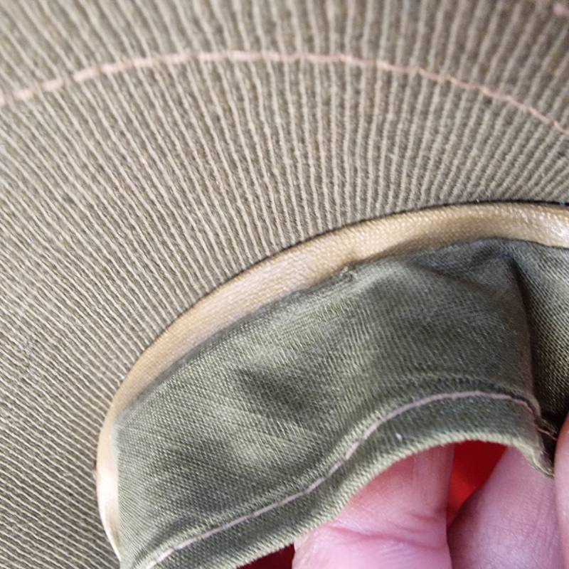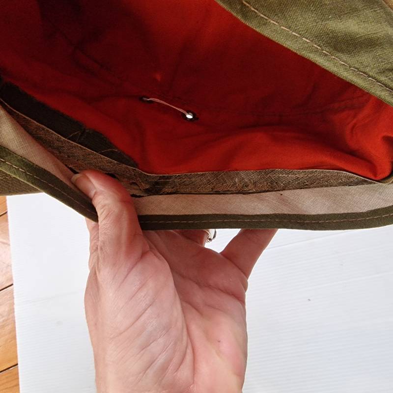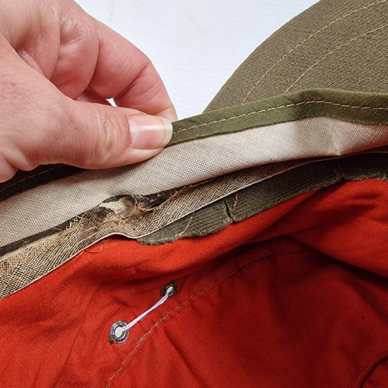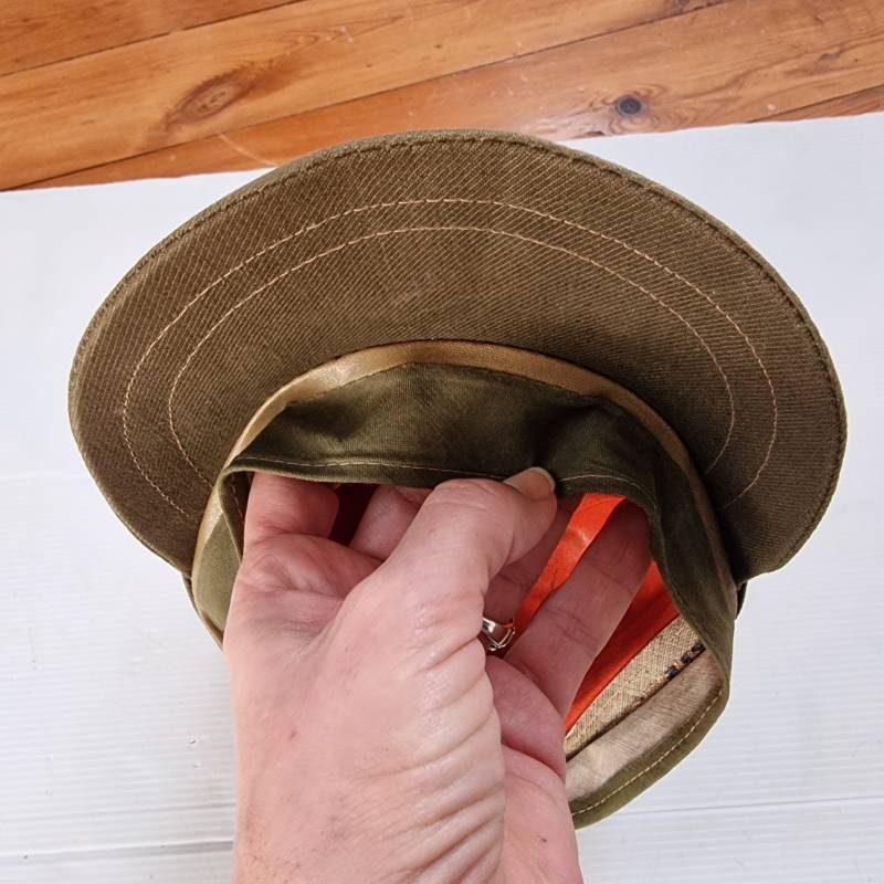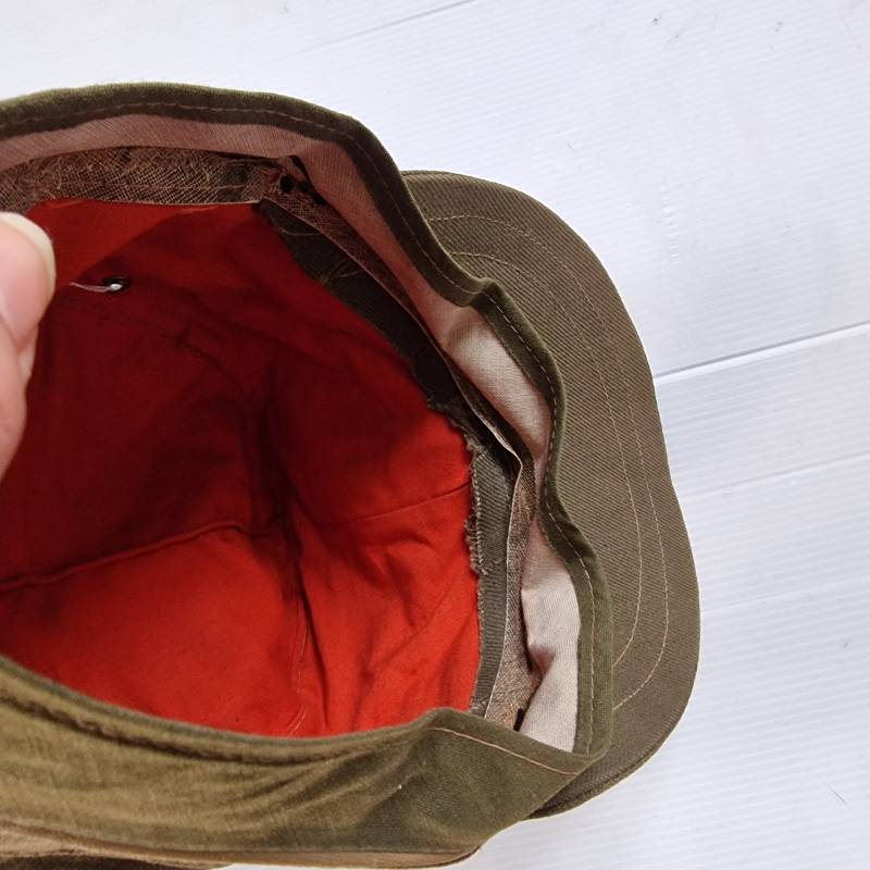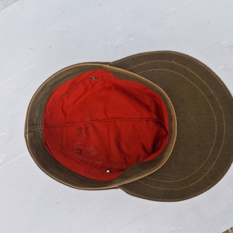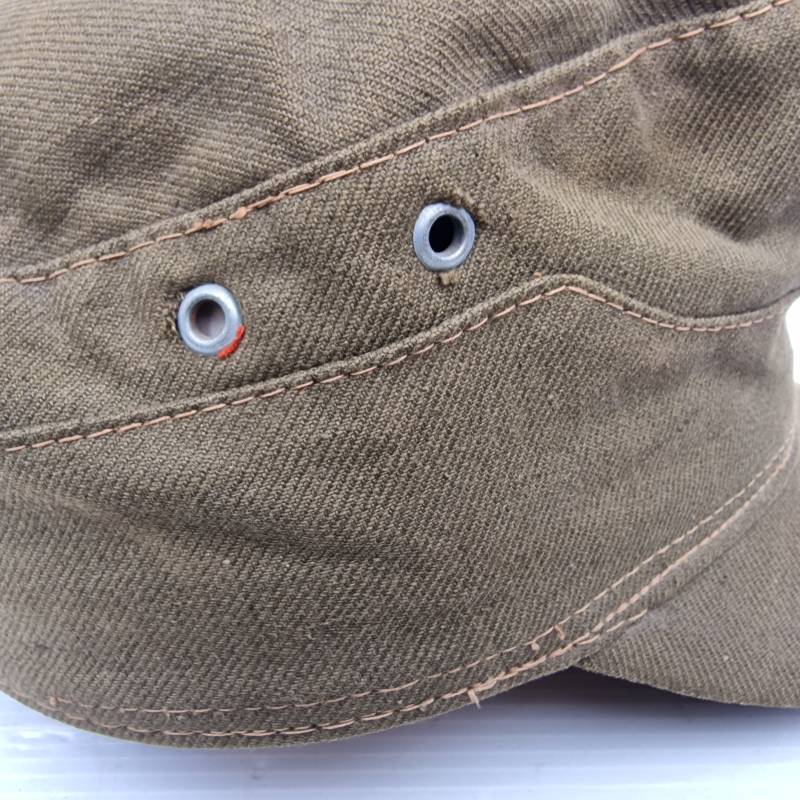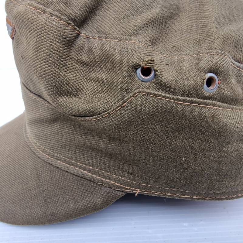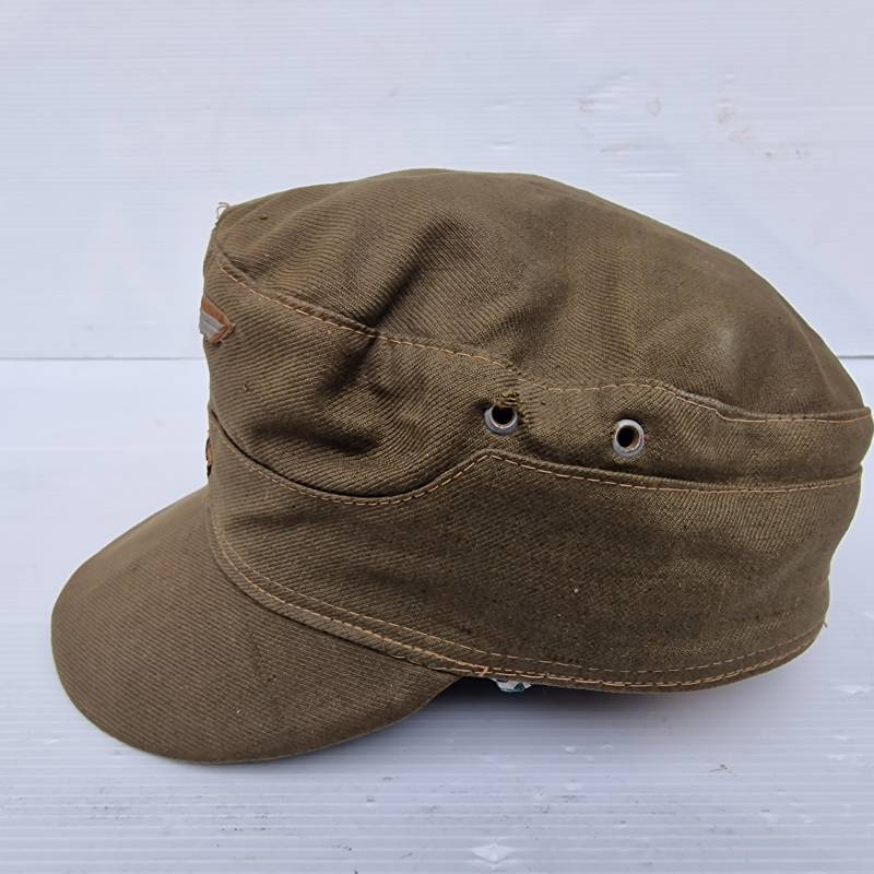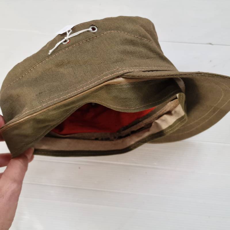 Rare casquette Tropicale modèle 1940 de la Heer. Casquette en toile vert olive dans un état de conservation exceptionnel . . Insignes aigle et cocarde tissés bévo montés d'origine . Quatre oeillets de ventilation en zinc . Visière recouverte en toile. Instèrieur doublé en toile de coton rouge. Marquage fabricant Code Rbnr 1943 taille 55. Bandeau de coiffe intèrieur en toile de coton vert et toile enduite jaune . Pourtour de coiffe en toile cirée. Casquette dans un état quasi neuf , 100% dans son jus. Casquette sans aucun défaut et définitive en collection . Rare coiffe de l'Afrika Korps 1941/43. Ref 19323