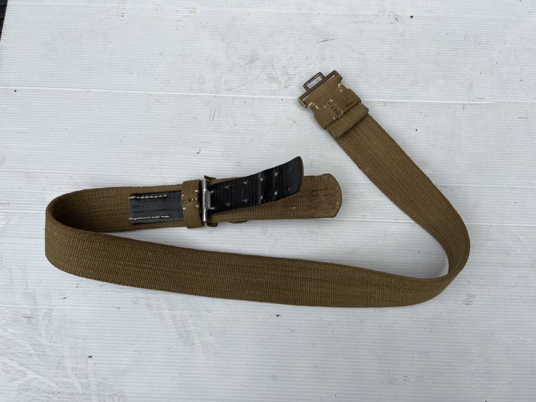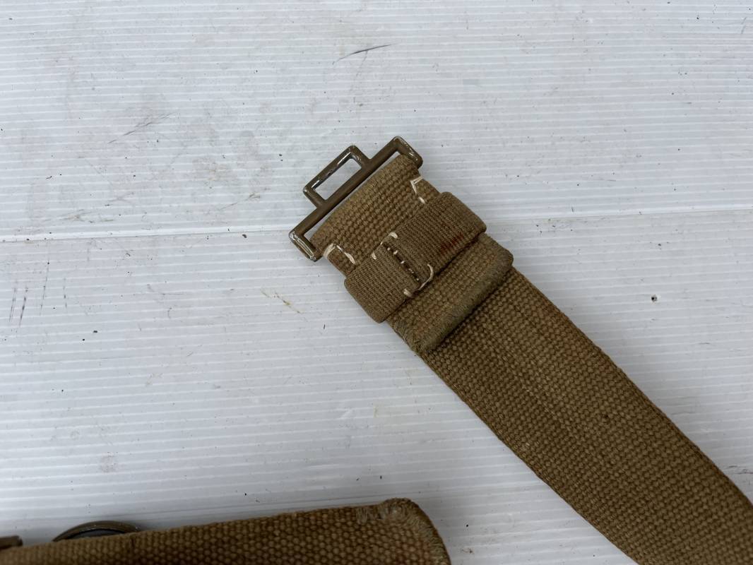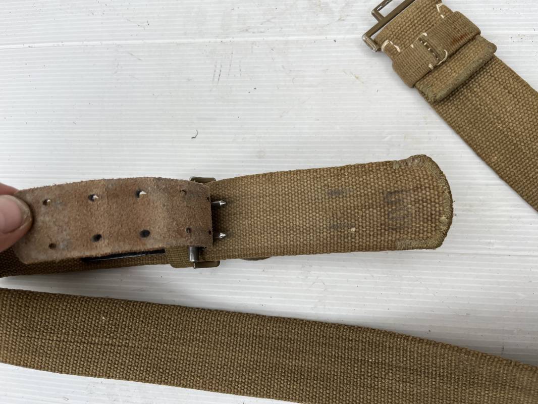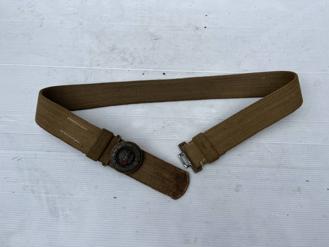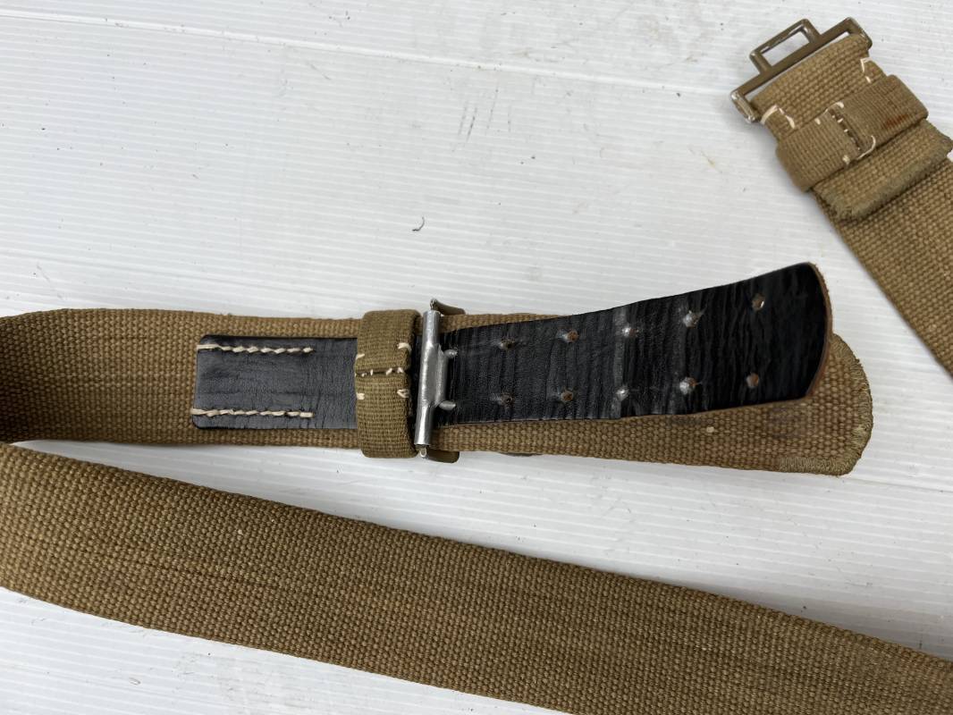 Rare ceinturon tropical d'un officier de la Heer . Boucle ronde ( Feldbinde ) en alu peint en jaune olive . Ceinturon en toile de coton filé jaune . Deux petits passants verticaux en toile . Passant en alu peint en vert olive . Languette intérieur en cuir noir . Longueur totale 98 cm . Ceinturon légèrement porté en bel état . Trés belle patine générale . Rare ceinturon d'un officier de la Heer de l'Afrika Korps 1941/43 Ref 19915