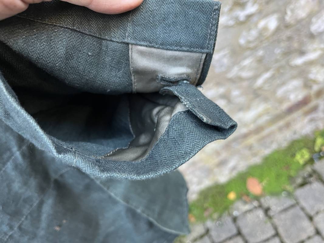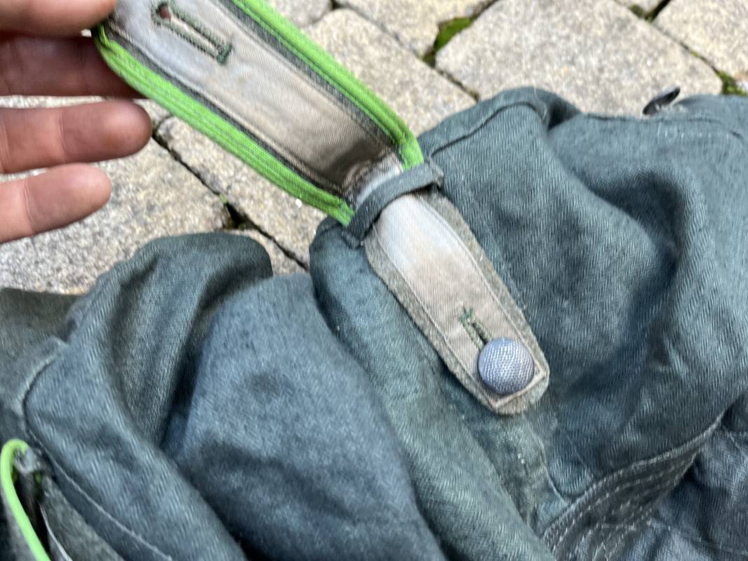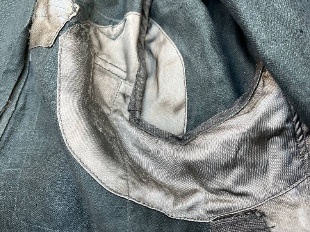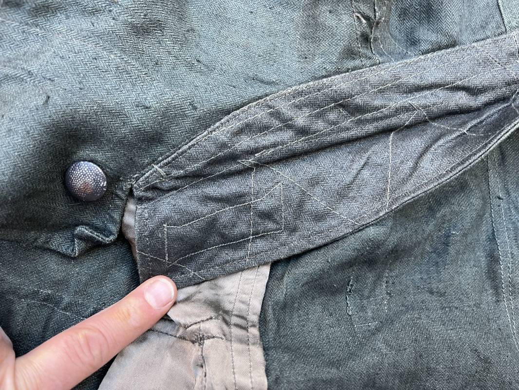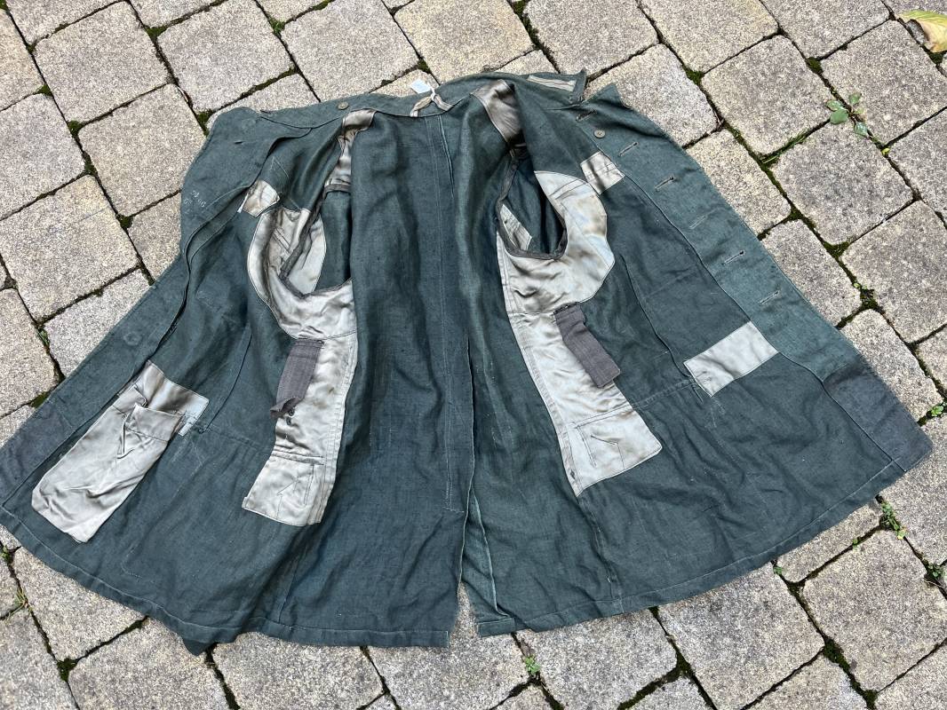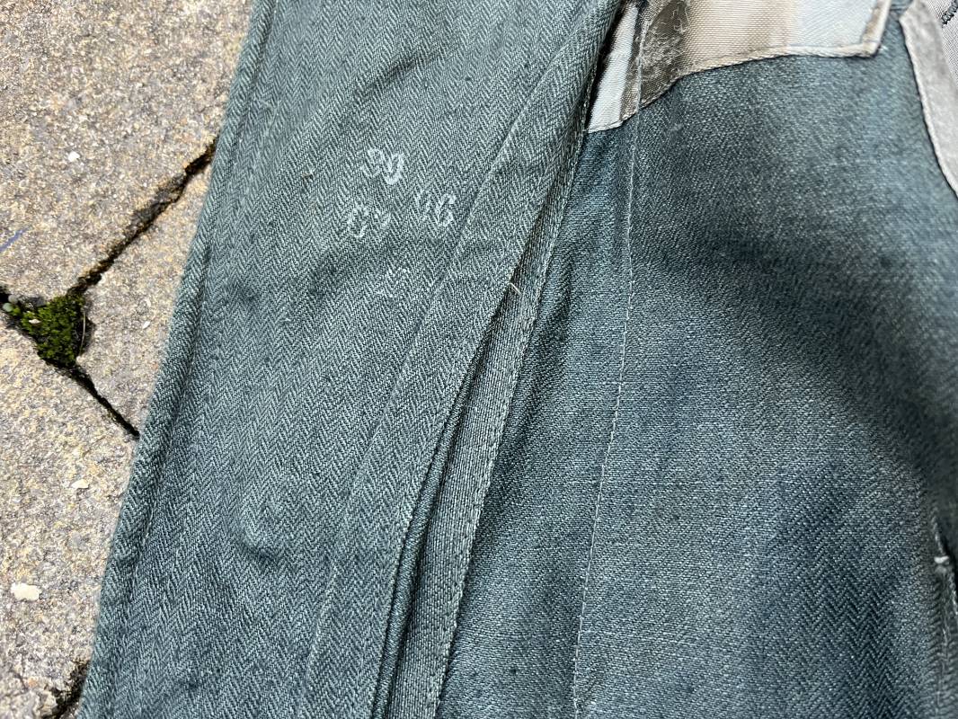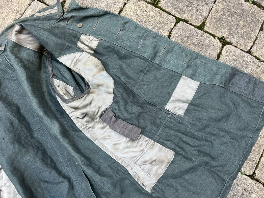 Superbe veste troupe modéle 1943 en treillis vert d'unsoldat panzer grenadier de la Heer . Cette veste en superbe état est entièrement montée d 'origine . Fermeture frontale à six boutons amovibles , bouton métalliques grenelé peints en vert foncé ( modéle 1943 ) , Quatre poche à rabats droits boutonnés . Col avec coins de col ( litzen) modéle 1943 toute arme . Aigle de poitrine troupe du modéle 1943 brodé en coton gris . Les insignes sont montés d 'origine a la confection de la veste . Pattes d 'épaules à rabats modéle 1943 , liseré vert pré des panzer grenadier de la Heer . Tous les boutons sont montés d 'origine . Intérieur pour partie doublé satinette grise . Marquage encre des taille Marquage code fabricant Rbnr M 1943 Largeur épaules 42 cm , longueur 70 cm , manche 62 cm . Superbe veste légérement portée en superbe état . Aucun déaut . Uniforme définitif en collection . 1943/45 Ref 17015