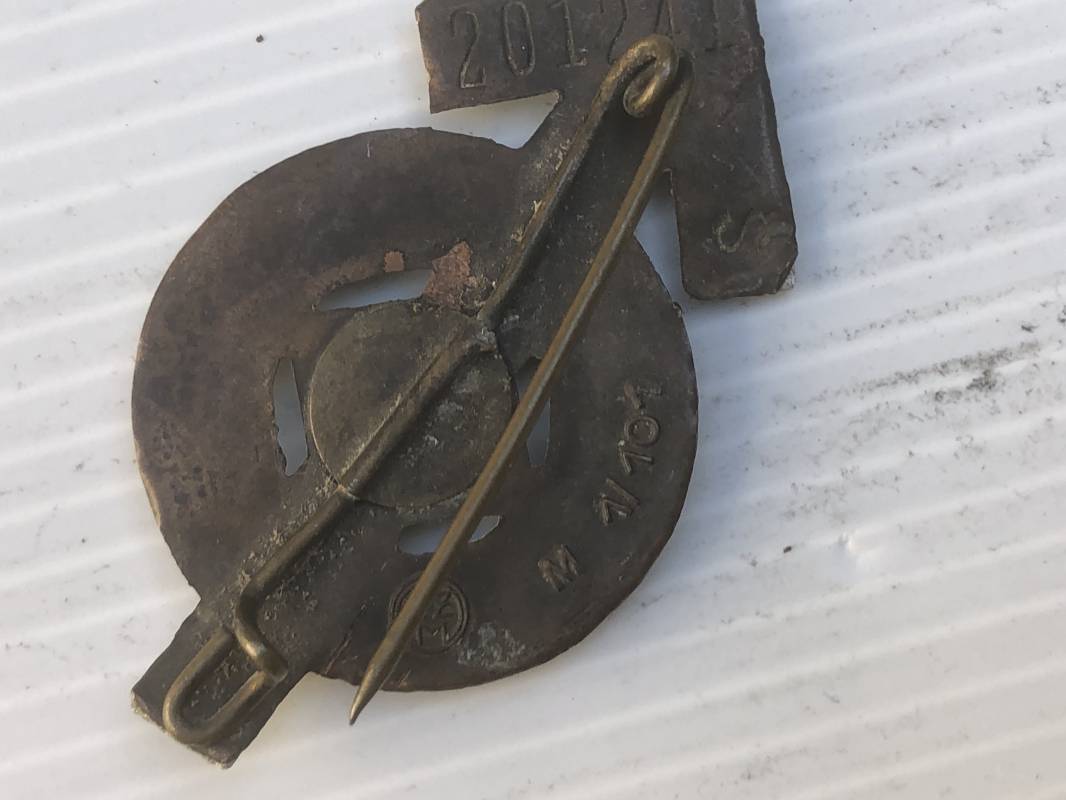 Badge sport classe argent de la Jeunesse Hitlérienne . Marquage code fabricant au dos RZM M1/101 , numero matricule . Attache d'origine . Badge porté . Trés belle patine . Trouvé en brocante en allemagne , ce badge n'a jamais été en collection Ref 18838