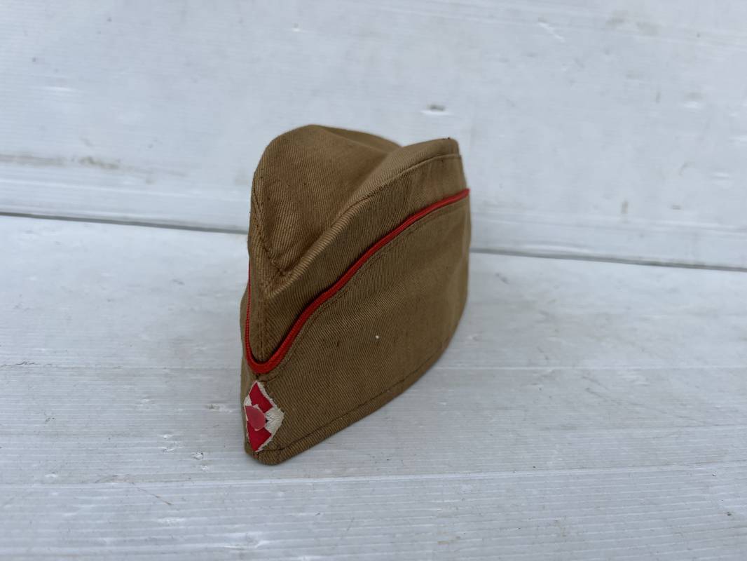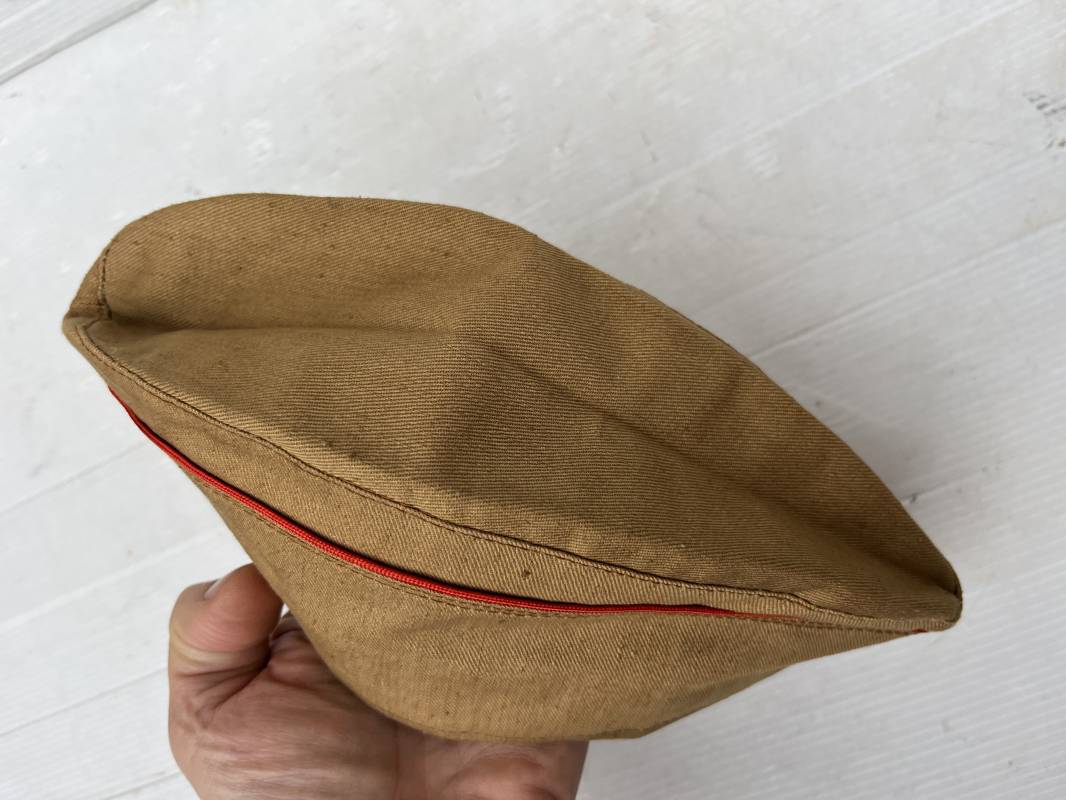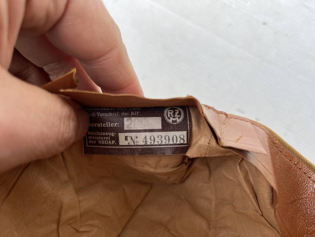 Trés beau calot d'été de la Jeunesse Hitlérienne ( sommer mutze ) . Ce calot est dans un état de conservation exceptionnel . Calot en coton beige , liseré rouge . Insigne losange de la HJ tissé bevo cousu d'origine sur le devant , Intérieur doublé en coton brun , bandeau de coiffe intérieure en carton cuir marron ( alkor) . Tampon encre Taille 54 . Calot dans un état quasi neuf .Etiquette RZM avec code fabricant Hersteller' 28 ' Trés belle coiffe provenance directe de famille en Allemagne Jamais touché . Coiffure définitive en collection HJ/DJ 1935/45 Ref 19601