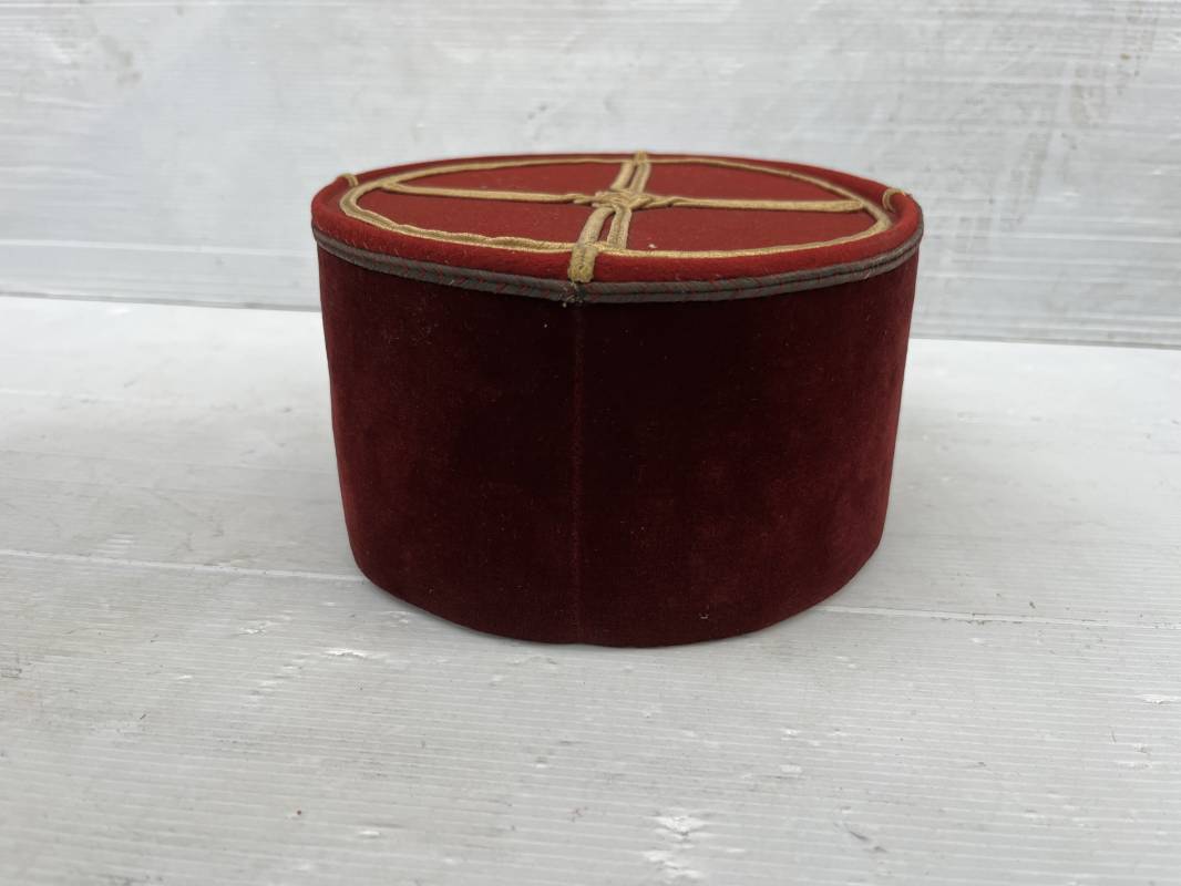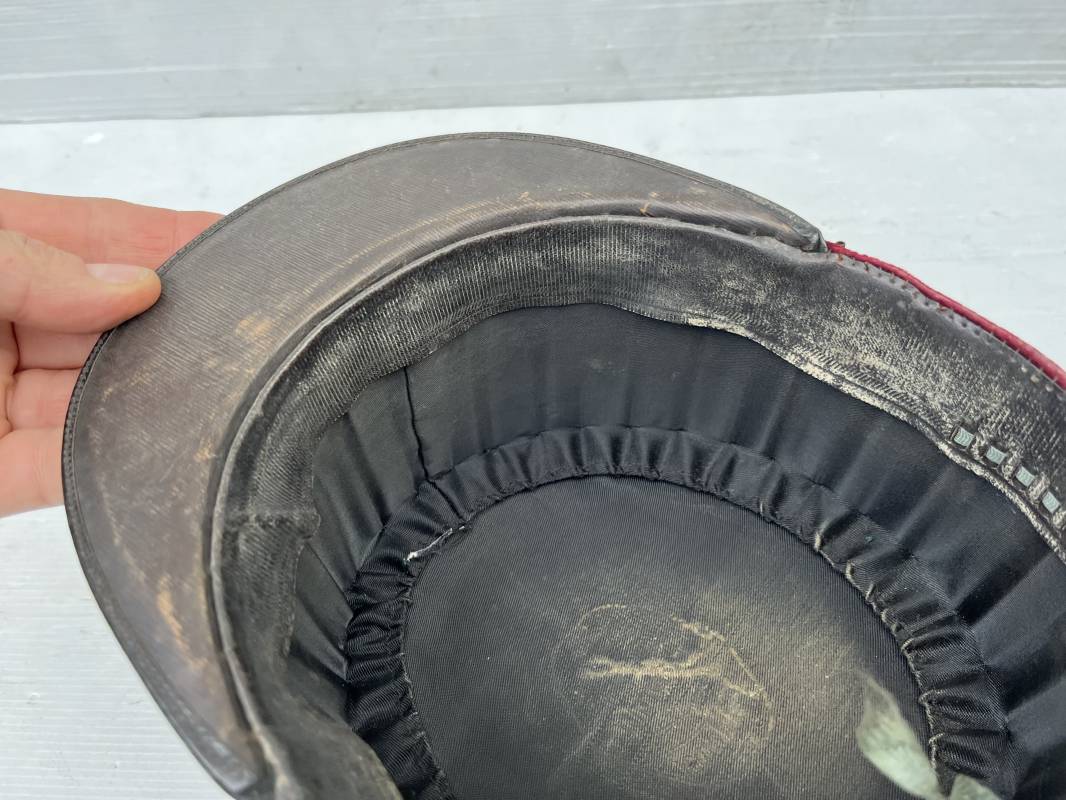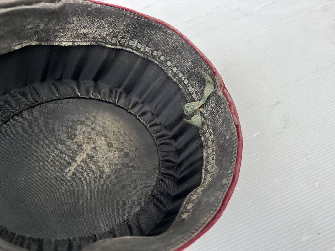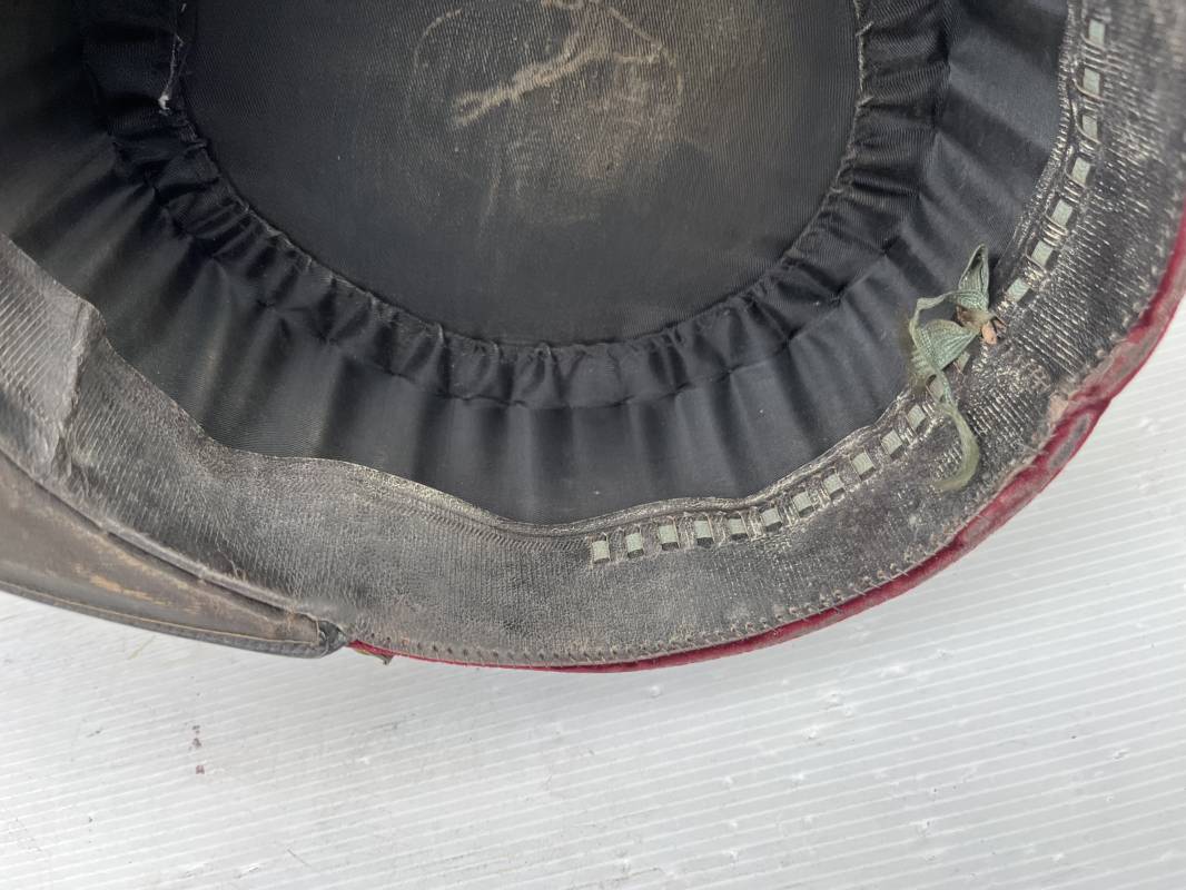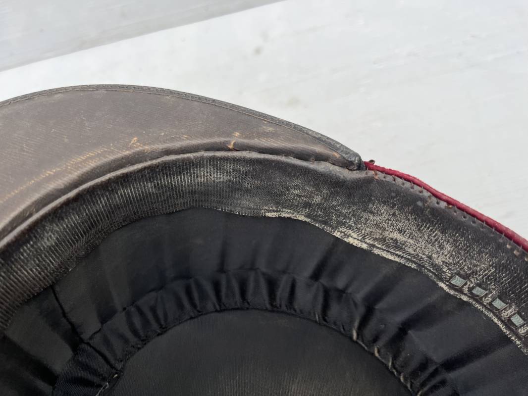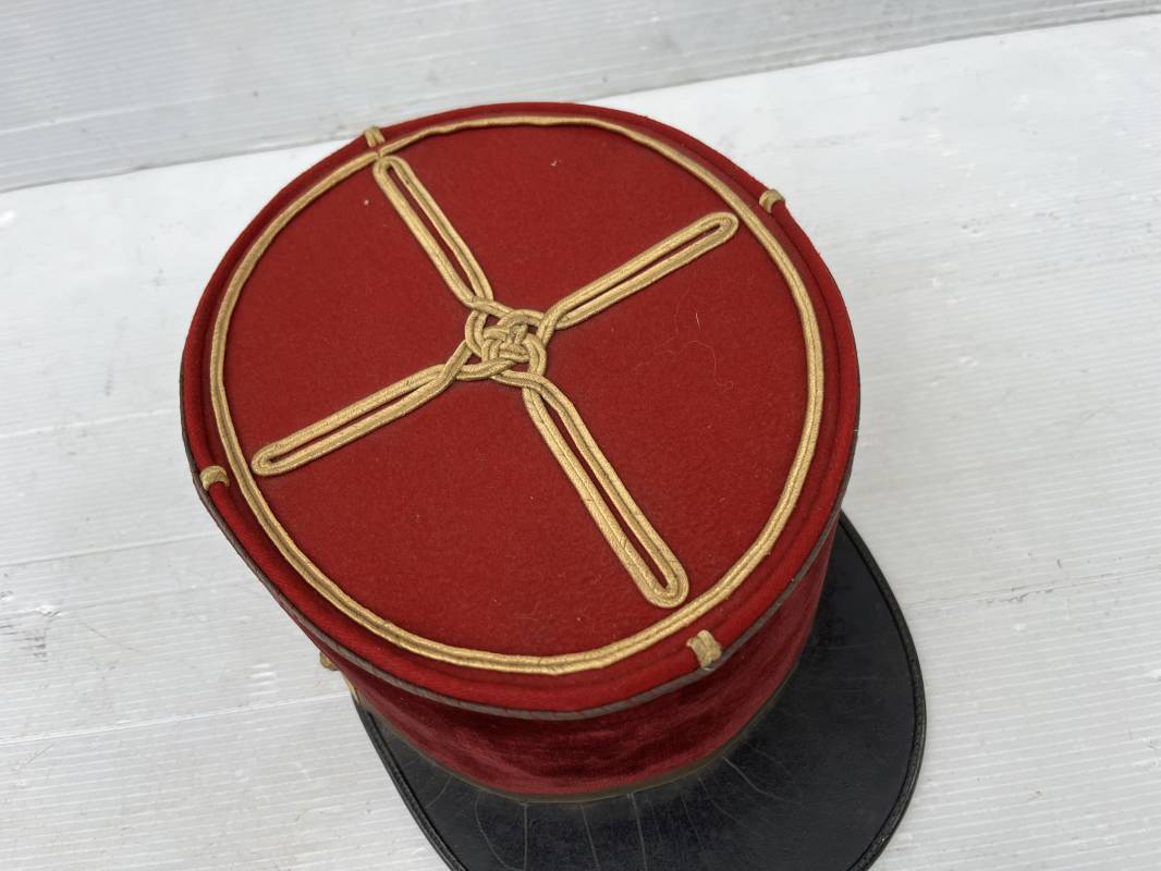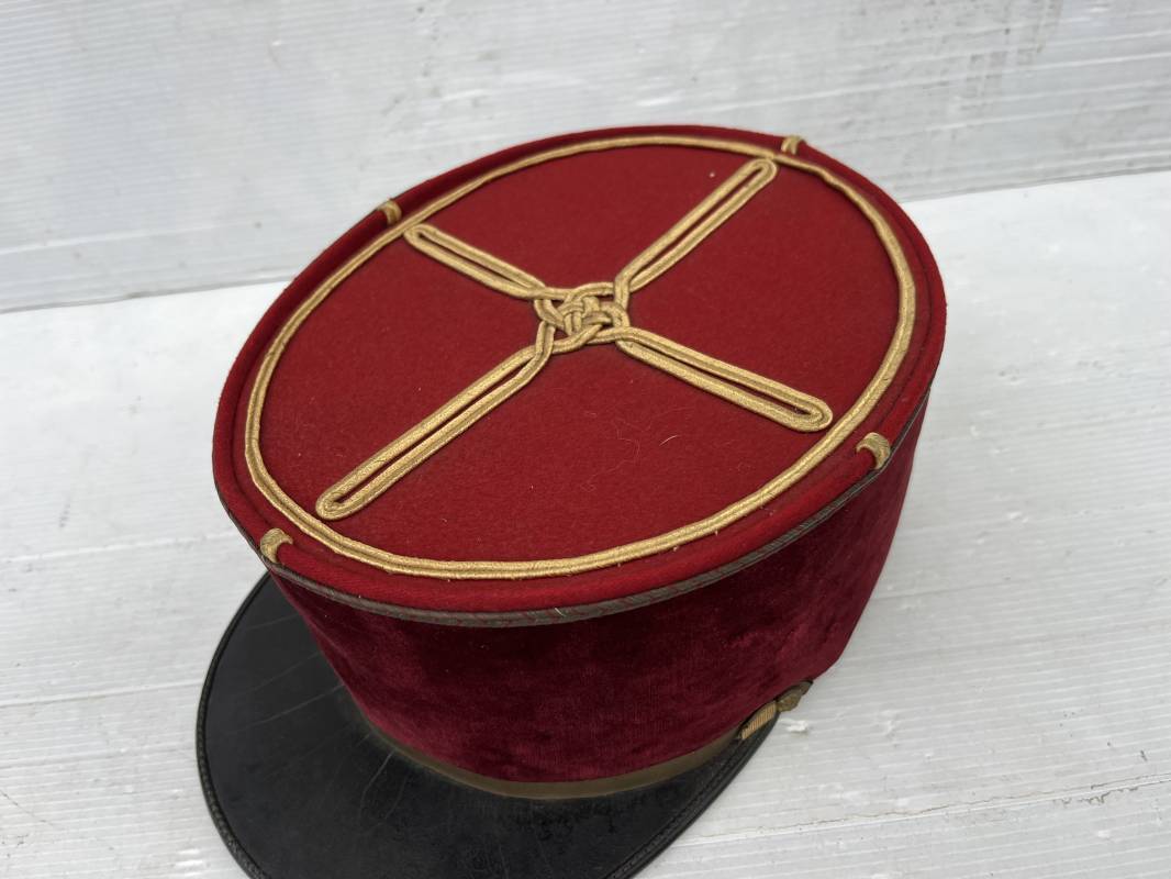 Beau képi modéle 1931 d un officier médecin . Bandeau de velours cramoisi , galons dorés , fausse jugulaire et petits boutons dorés du service de santé . Galons d aspirant . Hauteur kepi 103 mm . Visière en cuir noir , petit jonc sur le pourtour . Intérieur doublé en coton noir , bandeau de coiffe intérieur en cuir noir taille 581/2 . Képi légérement porté en tres bel état 1935/40 Ref 20234