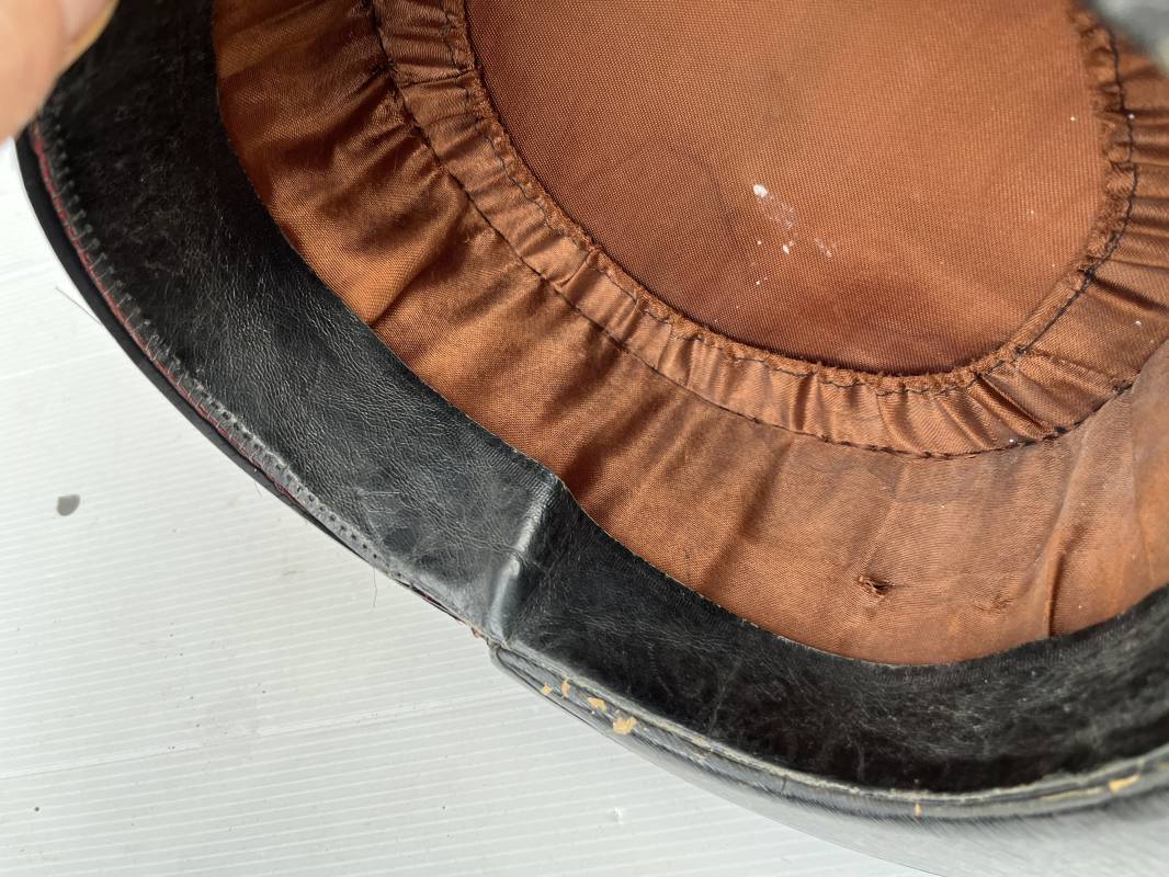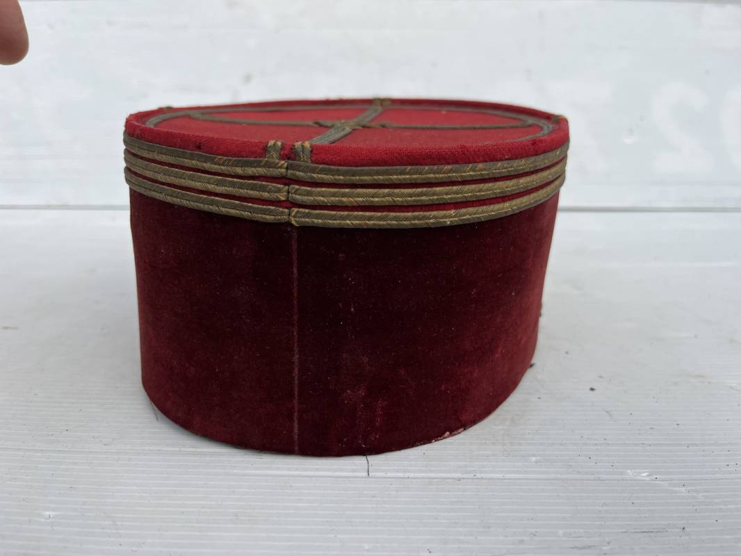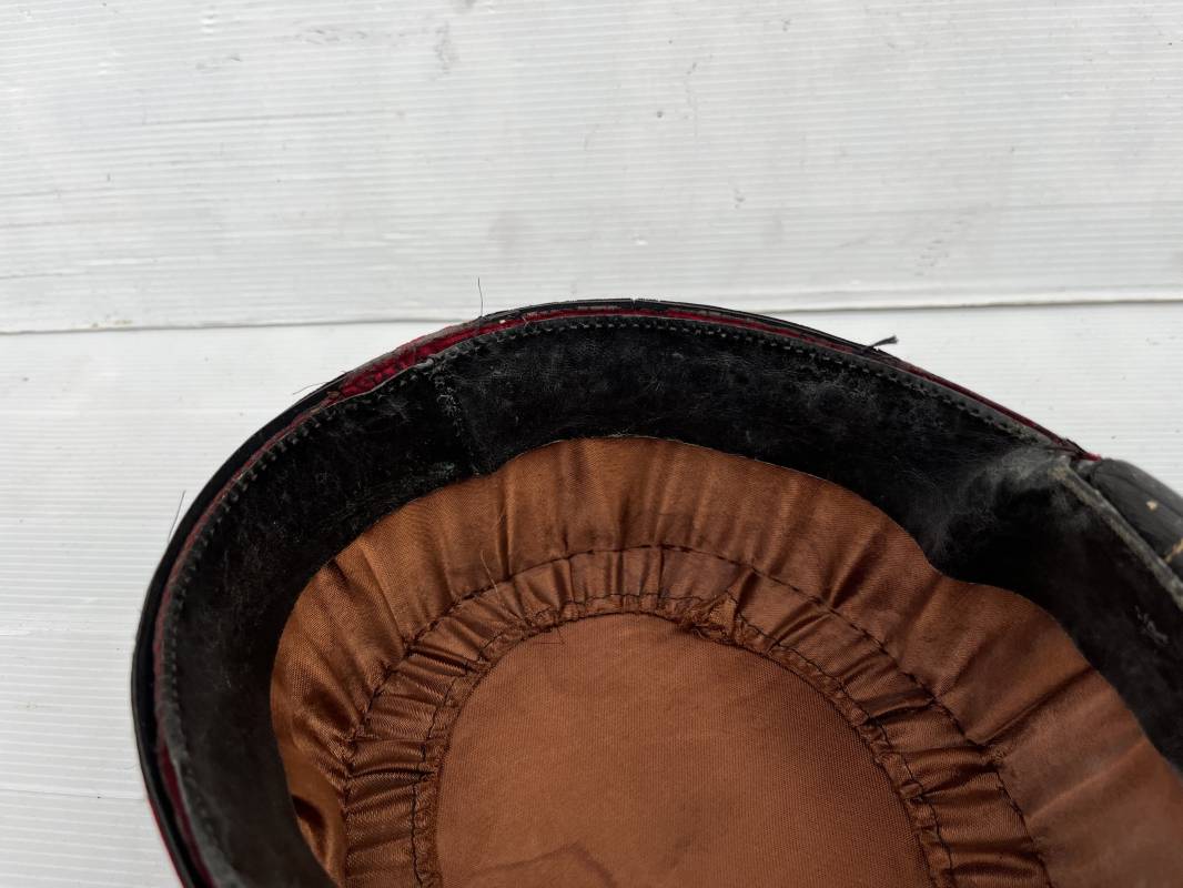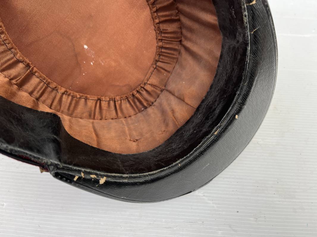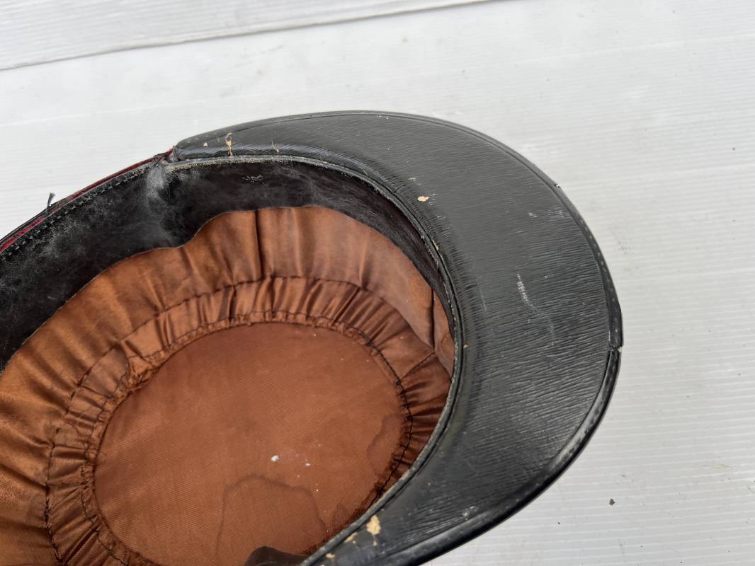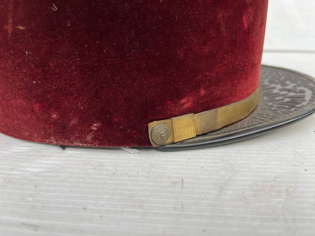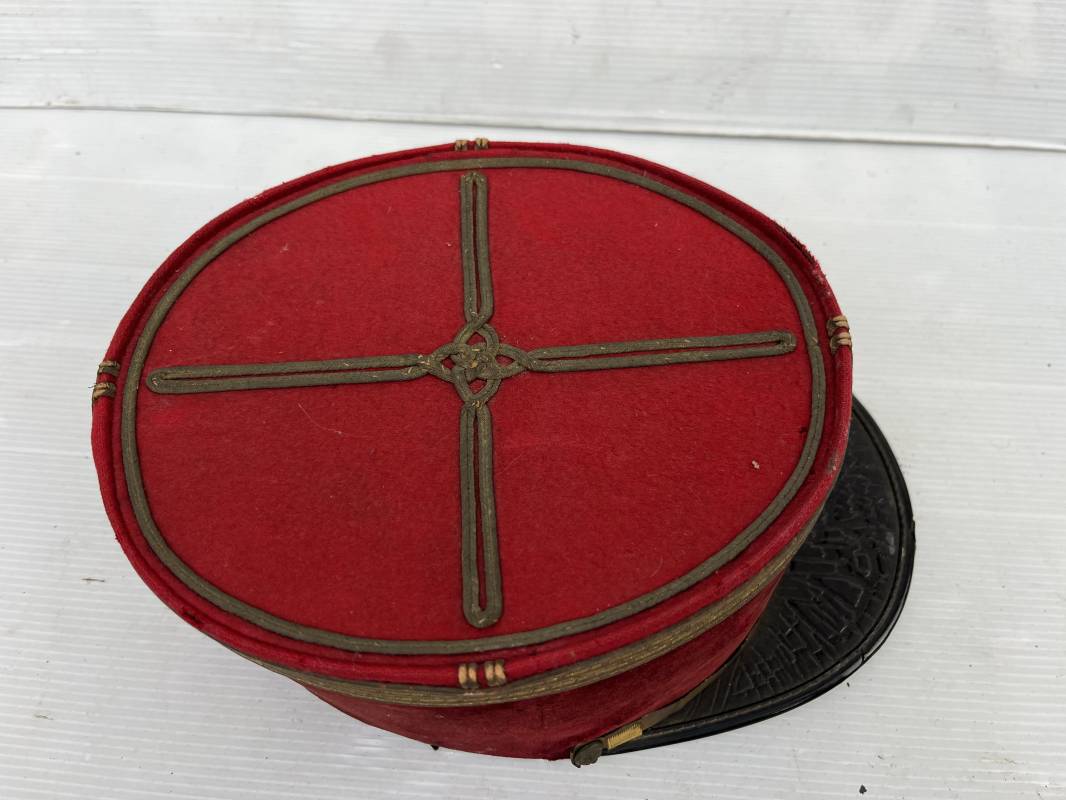 Beau képi modéle 1931 d un officier médecin . Bandeau de velours cramoisi , galons dorés , fausse jugulaire et petits boutons dorés du service de santé . Galons de capitaine . Hauteur kepi 103 mm . Visière en cuir noir , petit jonc sur le pourtour . Intérieur doublé en satinette brune , bandeau de coiffe intérieur en cuir noir taille 58. Képi légérement porté en tres bel état 1935/40 Ref 21645