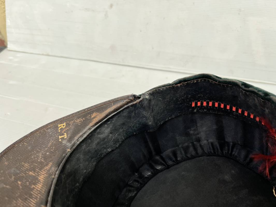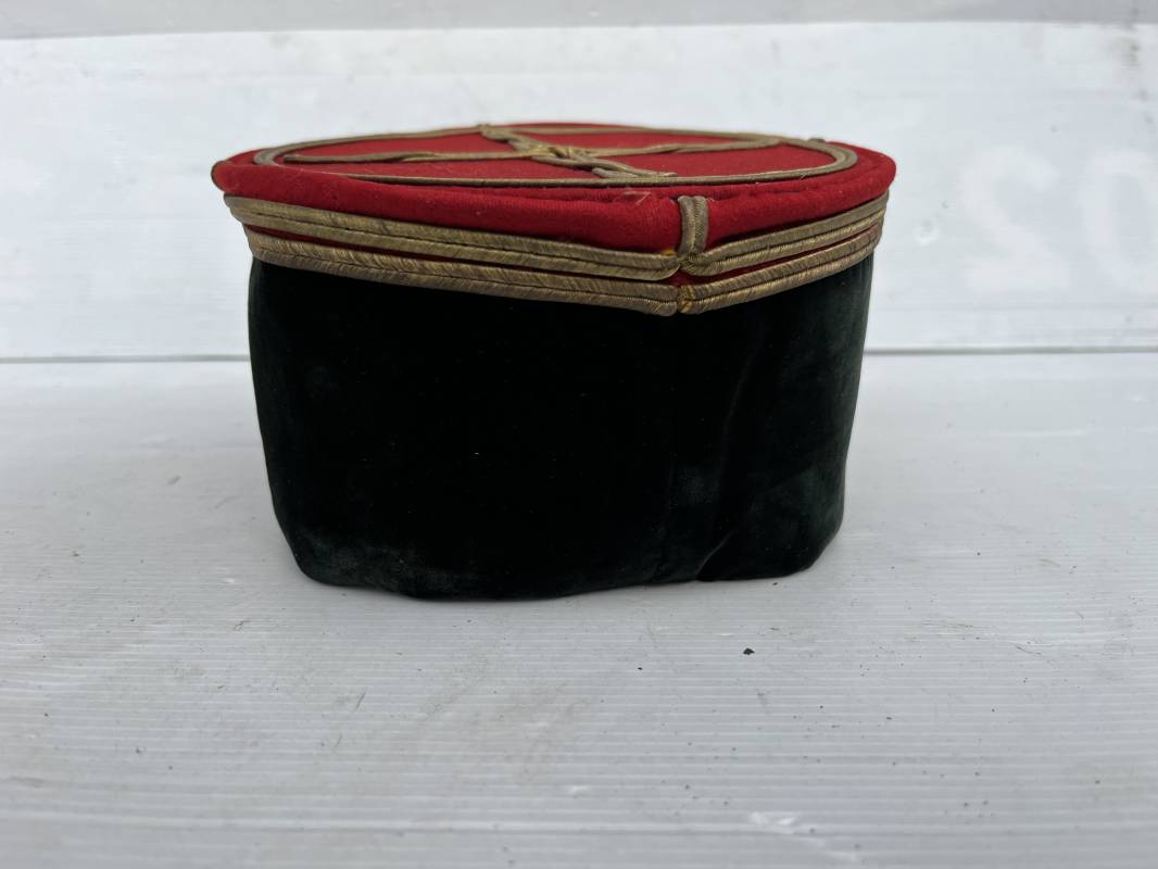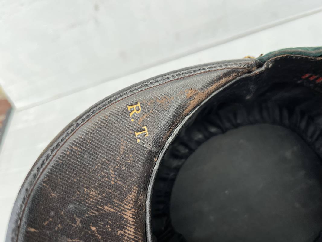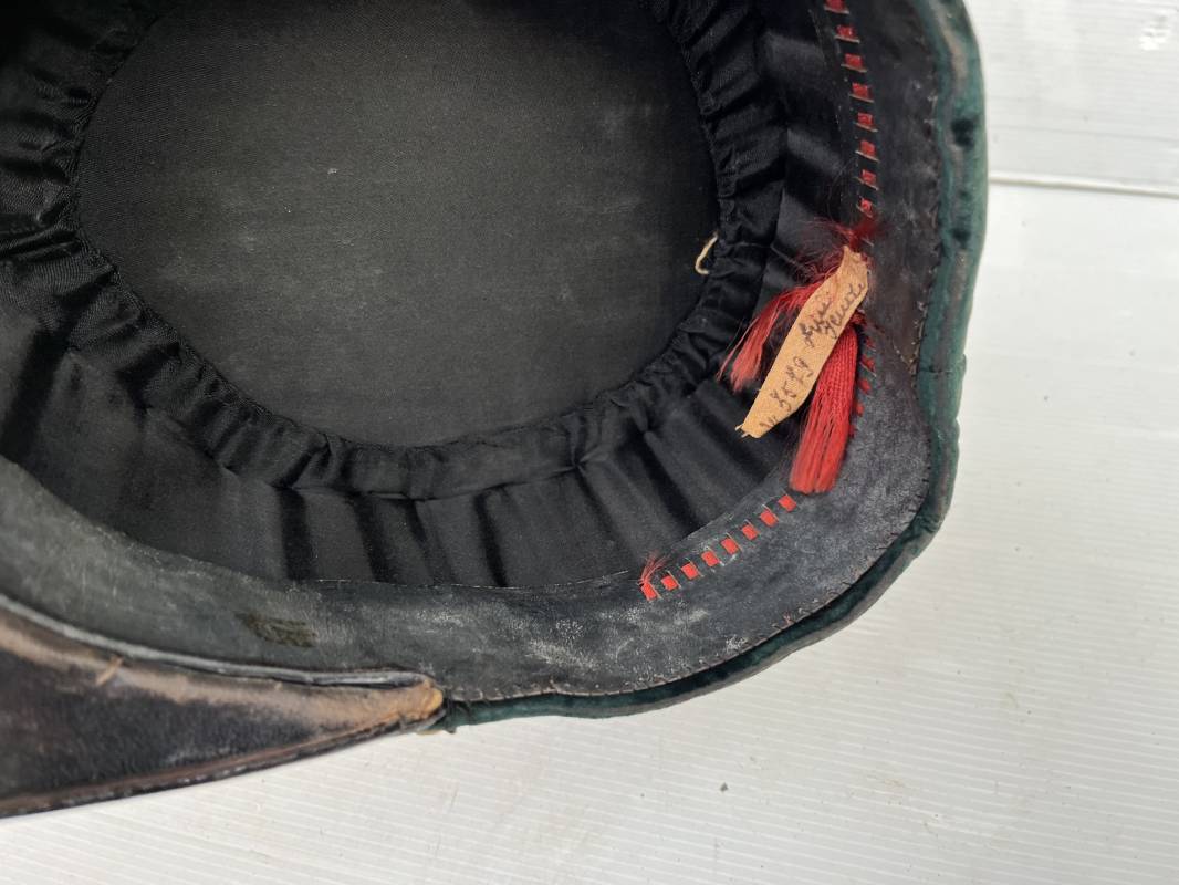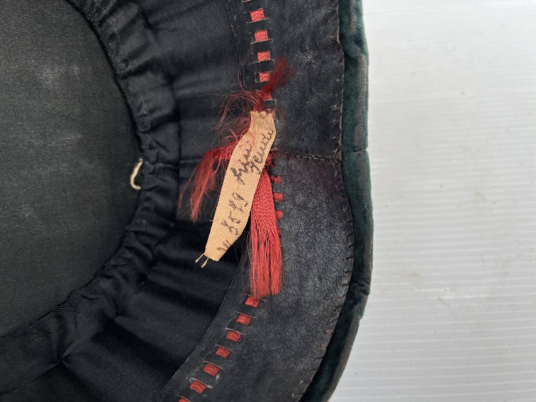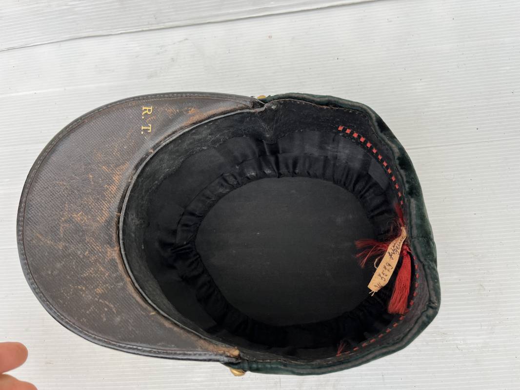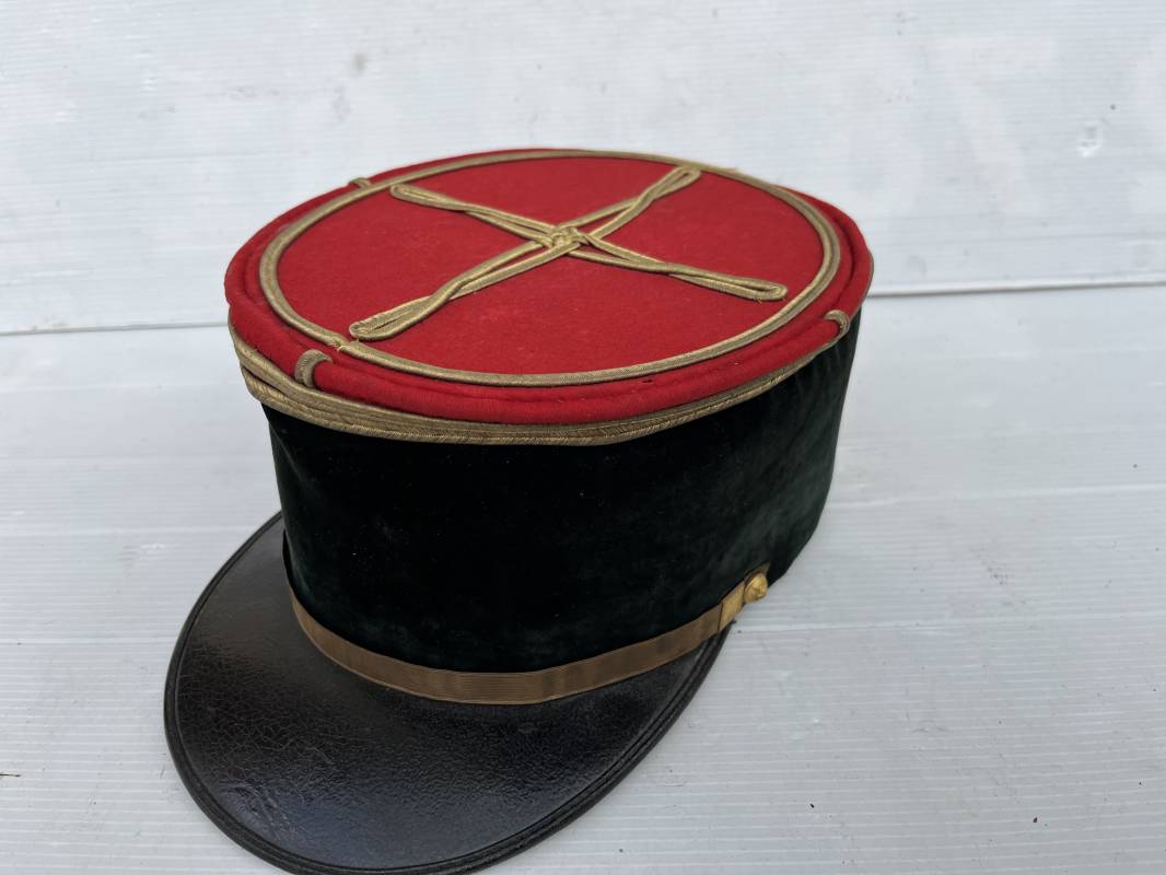 Beau képi modéle 1931 d un officier Pharmacien . Bandeau de velours vert , galons doré , fausse jugulaire et petits boutons dorés du service de santé . Galons de lieutenant . Hauteur kepi 103 mm . Visière en cuir noir , petit jonc sur le pourtour . Intérieur doublé en coton noir , bandeau de coiffe intérieur en cuir noir taille 57 . Képi légérement porté en tres bel état 1935/40 Ref 19783