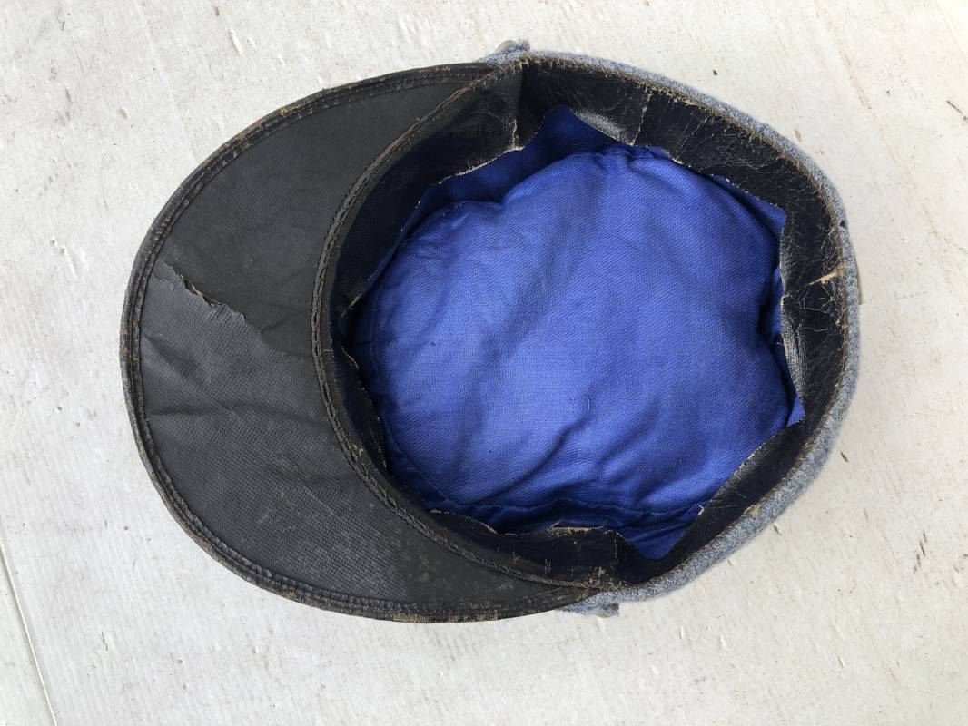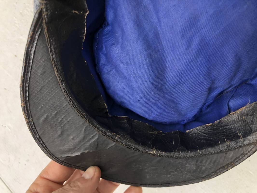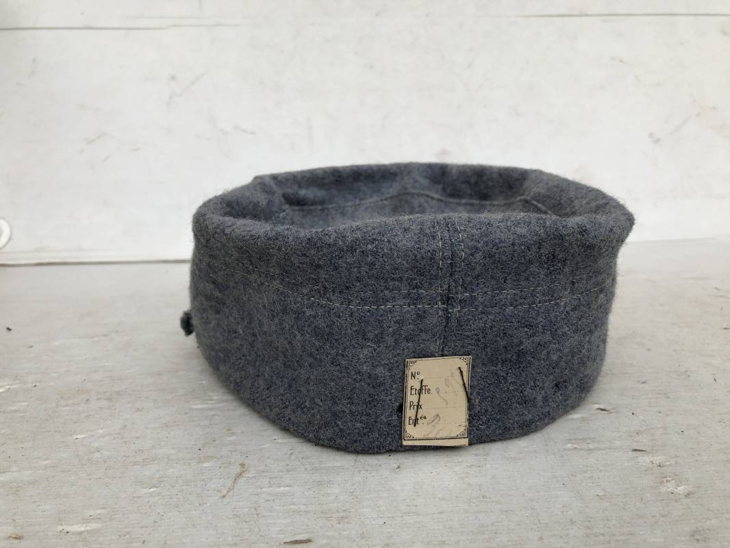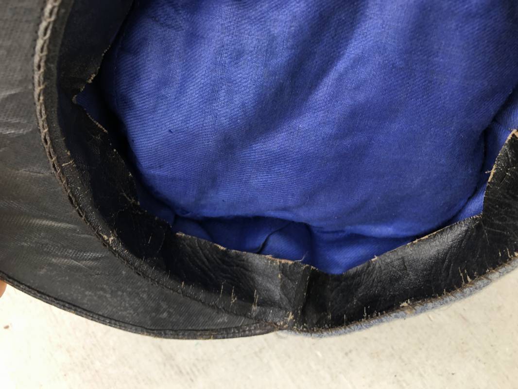 Beau képi Polo modéle 1910 en drap gris bleu violacé . Drap précoce sans doute d'importation typique des fabrications de l'année 1915 . Képi tout grade et toute arme . Visière cuir noir revers en toile cirée noire . Jugulaire en drap . Deux boutons corozo de couleur gris bleu . Intérieur coton bleu roi , bandeau en carton cuir de couleur noire . Taille 54 Belle forme . Etiquette de taille et prix sur le derrière . . Ce kepi semble ne jamais avoir été porté . Parfait état . Kepi typique des années 1915 Peu courant Ref 5429