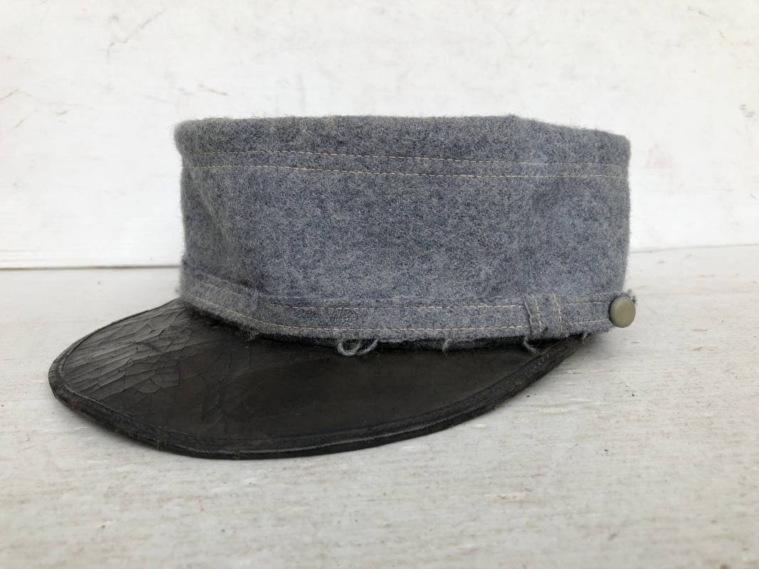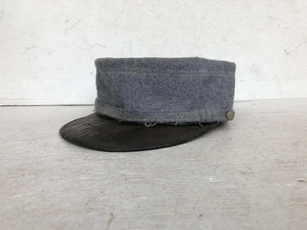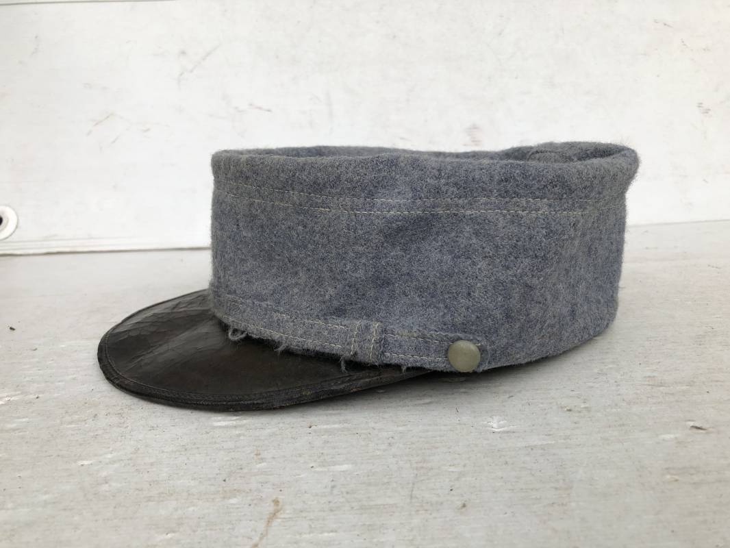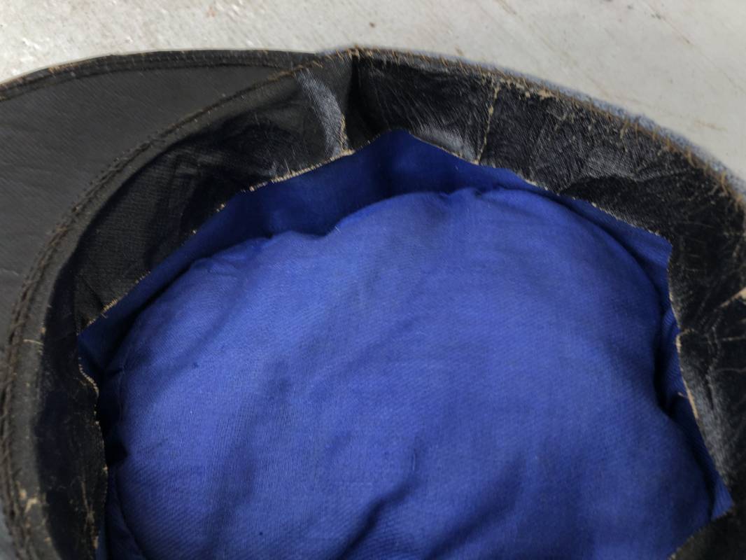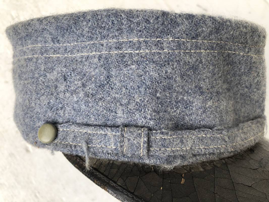 Beau képi Polo modéle 1910 en drap gris bleu violacé . Drap précoce sans doute d'importation typique des fabrications de l'année 1915 . Képi tout grade et toute arme . Visière cuir noir revers en toile cirée noire . Jugulaire en drap . Deux boutons corozo de couleur gris bleu . Intérieur coton bleu roi , bandeau en carton cuir de couleur noire . Taille 54 Belle forme . Etiquette de taille et prix sur le derrière . . Ce kepi semble ne jamais avoir été porté . Parfait état . Kepi typique des années 1915 Peu courant Ref 5429