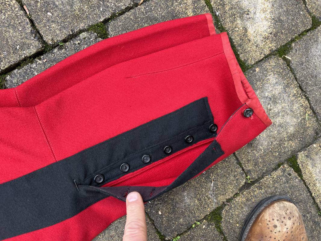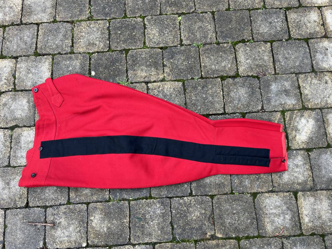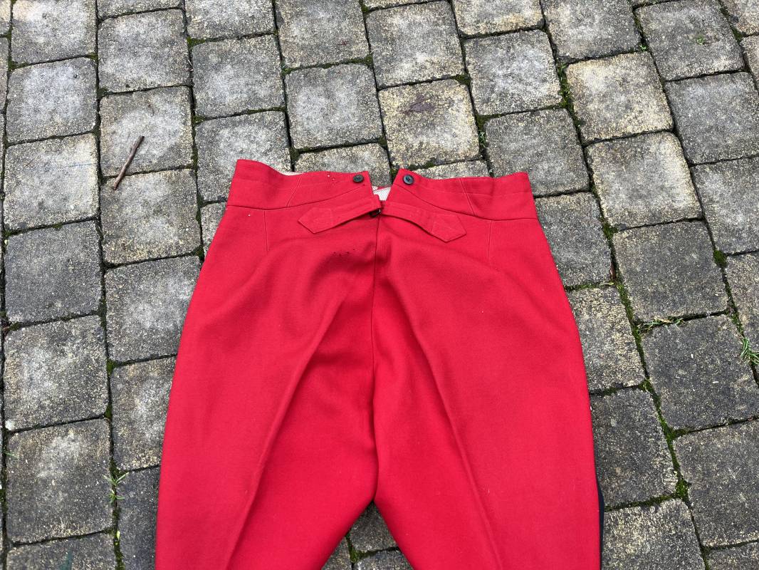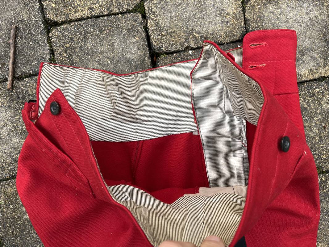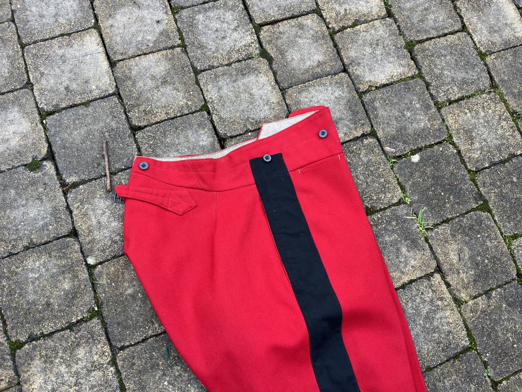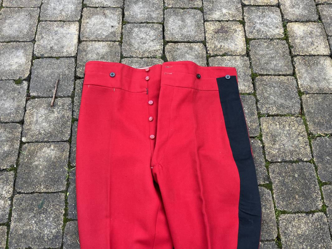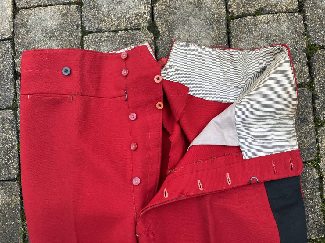 Trés bel ensemble d un capitaine du 23éme Régiment de infanterie de Ligne . Képi Polo mdle 1910 en drap noir et calot garance , galons dorés de capitaine . Chiffres brodés ' 23' en cannetille dorée sur le devant . Fausse jugulaire en aluminium doré , petits boutons a grenade de l infanterie . Visière en cuir noir . Hauteur kepi 90 mm Intérieur doublé en coton noir . Bandeau de coiffe intérieur en cuir noir Taille 59 . Veste Modele 1893 en drap noir , boutons dorés a grenade de l infanterie Pattes de col du 23 éme Régiment d infanterie de ligne , galons dorés de capitaine . Col droit en drap garance . Passants dorés pour le port des épaulettes . Intérieur doublé en satinette noire , manches doublées en coton rayé blanc , deux poches intérieures avec etiquette nominette au nom de l officier ' Montjamont Septembre 1913' . Etiquette du tailleur militaire E.Pichard Ecole de guerre a Paris . Largeur épaules 43 cm , longueur 75 cm , manche 62 cm . Culotte officier Mdle 1893 en drap garance et bandes de commandement en drap noir sur les cotés . Boutons en plastique rouge et noir . Martingale dans le dos . Bas des jambes boutonnés . Deux poches latérales , une poche a gousset . Intérieur doublé en coton rayé blanc et noir . Poches en coton blanc . Taille 46 longueur 95 cm . Tres bel ensemble légèrement porté en parfait état . Tres bel ensemble d un capitaire du prestigieux 23 éme Régiment d infanterie de Ligne en Aout 1914 Ref 21580