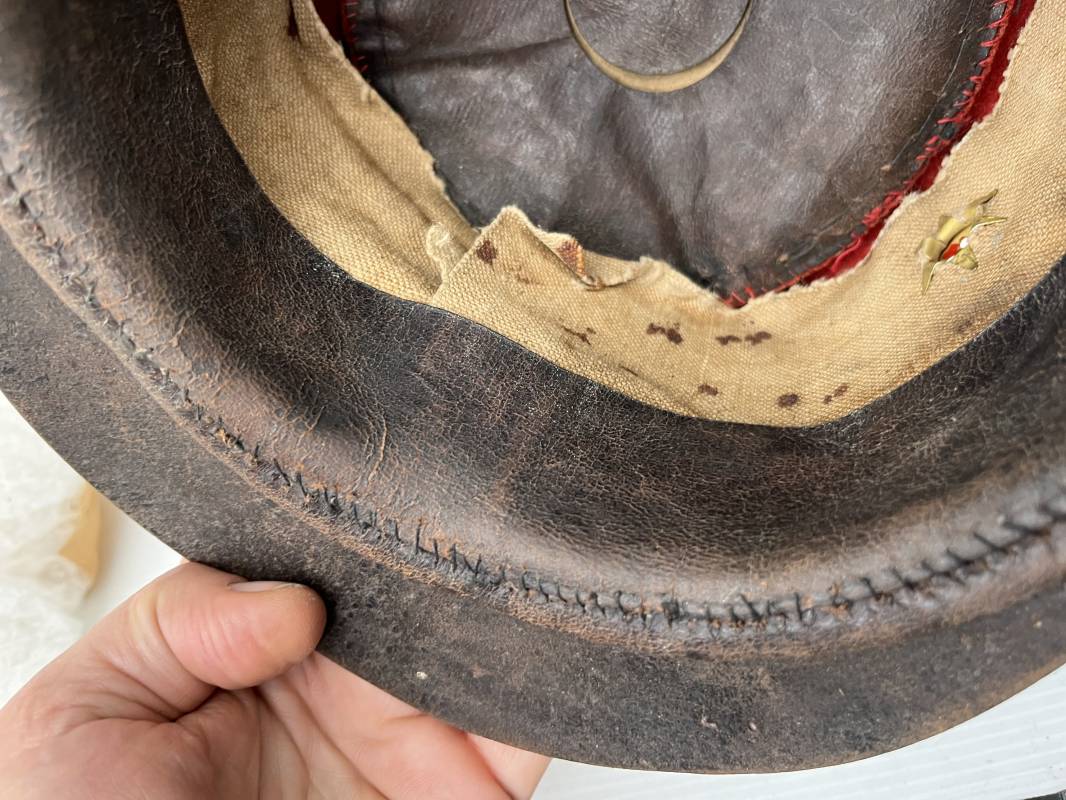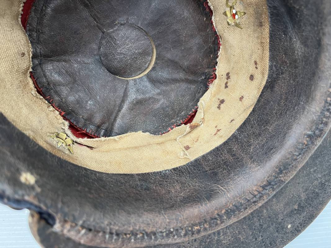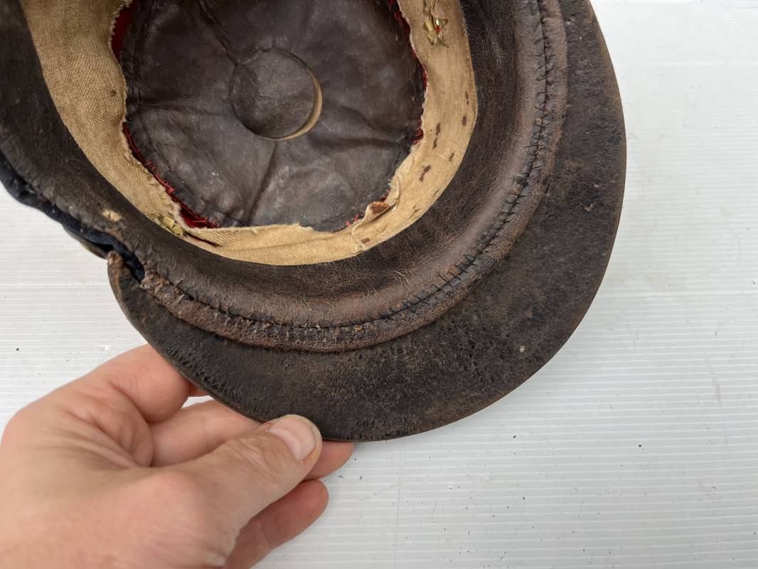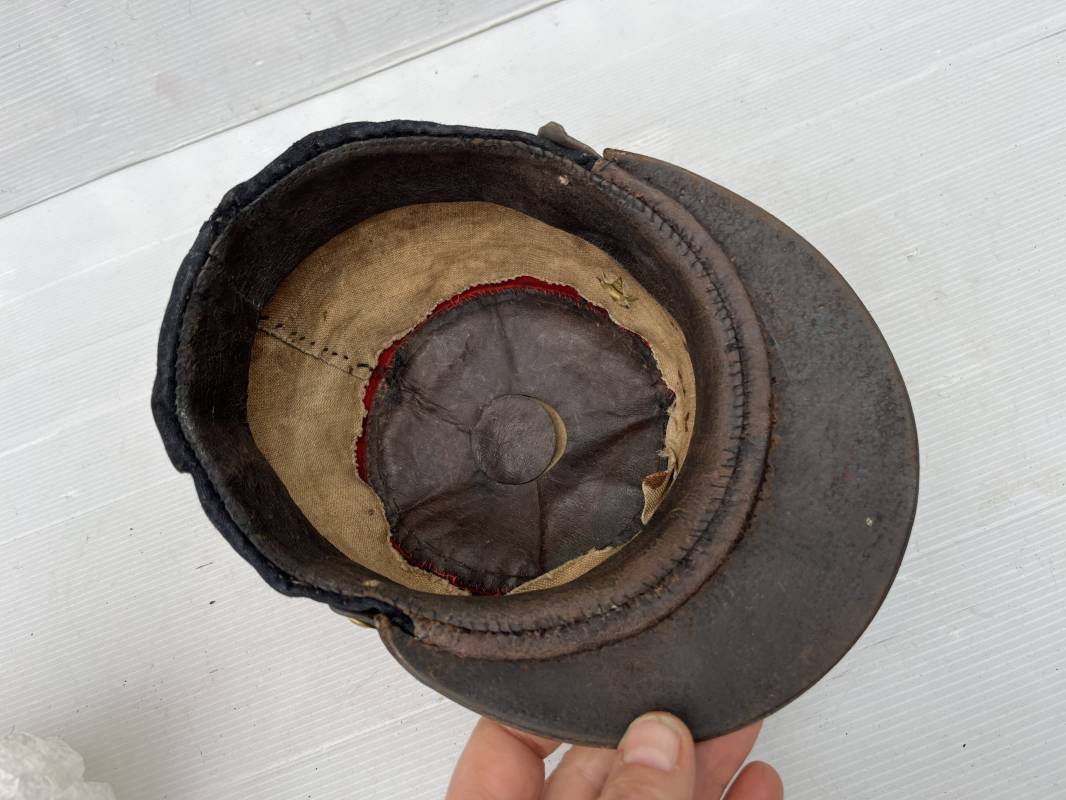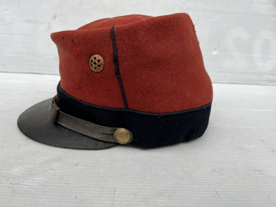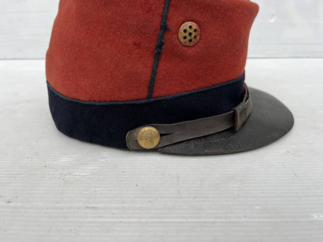 Très beau képi troupe modèle 1884 d'un soldat du 26 ème Régiment d'Infanterie de Ligne ( Nancy ) . Képi de dotation en drap garance et gris de fer bleuté. Oeillets de ventilation. Visière en cuir noir. Jugulaire troupe en cuir noir à coulisse. Deux boutons dorés à grenade de l'Infanterie. Chiffres découpés du 26 ème RI cousus sur le devant. Bandeau de coiffe intérieure en cuir noir. Taille 54. Fond du képi doublé coton et cuir. Carcasse en lin . Drap frais, képi porté en bel état . Belle forme. Belle patine générale 1900/1914. Ref 22066