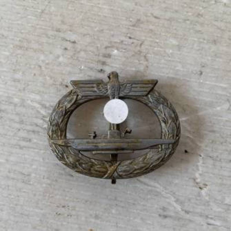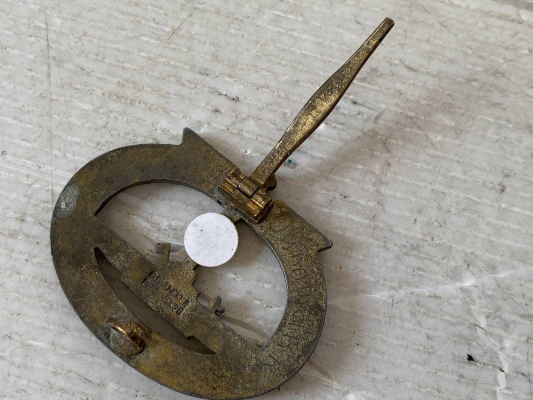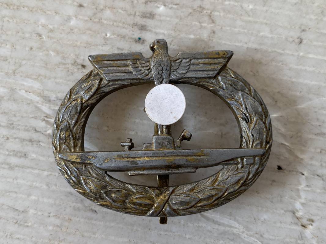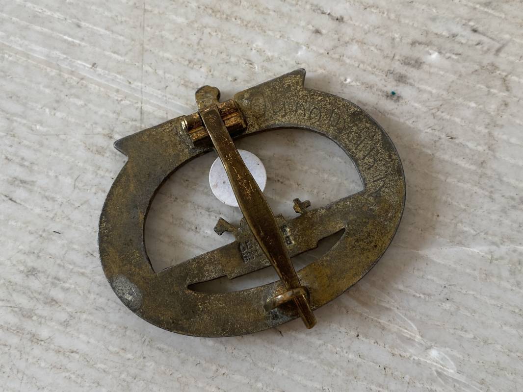 Rare badge d'un sous marinier de la Kriegsmarine, fabrication massive. Dorure d'origine, marquage fabricant au dos CE. Juncker Berlin. Attache et crochet d'origine. Légèrement porté en bel état. Belle patine générale 1940/45. Ref 16334