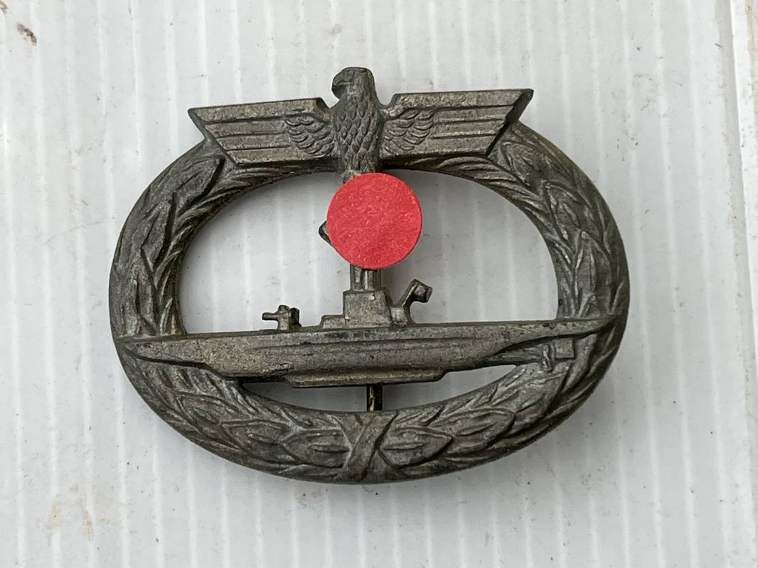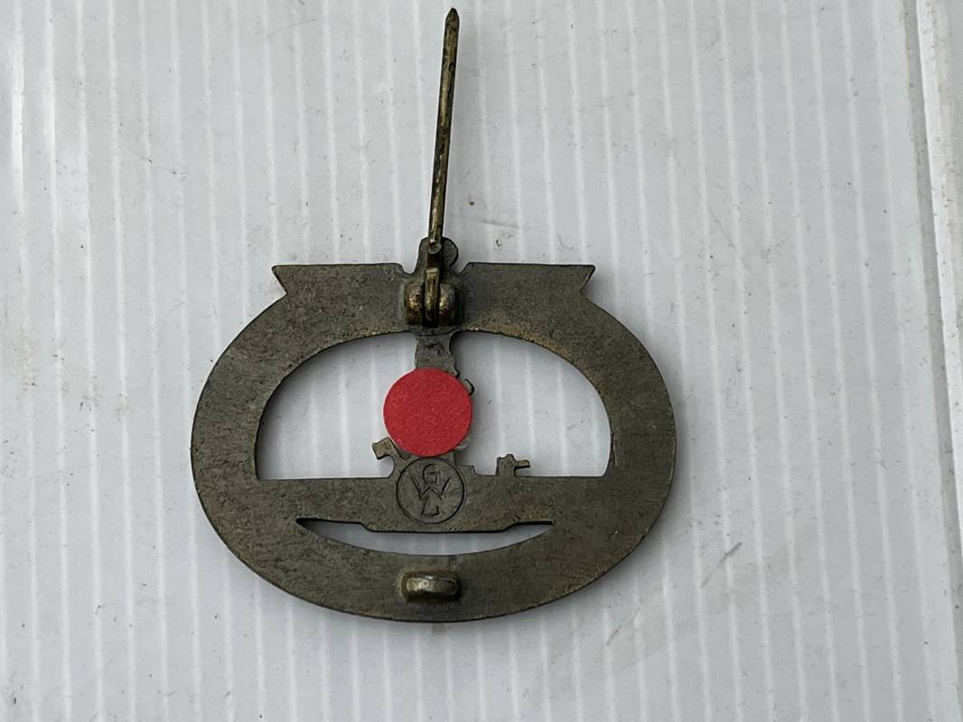 Rare badge d'un sous marinier de la Kriegsmarine, fabrication massive. Marquage fabricant au dos GWL Attache et crochet d'origine. Légèrement porté en bel état. Belle patine générale 1940/45. Ref 16439