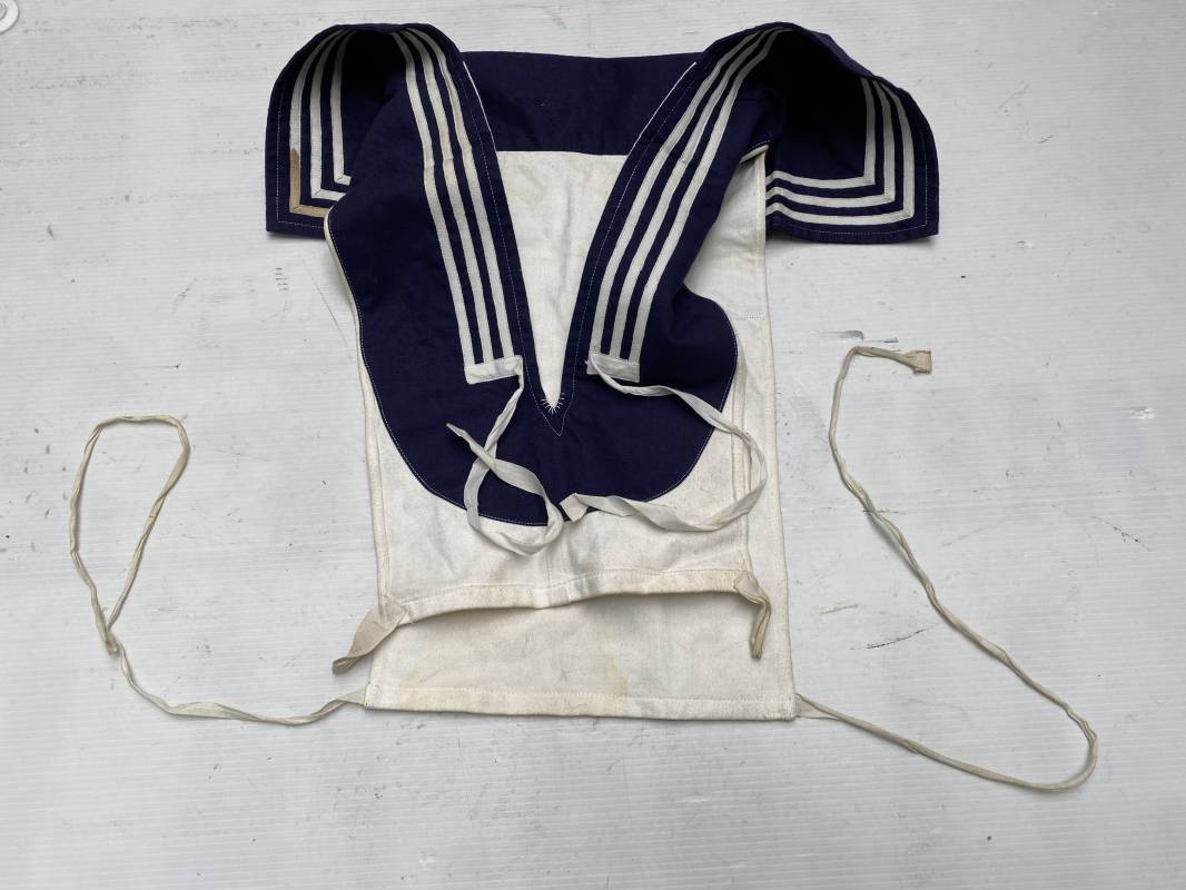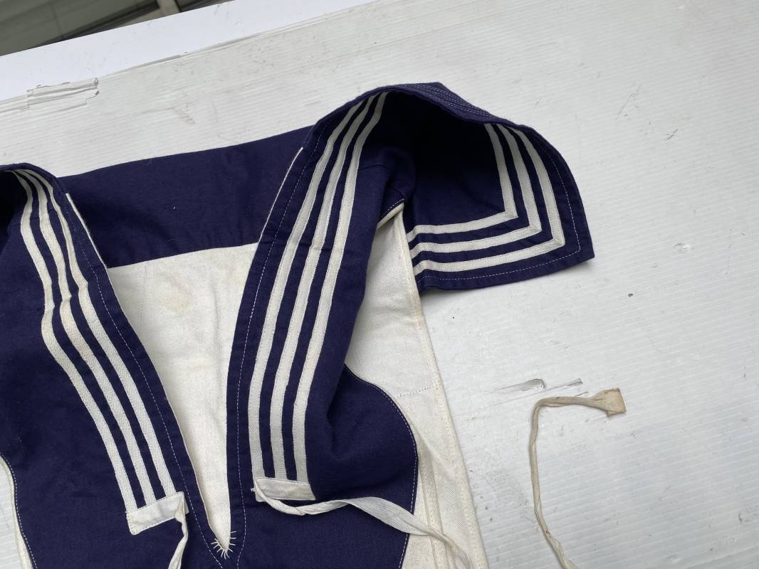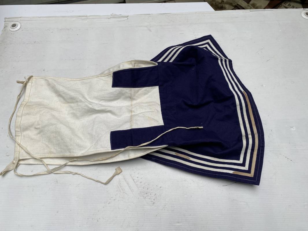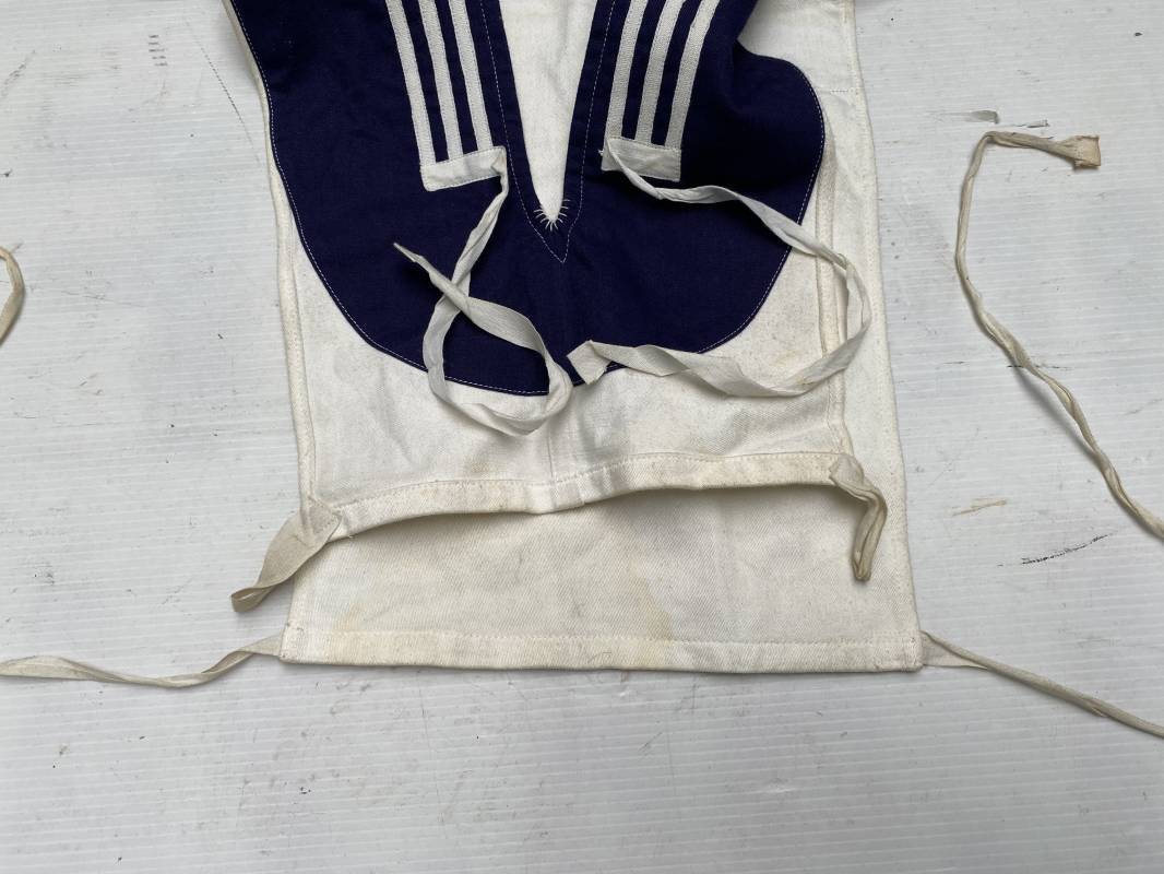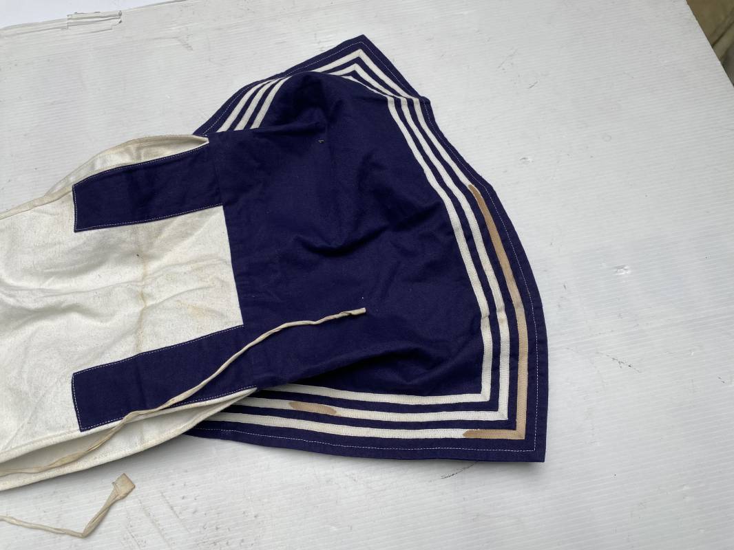 Beau grand col réglementaire d'un matelot de la Kriegsmarine . Grand col de dotation en coton blanc et bleu nuit . Lacets en coton de fixation et lacets de cravate . Légèrement porté en bel état 1935/45 Ref 19066