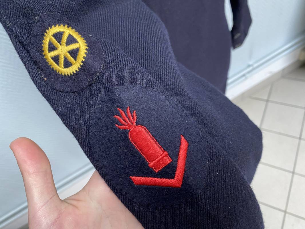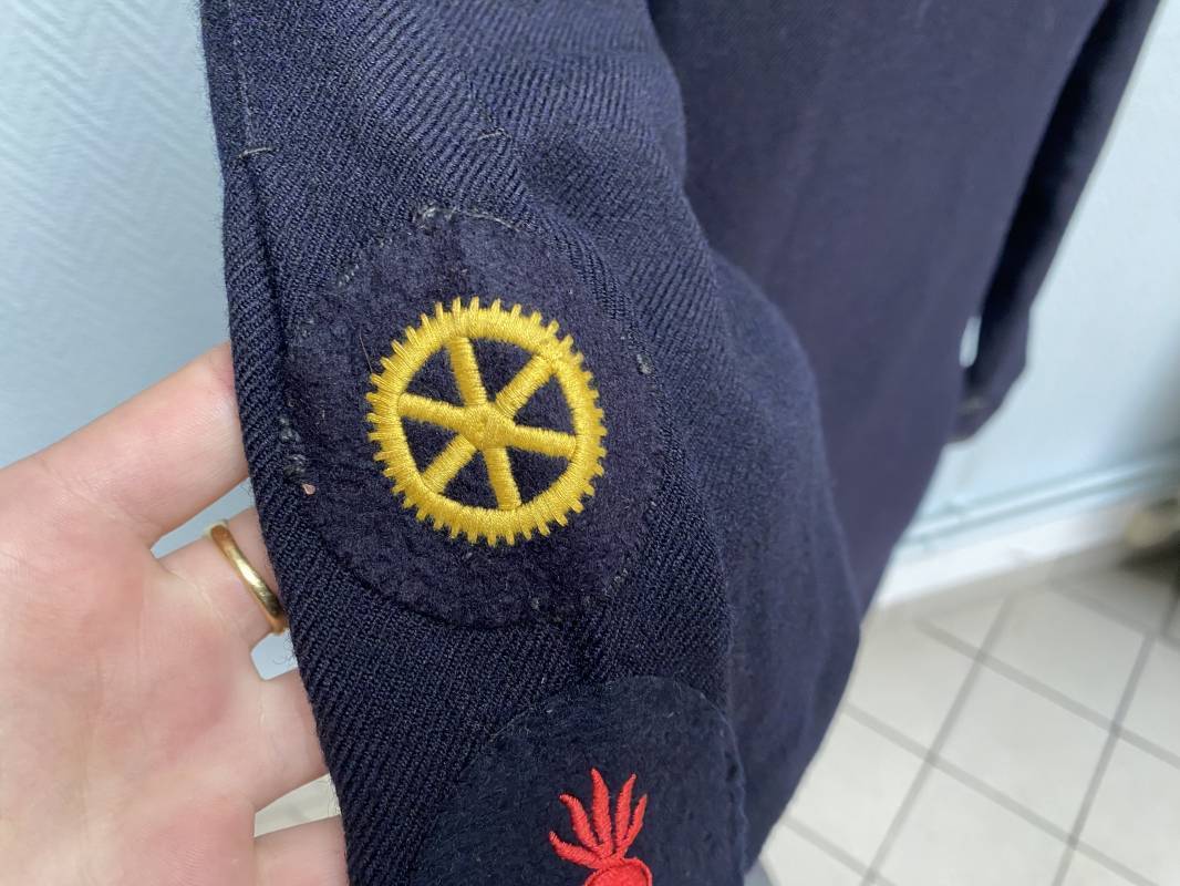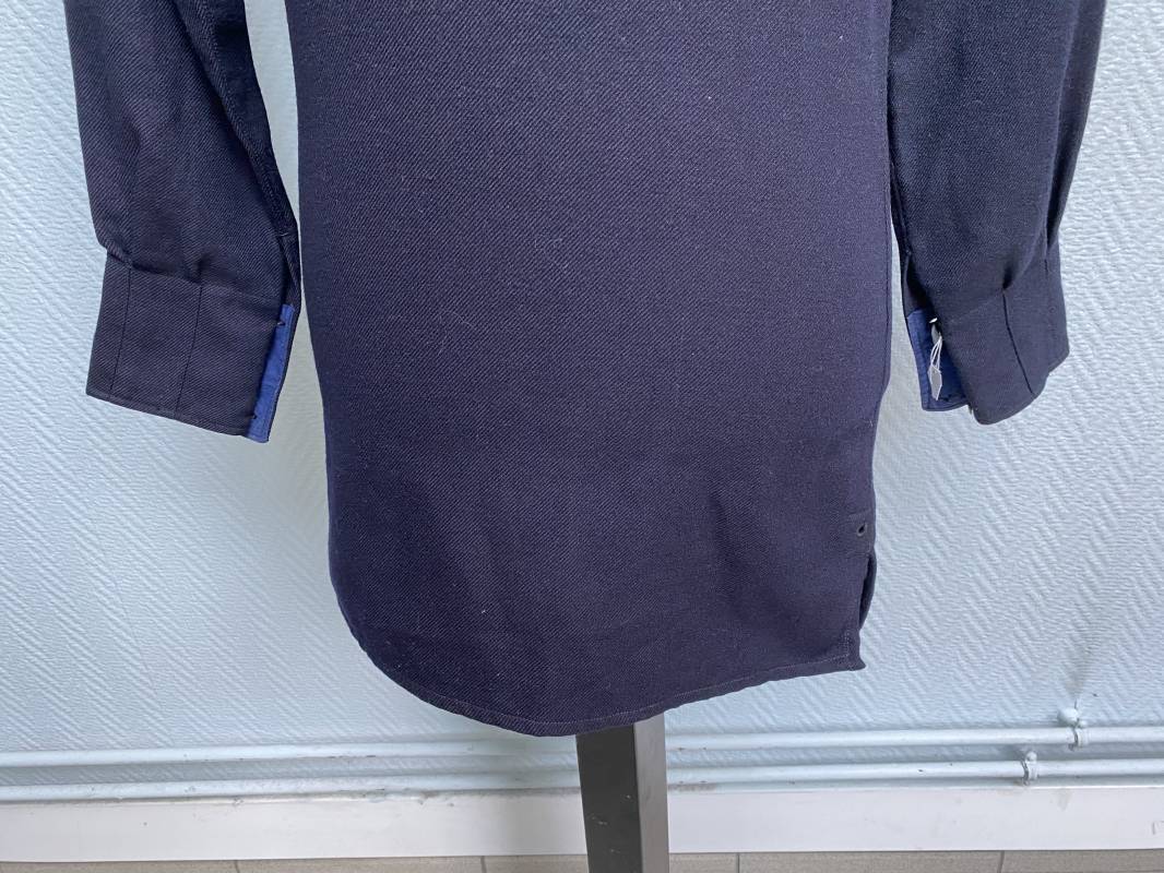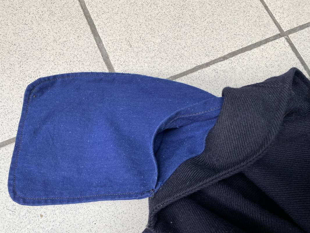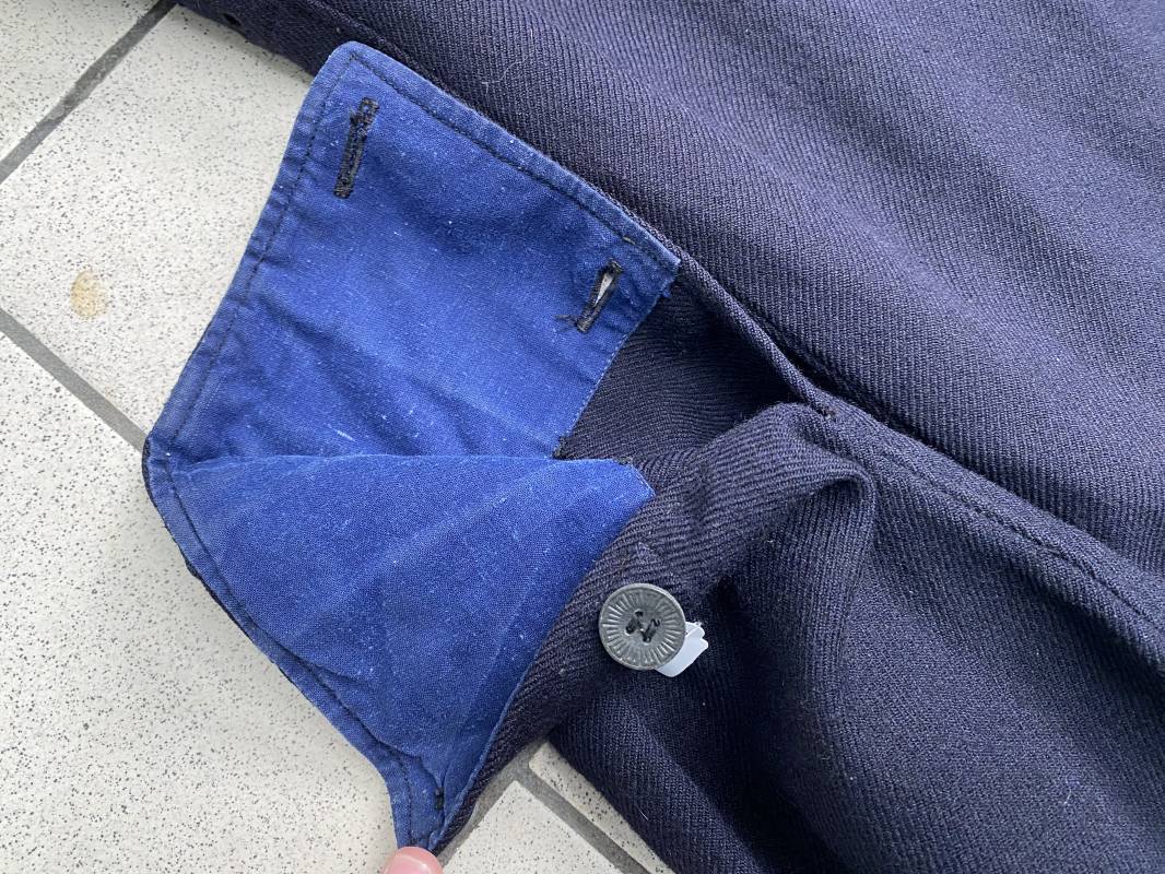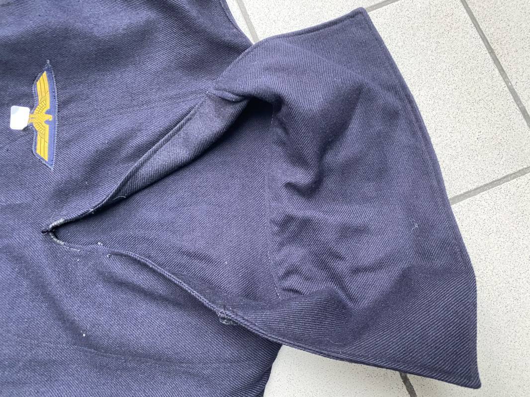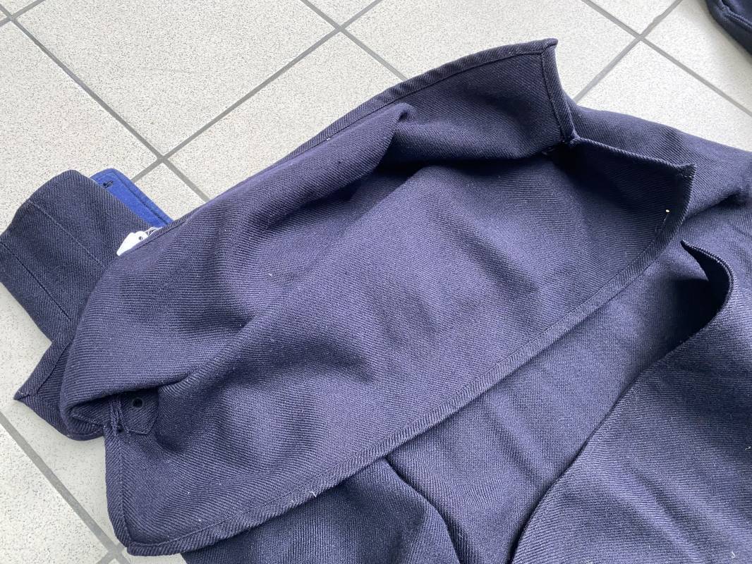 Très belle marinière réglementaire d'un matelot de la Kriegsmarine. Marinière en laine bleu nuit, large col. Aigle de poitrine troupe tissé bévo. Aigle monté d'origine machine zig zag . Insigne de manche de spécialité d'Artilleur embarqué. Boutons en carton en bouts de manches. Poche intérieure en coton bleu. Marinière légèrement portée en parfait état. Largeur d'épaules 43cm. Longueur 81cm. Manches 58cm 1940/45. Ref 18025