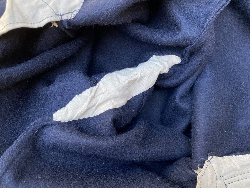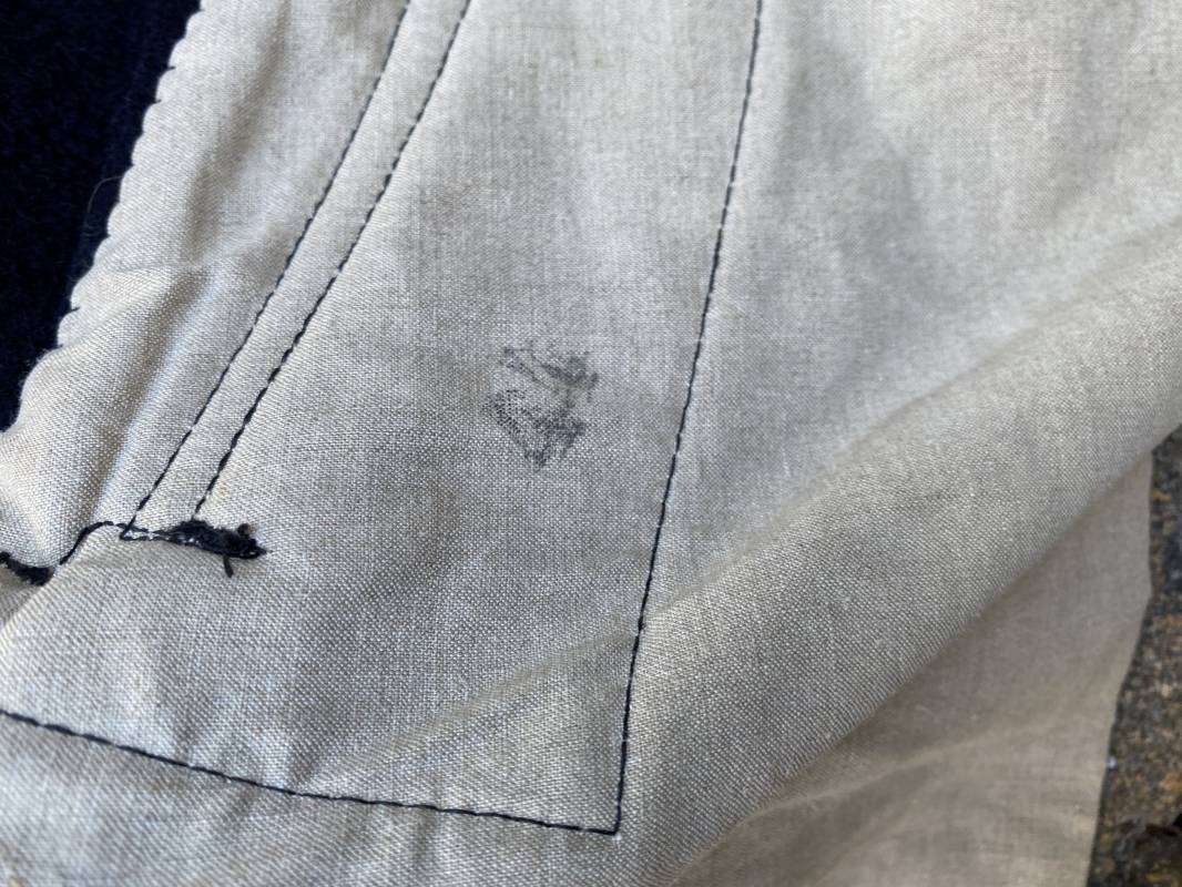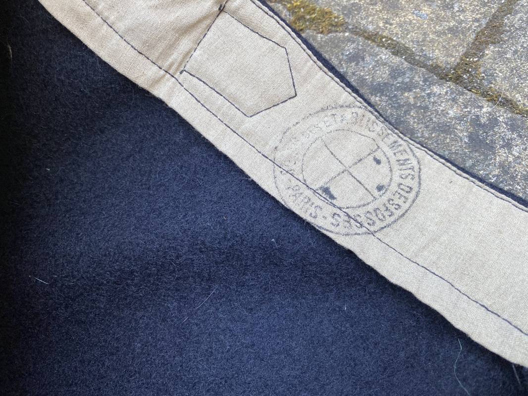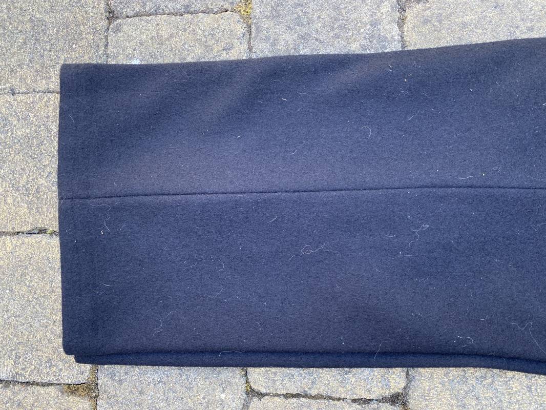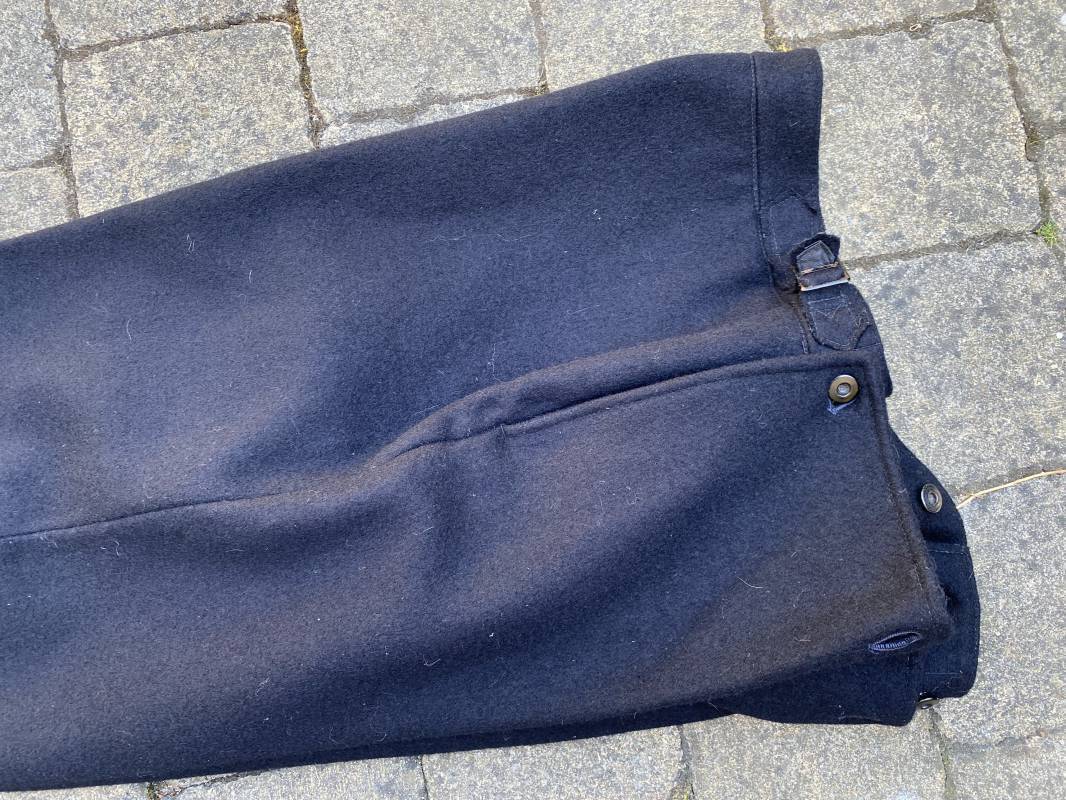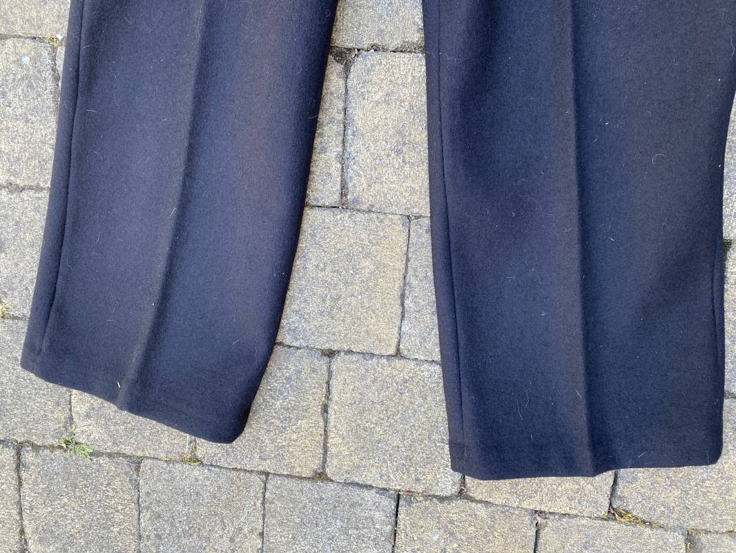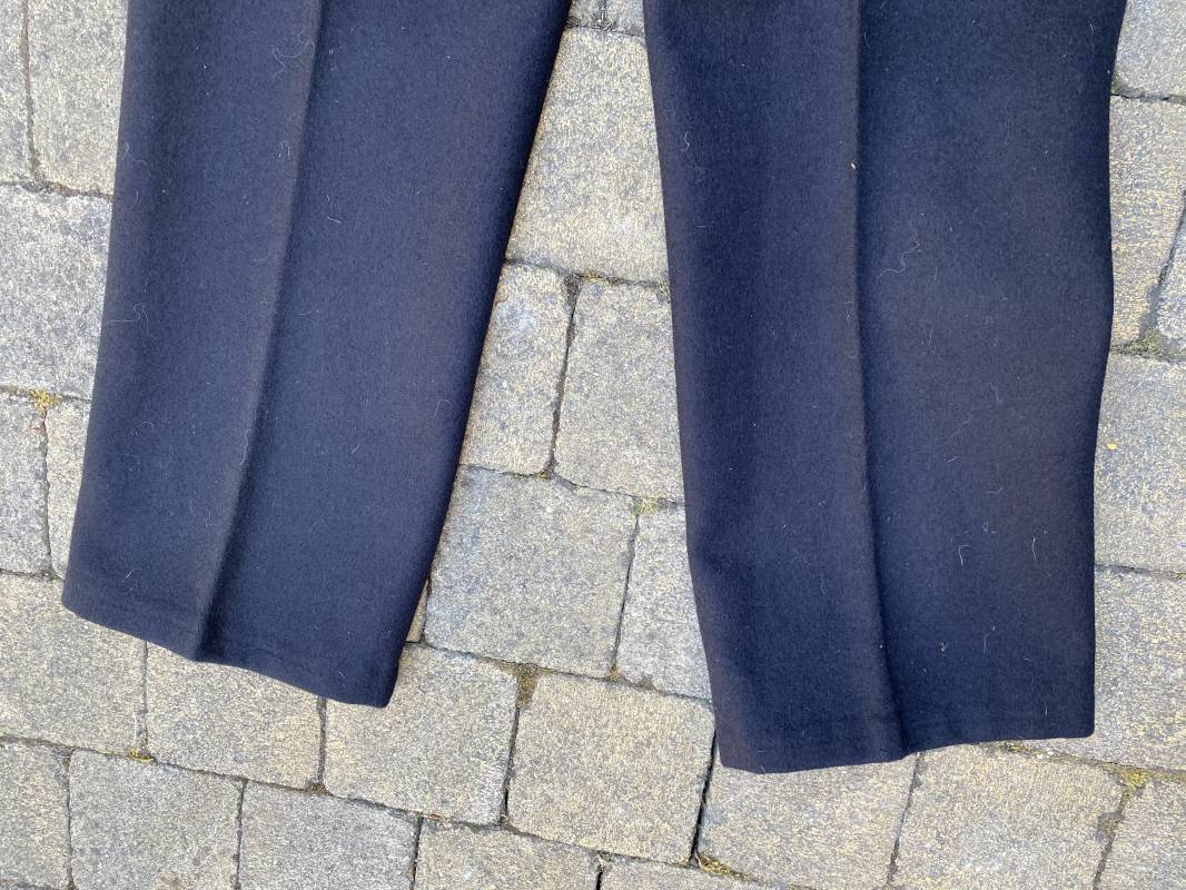 Très beau pantalon à pont réglementaire de la Kriegsmarine en drap bleu foncé. Fabrication Française sous l'occupation. Boutons métalliques rivetés, boucles fer de réglage de taille sur chaque cotés . Intérieur doublé en coton blanc. Marquage taille encre noire taille 44. Longueur 106cm. Tampon rond fabricant Etablissements Desfosses Paris. Pantalon très légèrement porté en superbe état, drap trèsfrais 1940/45. Ref 16455