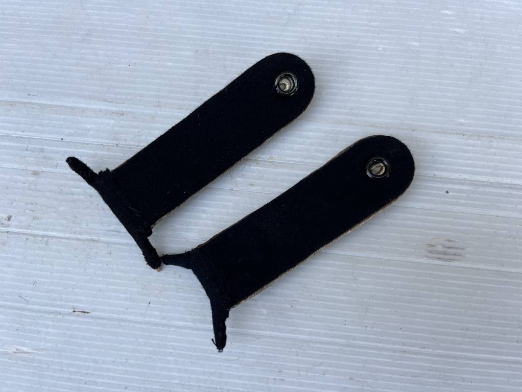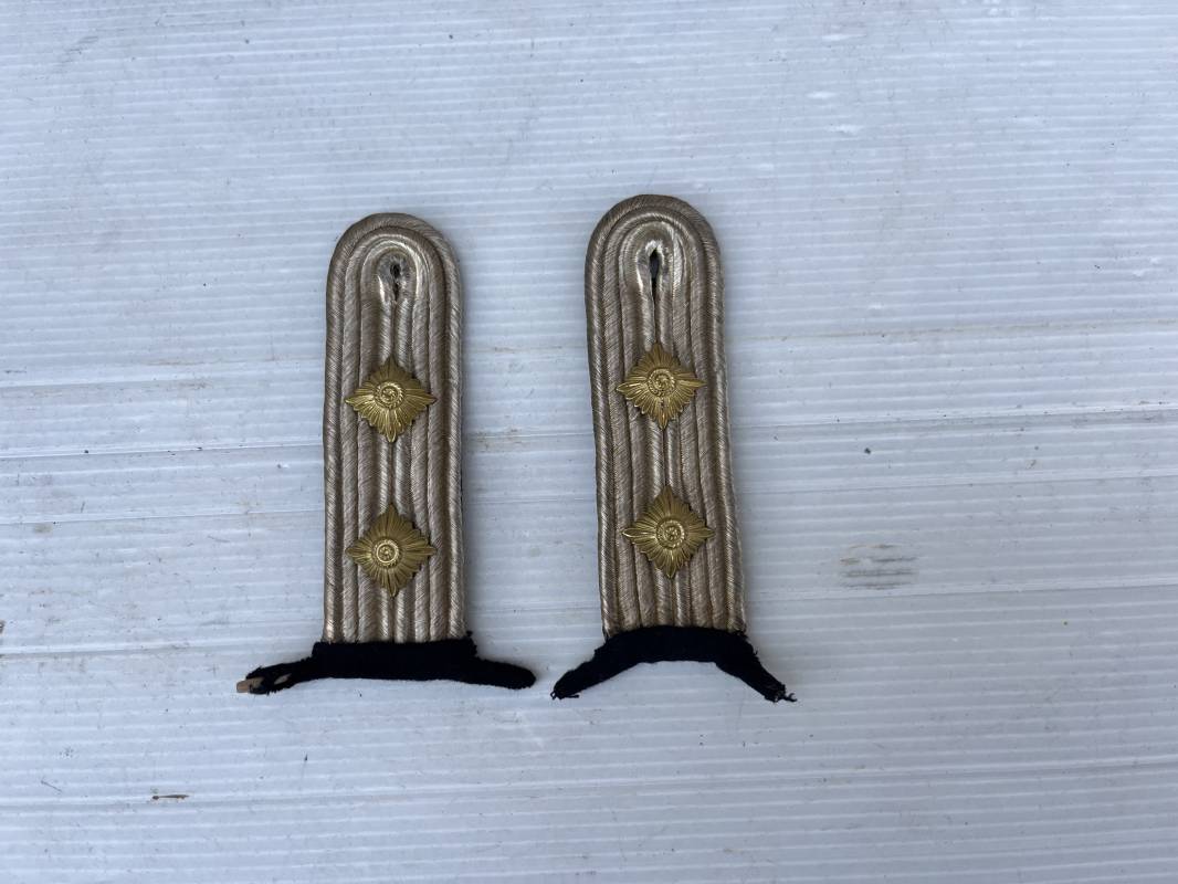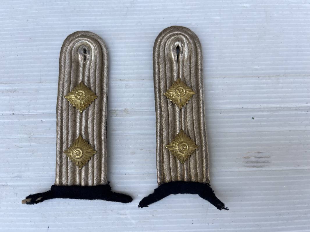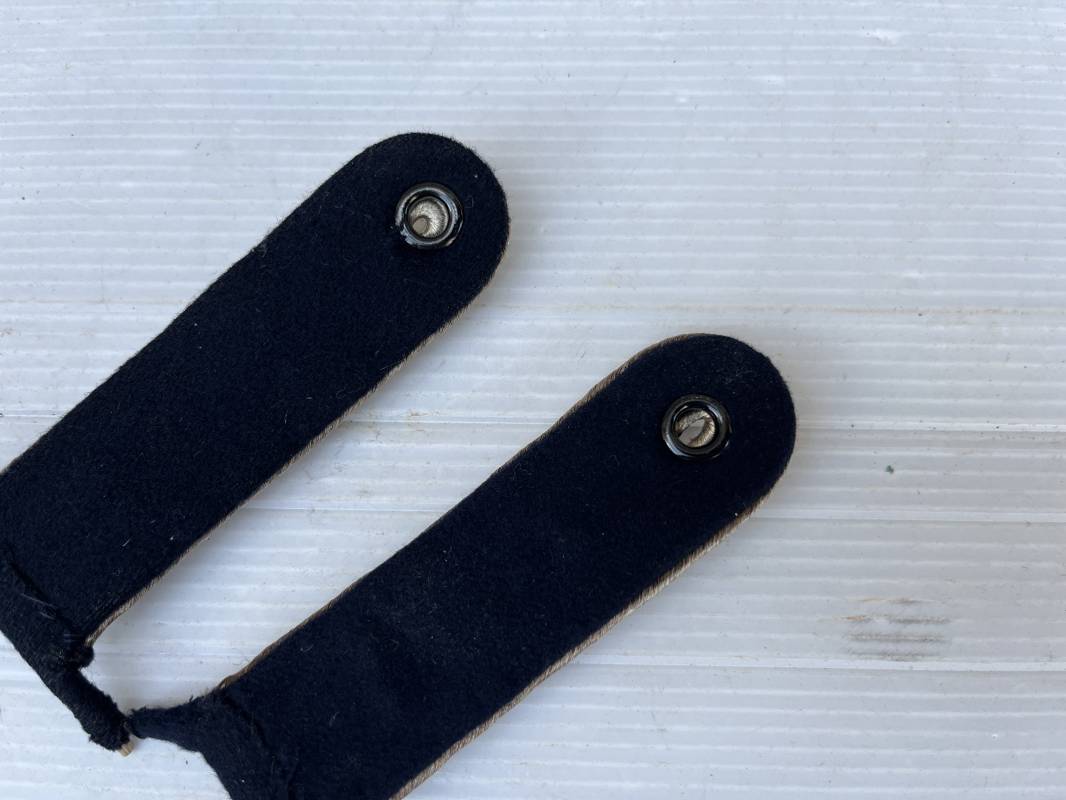 Trés belle paire de pattes d'épaules d'un officier de la Kriegsmarine . Modéle à fixer aux enmanchures . Clous de grade de capitaine ( KapitanLeutnant ) . Socle en drap noir Longueur 113 mm . Légèrement porté en bel état . Ref 22094
